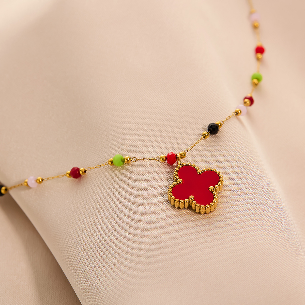 Colored natural stone four-leaf clover necklace