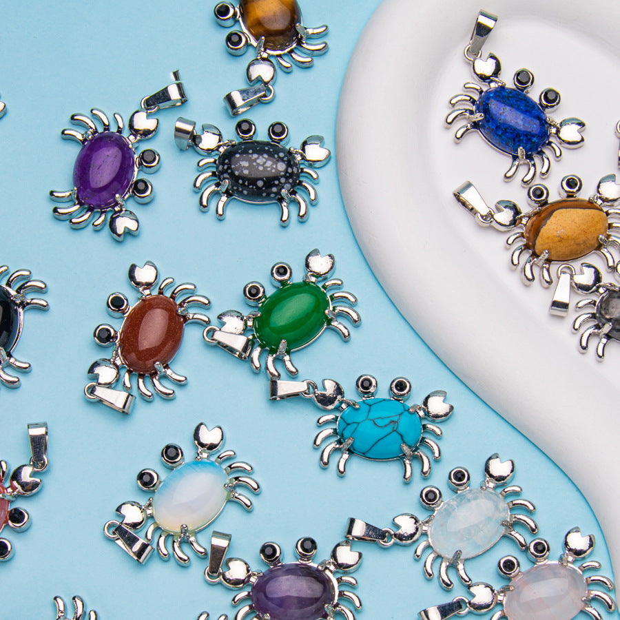 Colgante de cristal ovalado de ágata de cangrejo