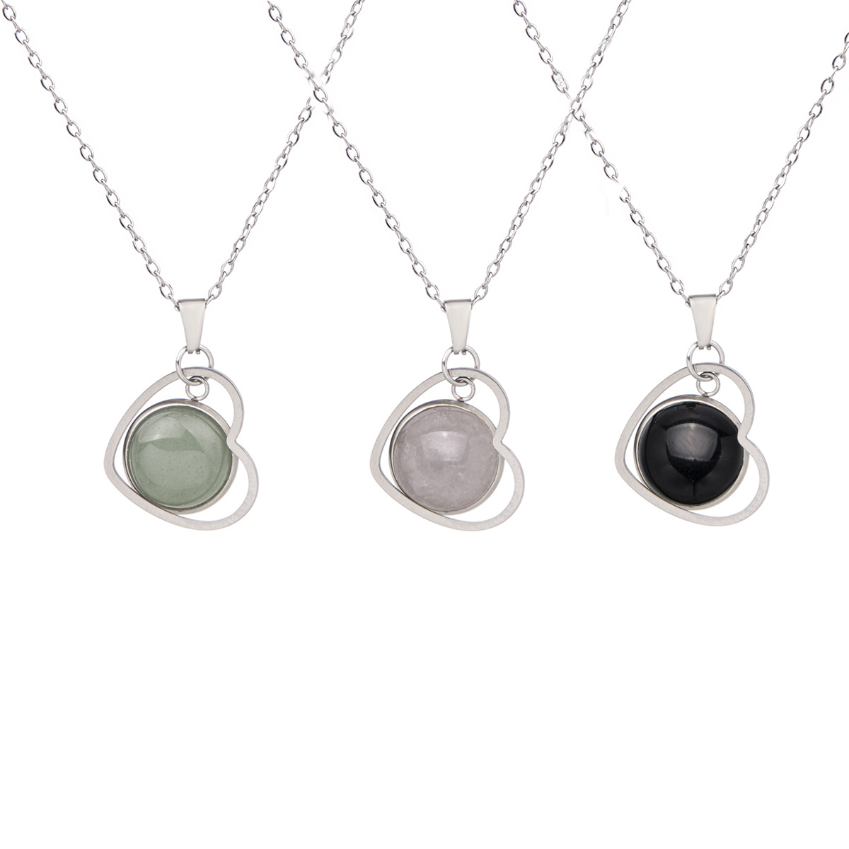 Collar con colgante de acero inoxidable con corazón de cristal
