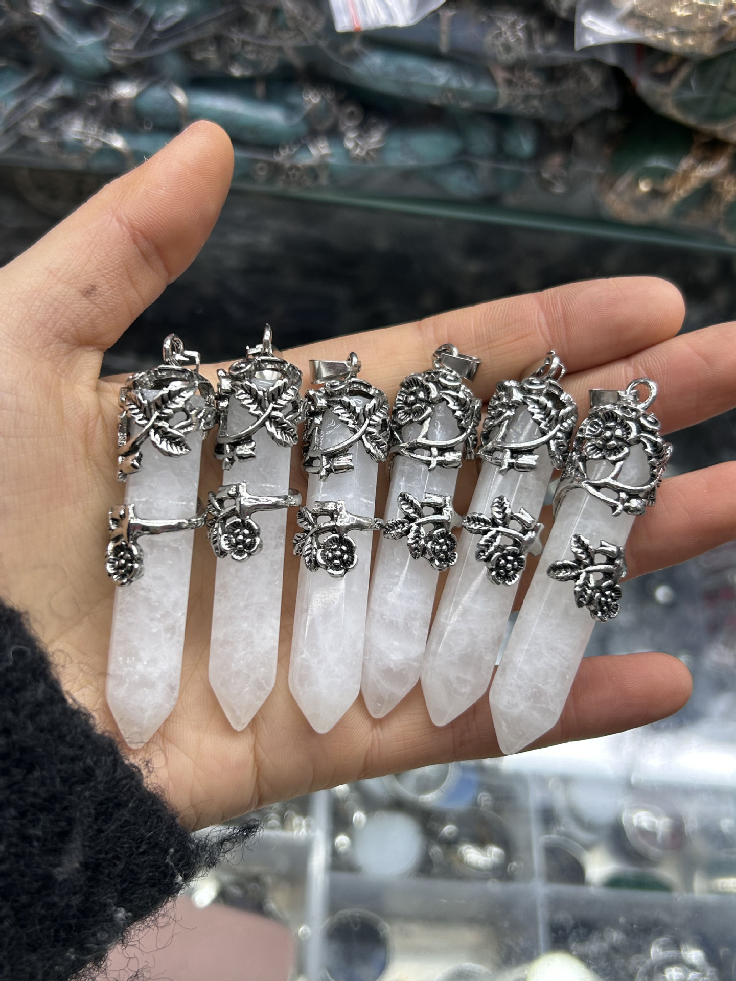 Colgante de rosa con columna hexagonal de flor de ciruelo de cristal