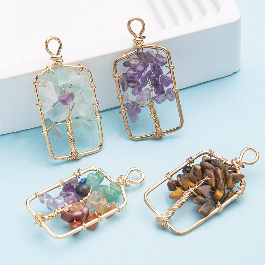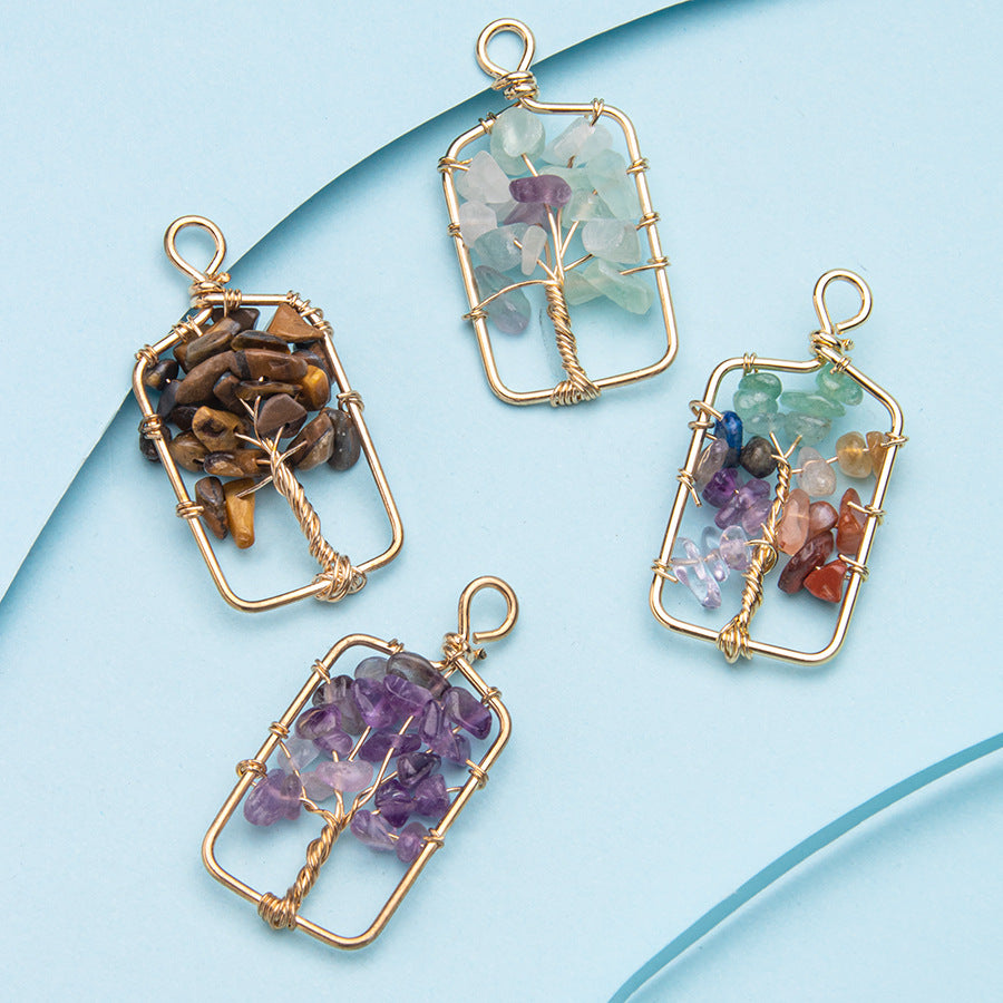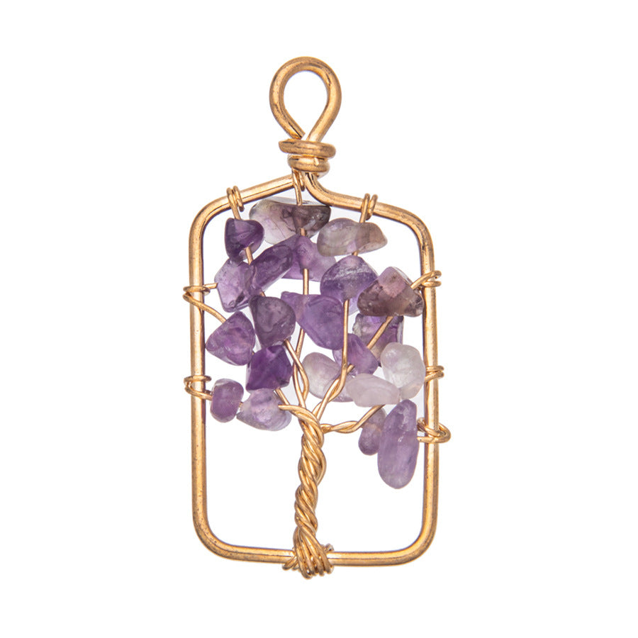 Colgante de árbol de la vida con envoltura de alambre rectangular de cristal