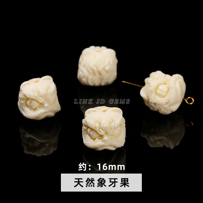 Cuentas sueltas con grabado de cabeza de león de obsidiana plateada y cristal