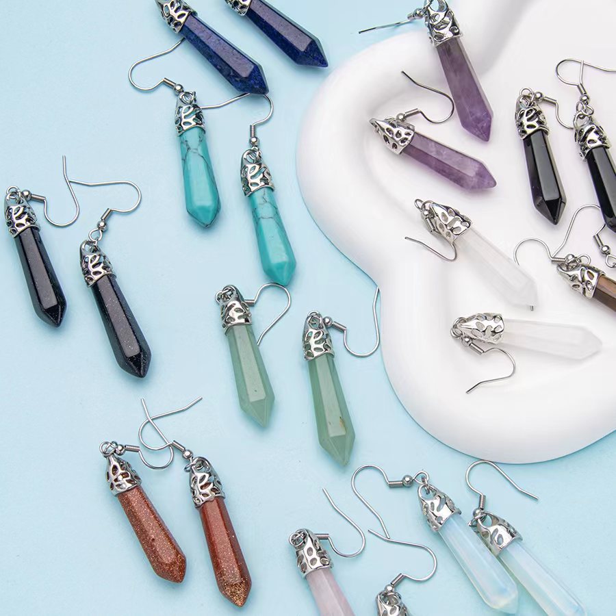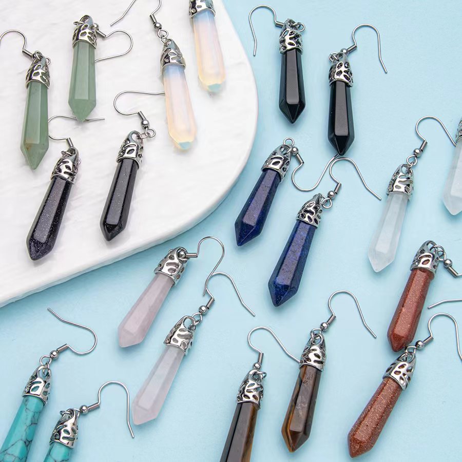 Pendientes de acero inoxidable con columna hexagonal de un solo punto de cristal