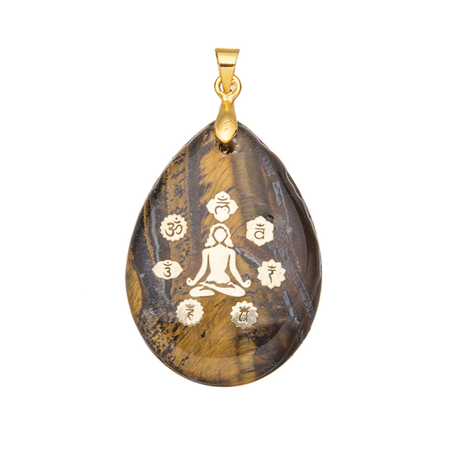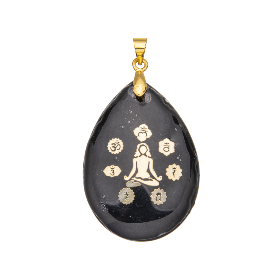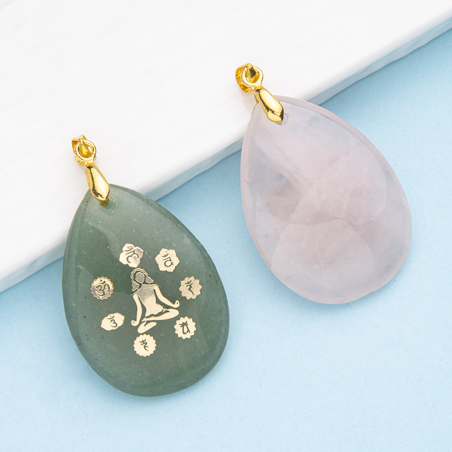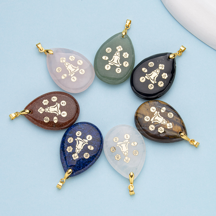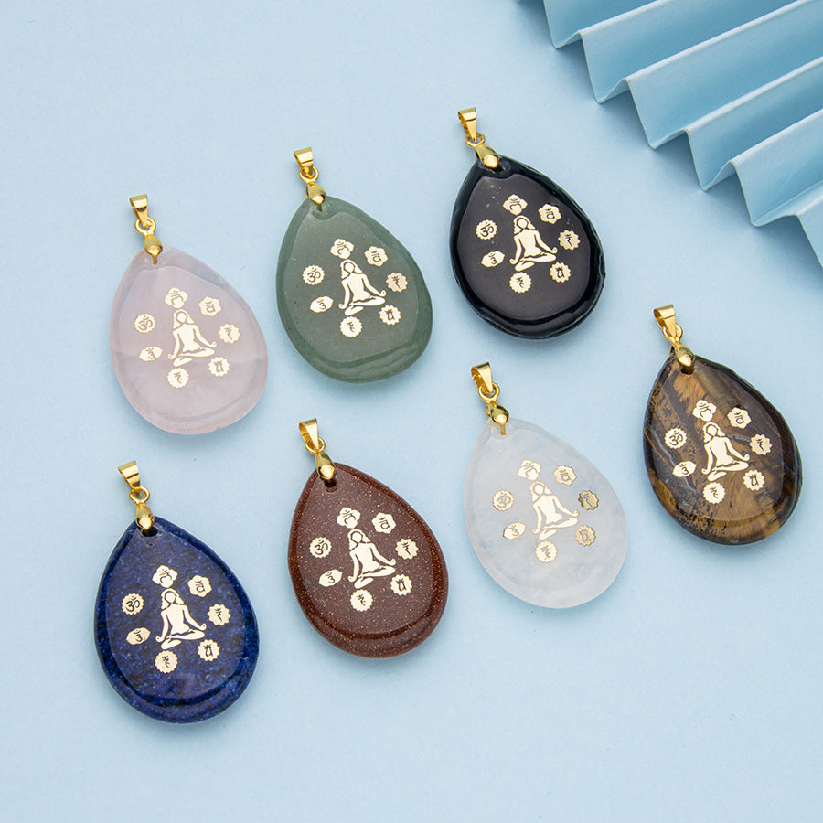 Collar de yoga con parche de gemas y colgante de gota de agua de cristal