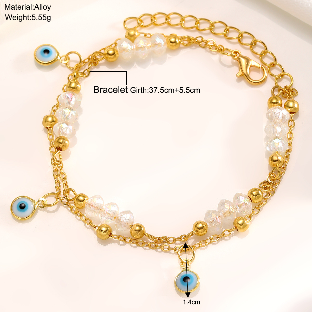 Conjunto de 2 tobilleras apilables con cuentas de ojo de diablo
