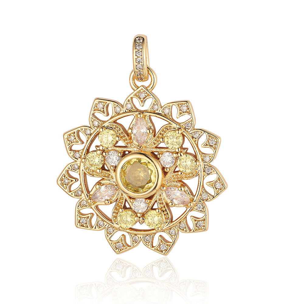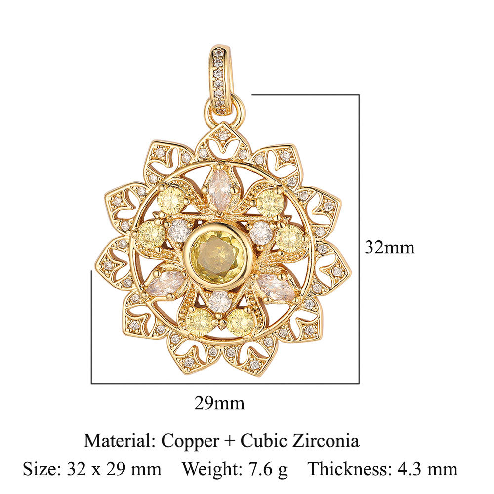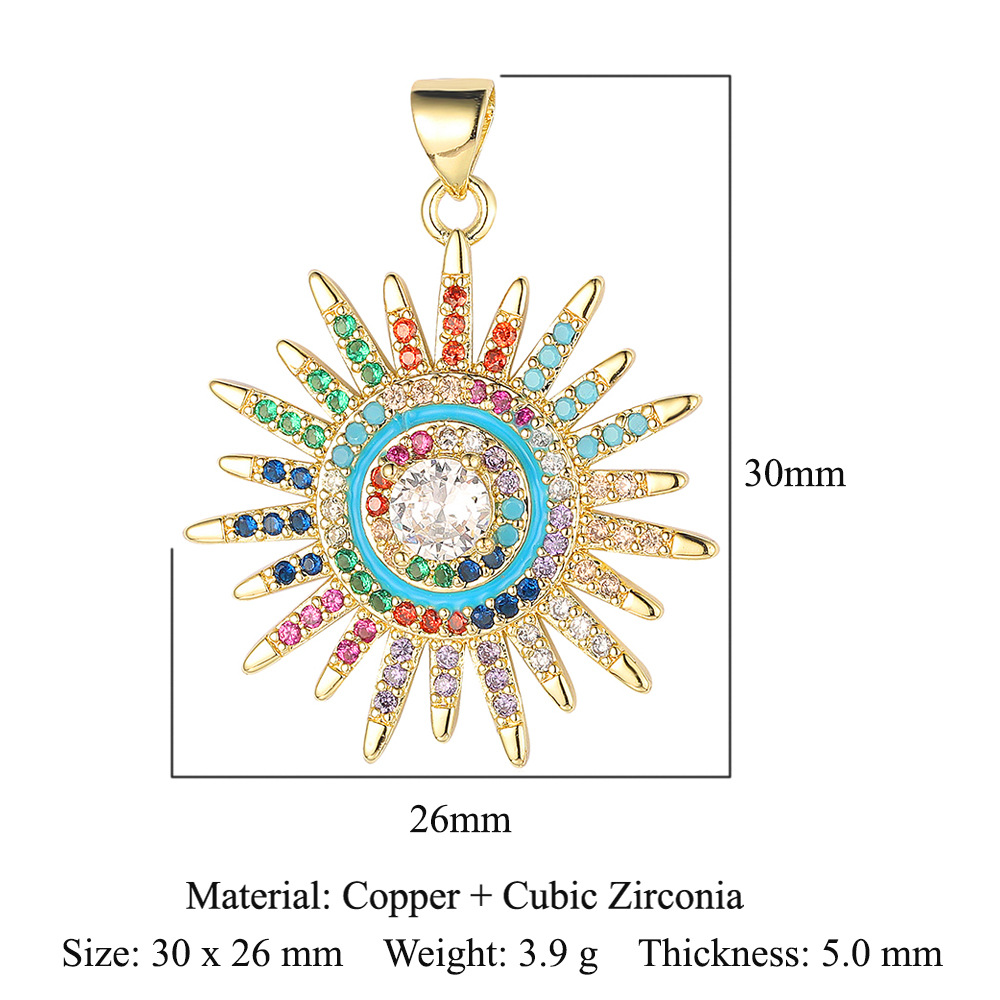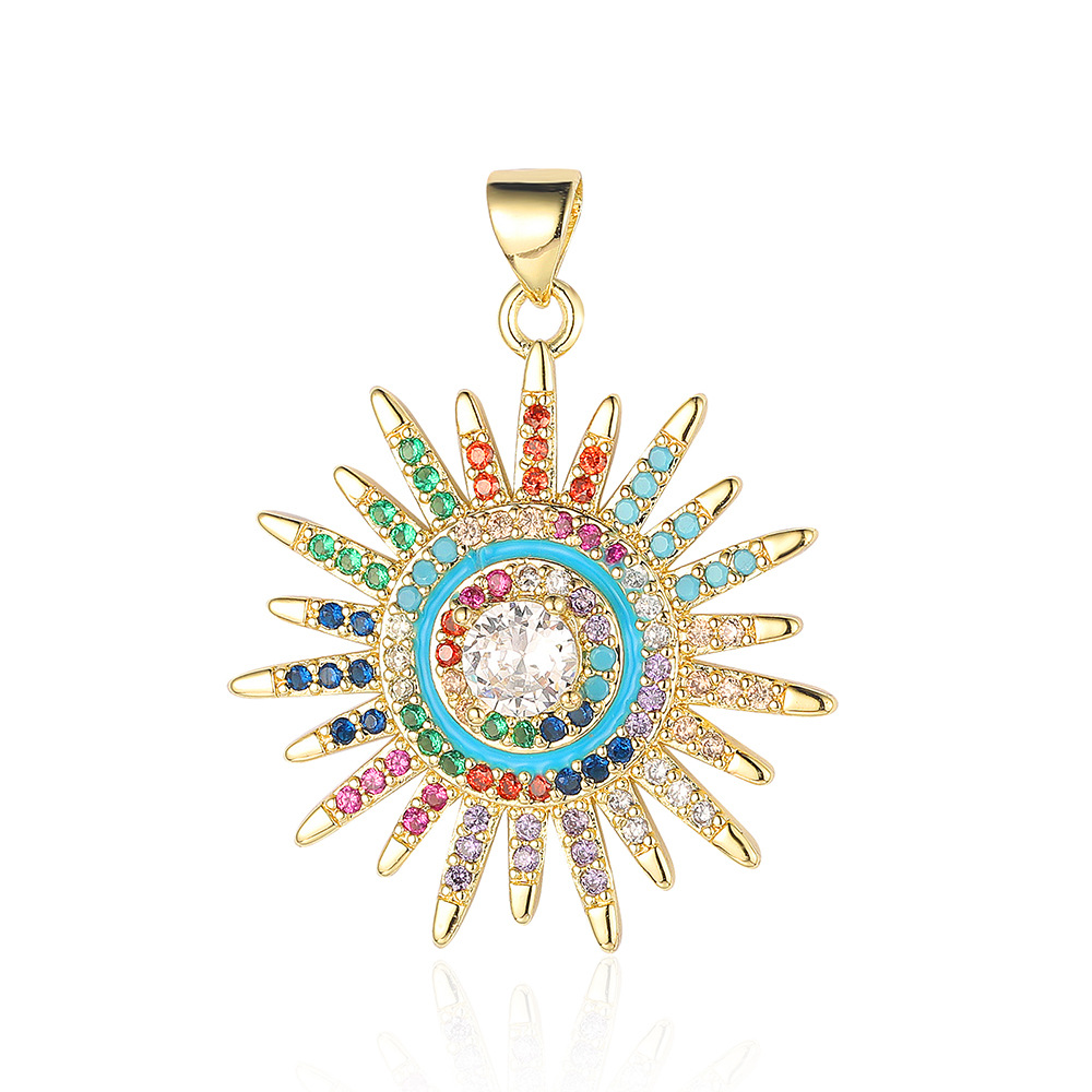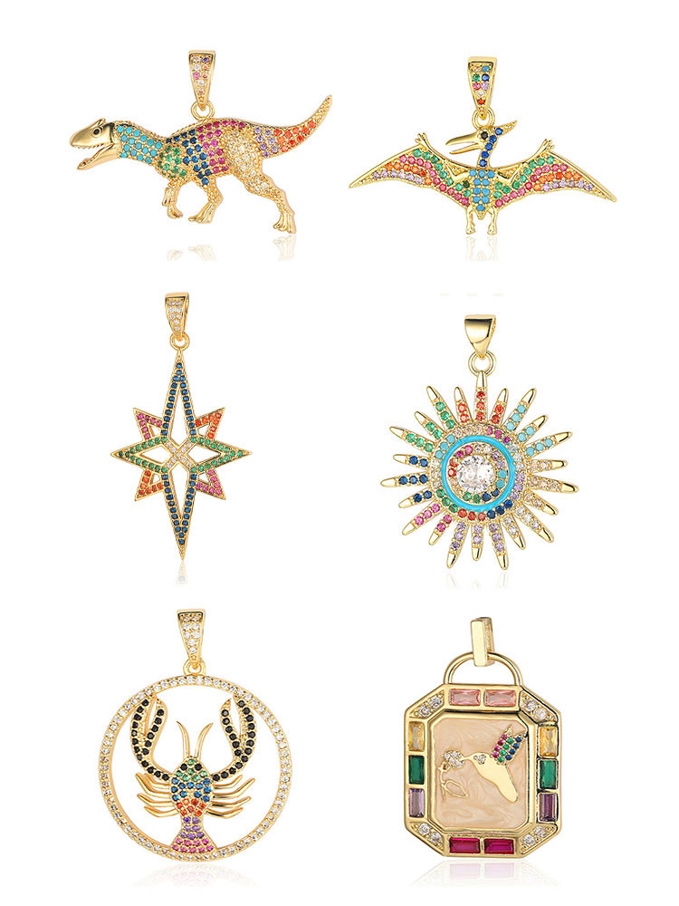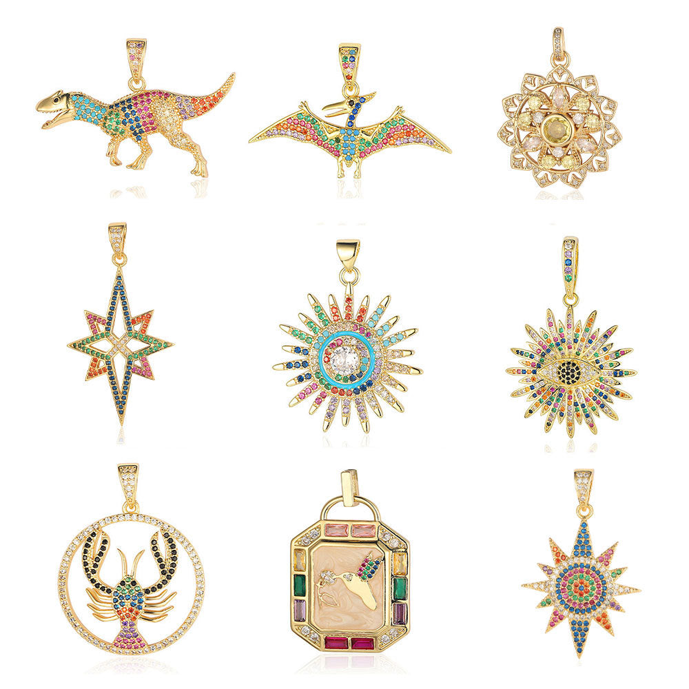 Colgante de cobre y circonita con forma de sol y loto de dinosaurio