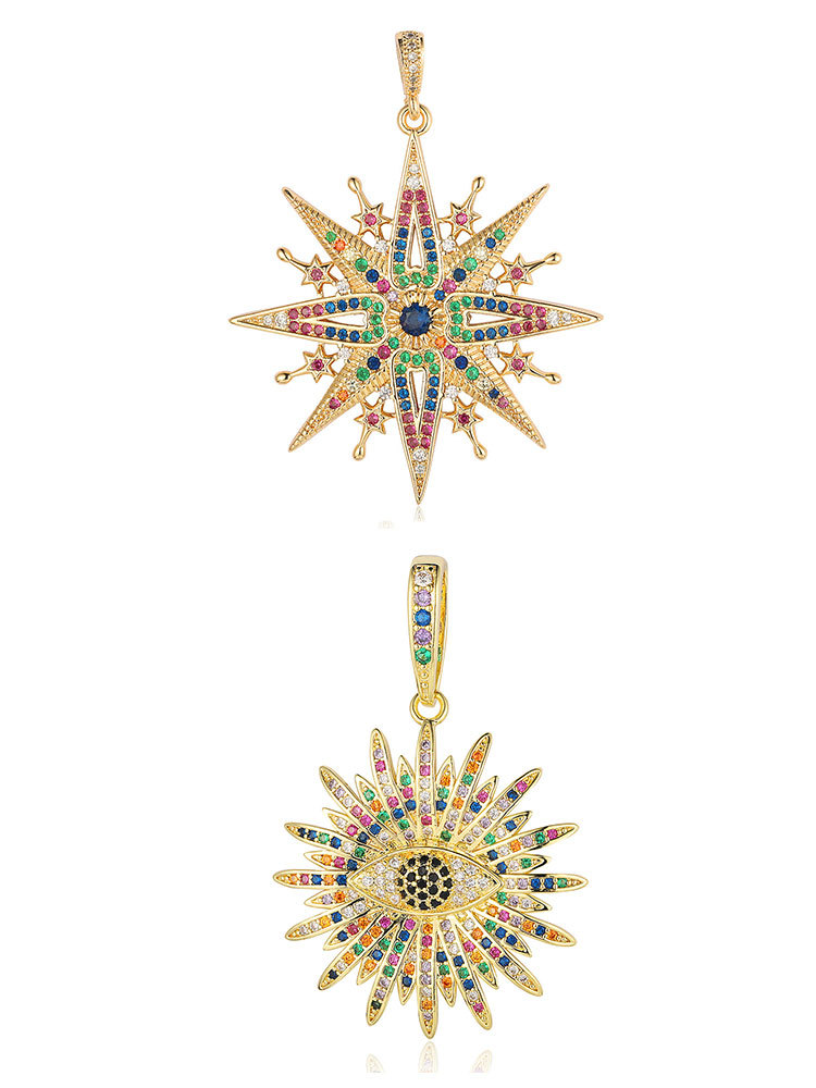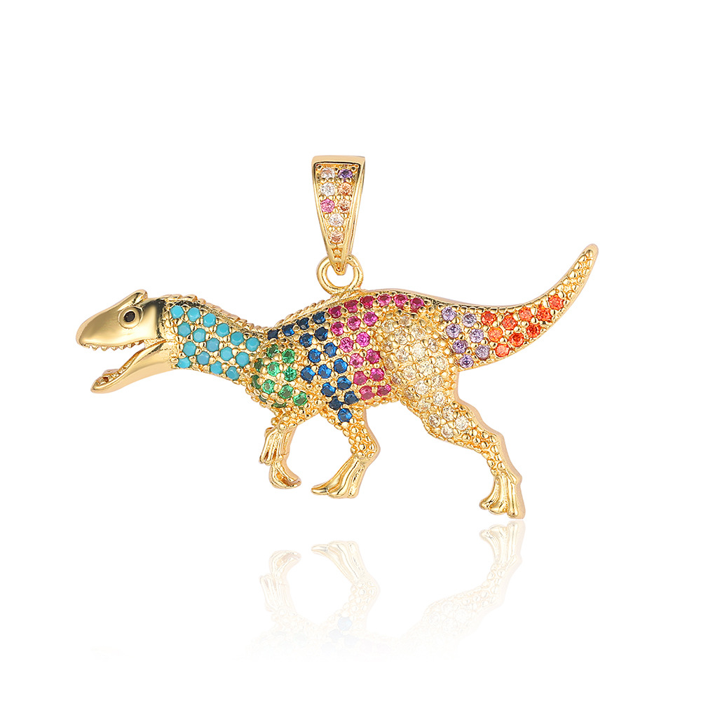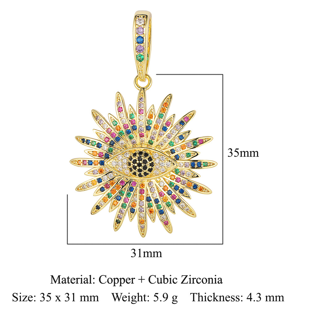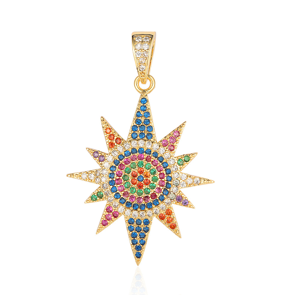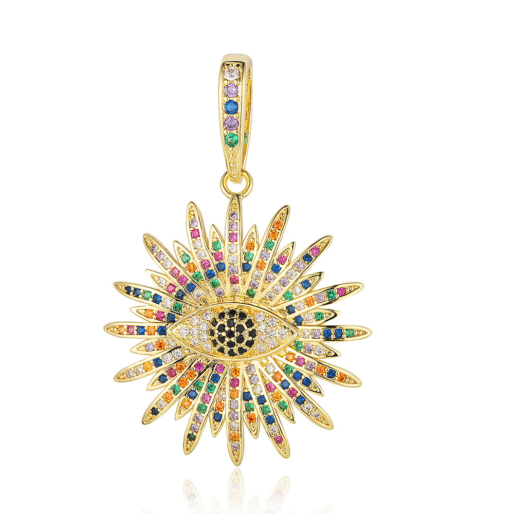 Colgante de cobre y circonita con forma de sol y loto de dinosaurio