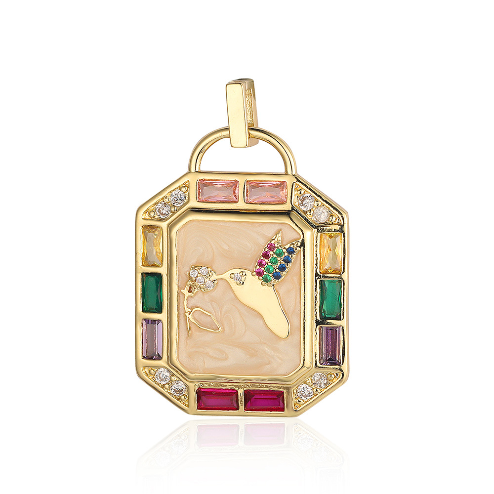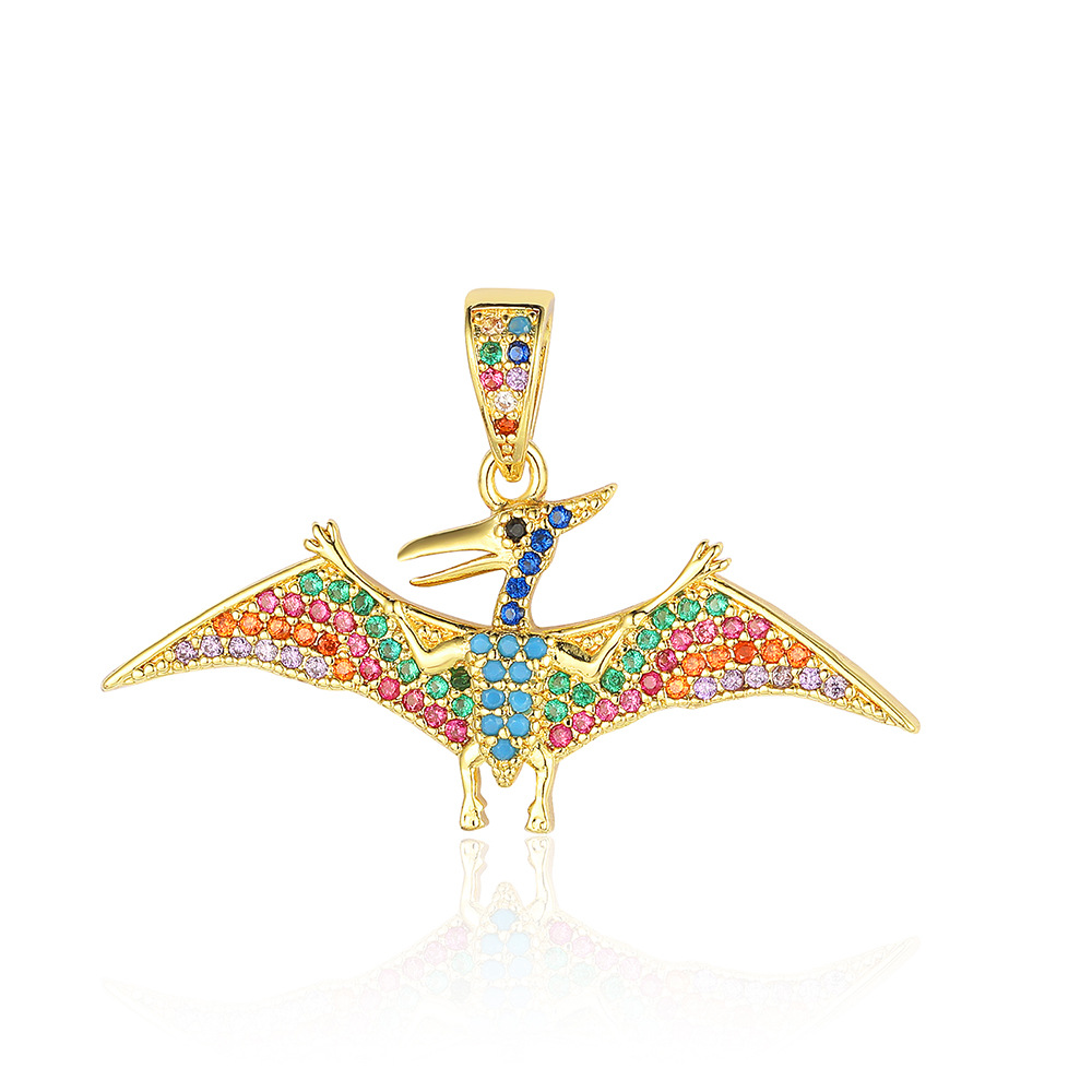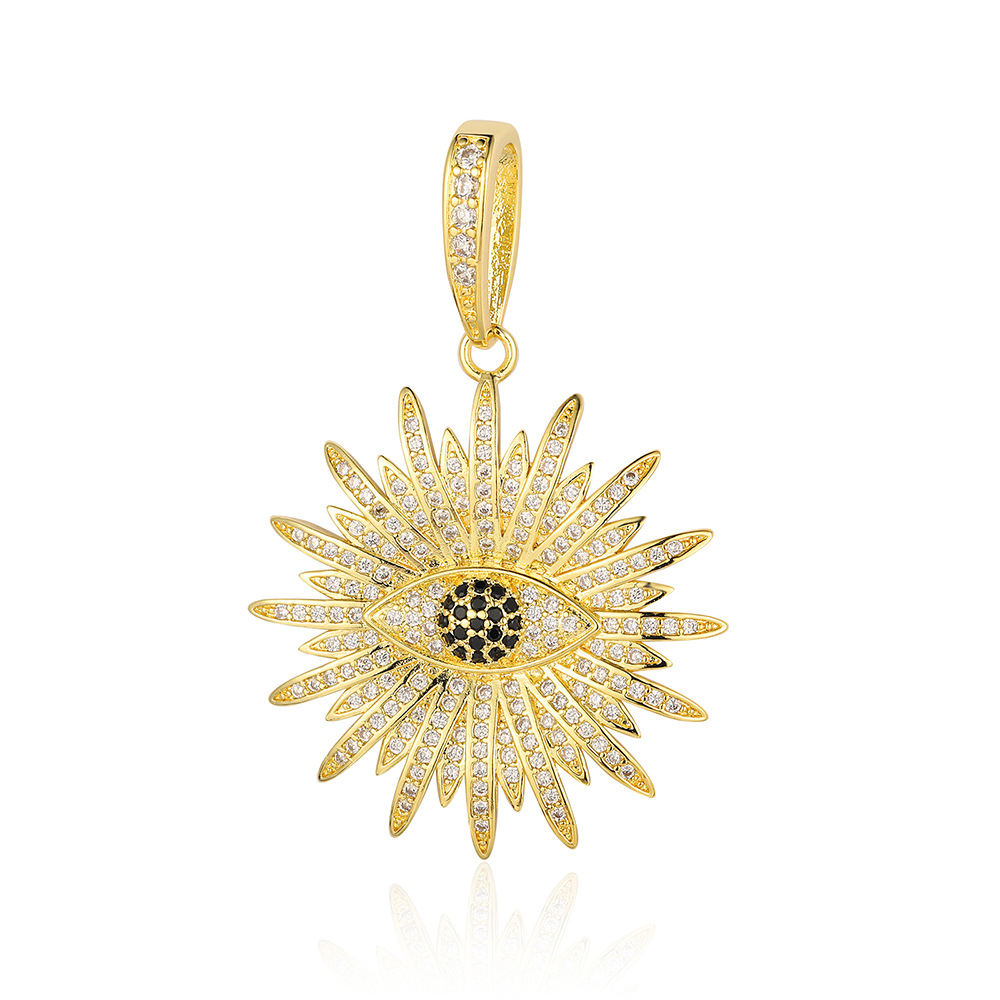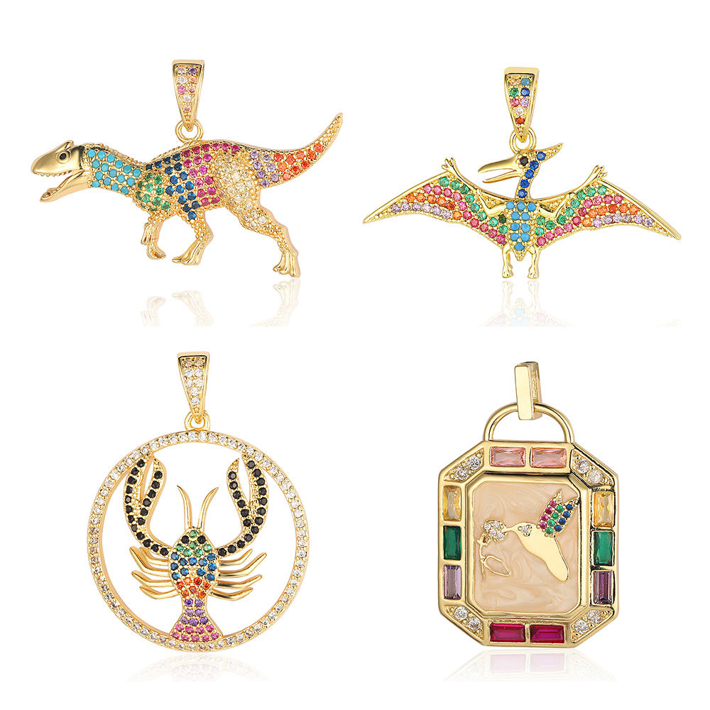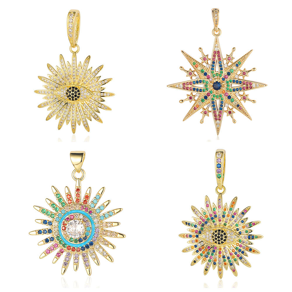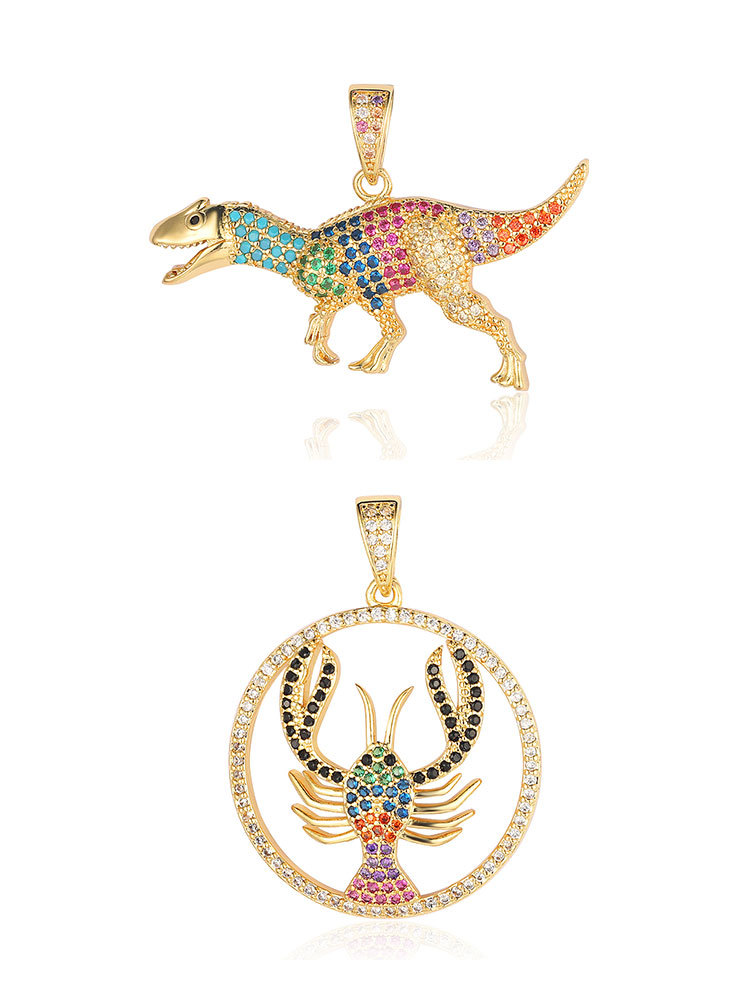 Colgante de cobre y circonita con forma de sol y loto de dinosaurio