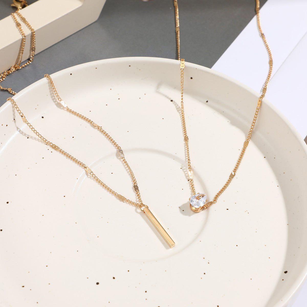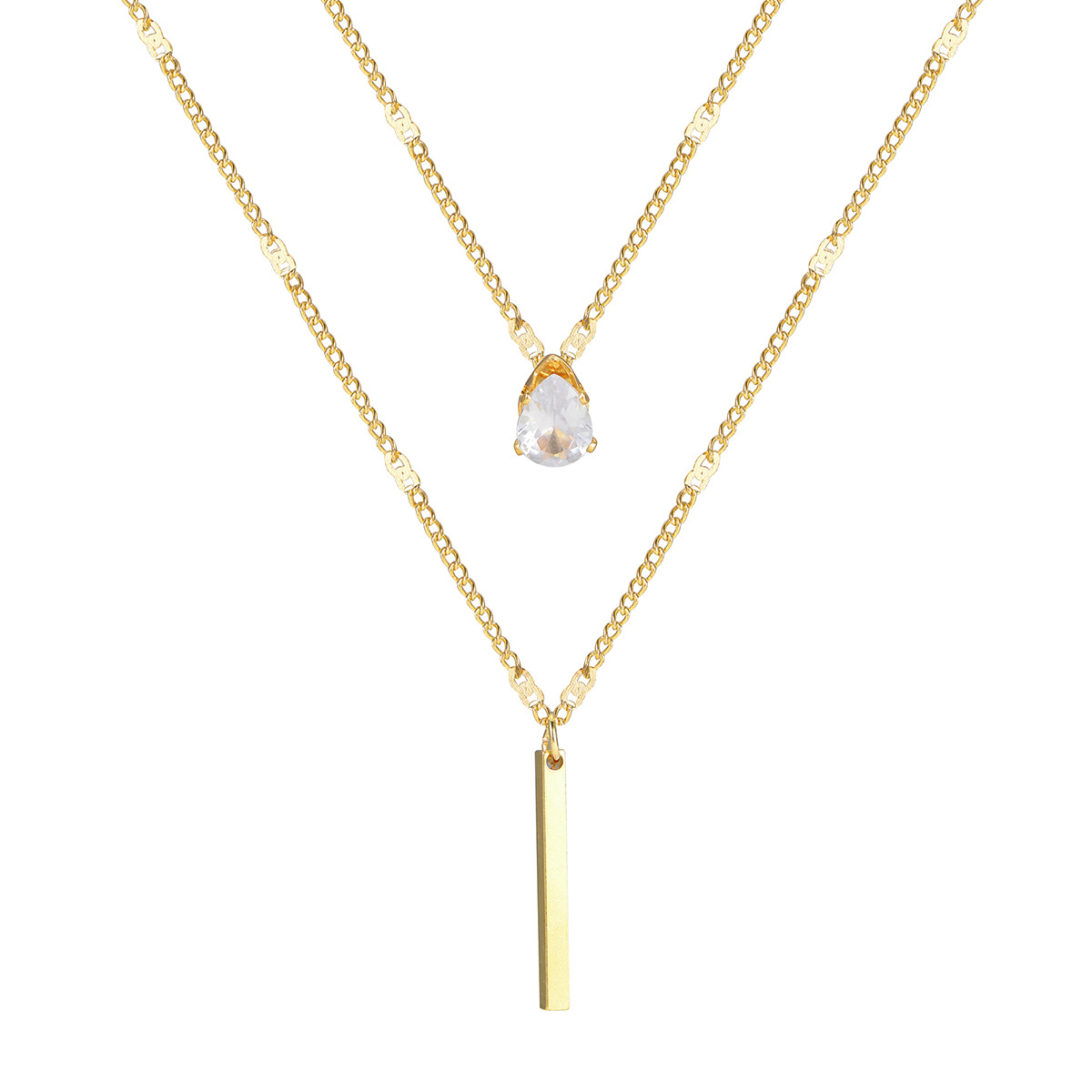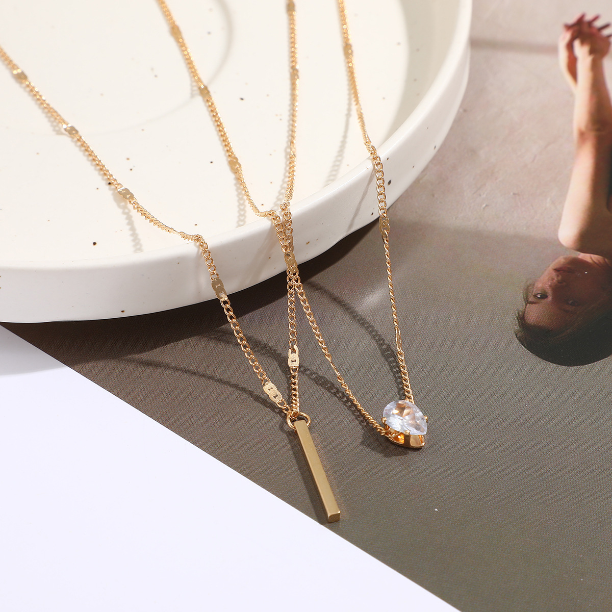 Collar largo con borlas de diamantes en forma de lágrima de doble capa