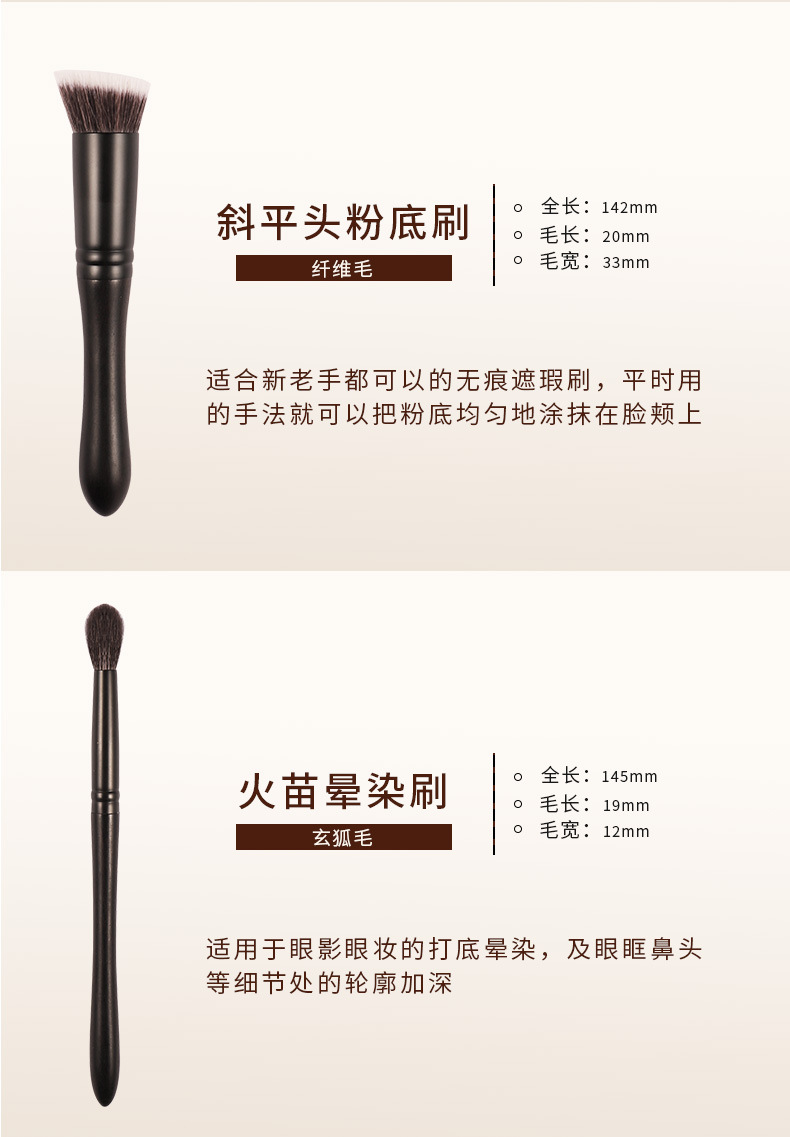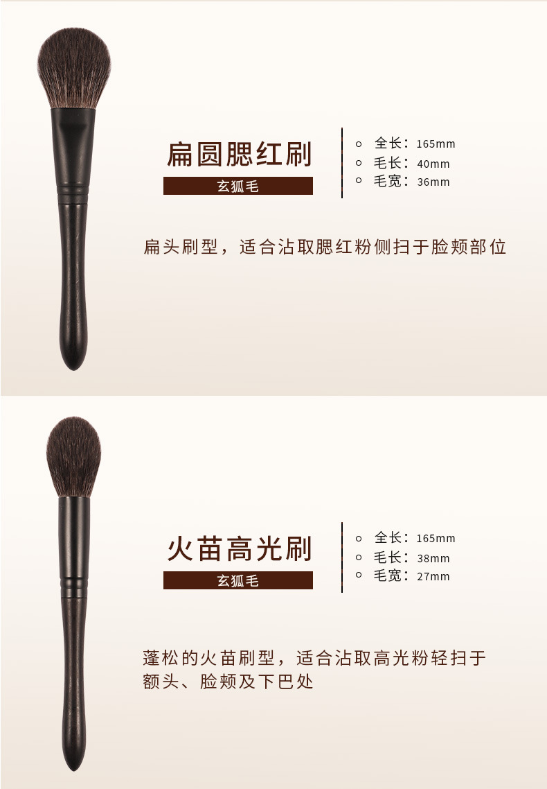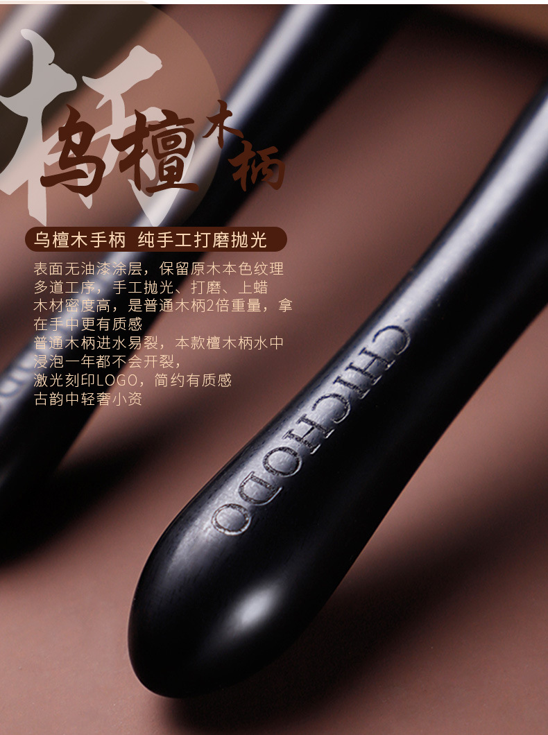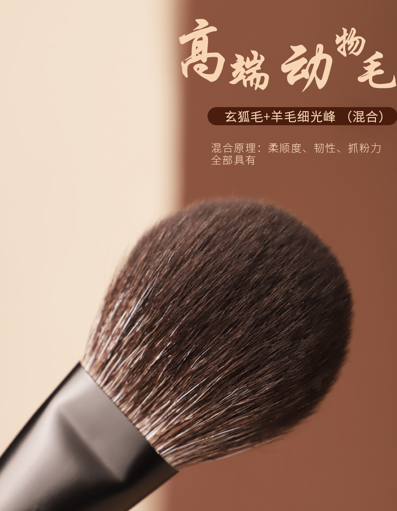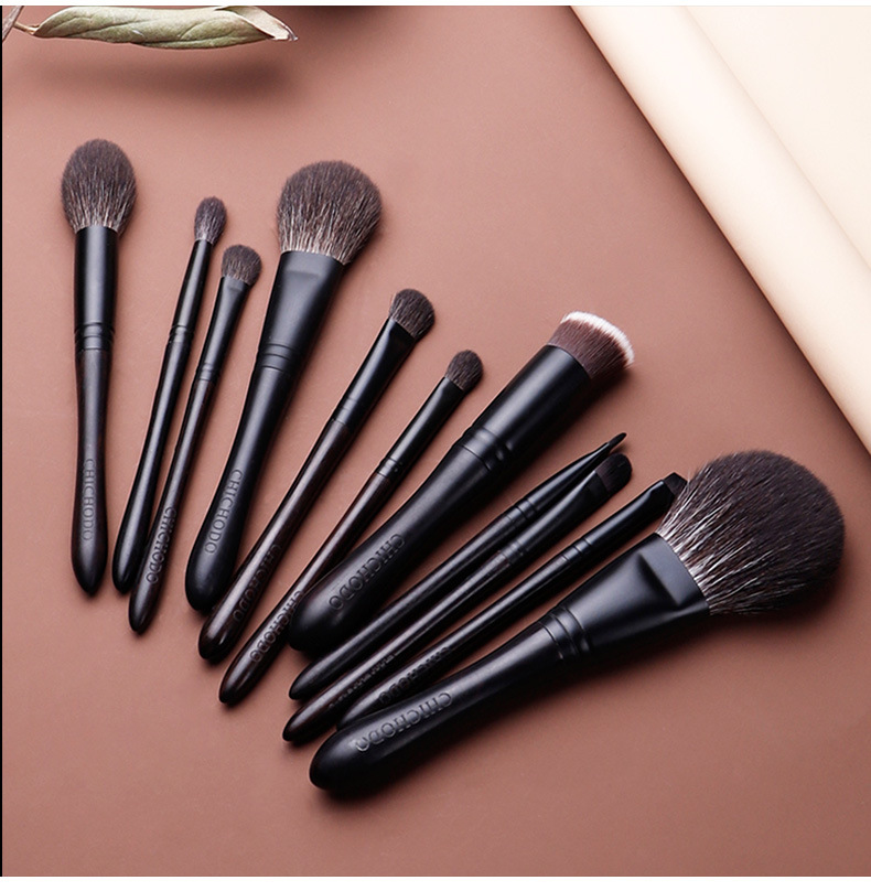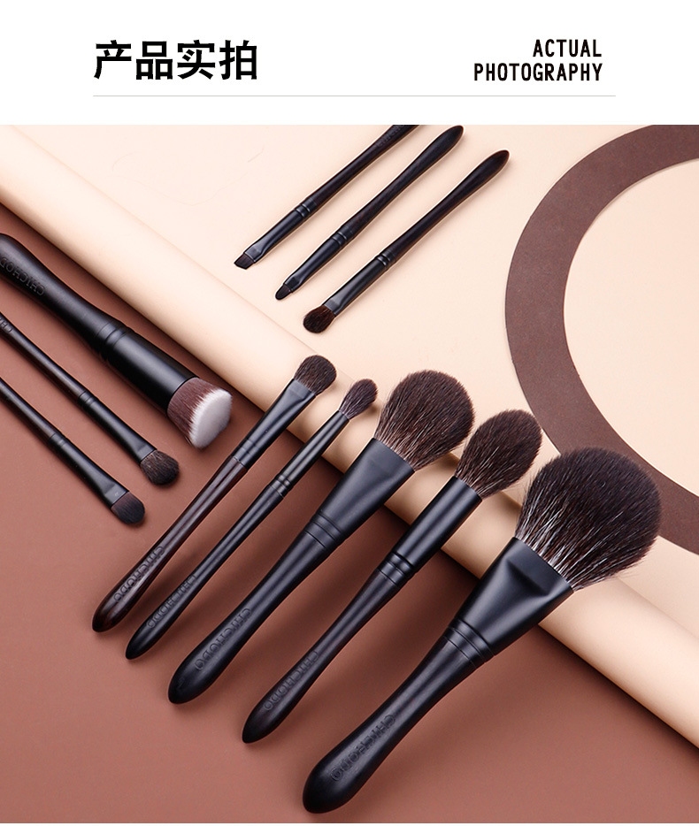 Juego de brochas de maquillaje de pelo de animal de 11 piezas de madera de ébano