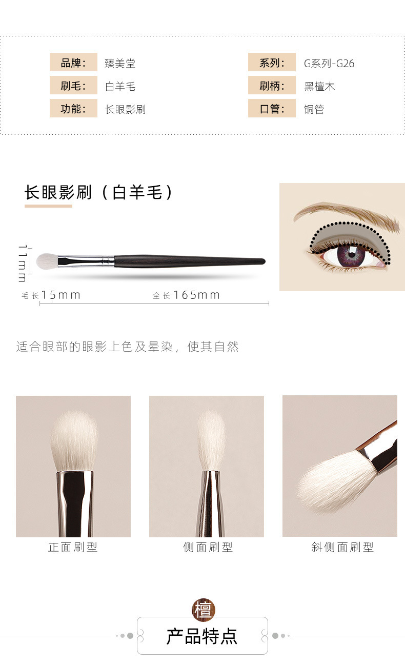 Brocha para sombra de ojos de pelo animal G26 de madera de ébano