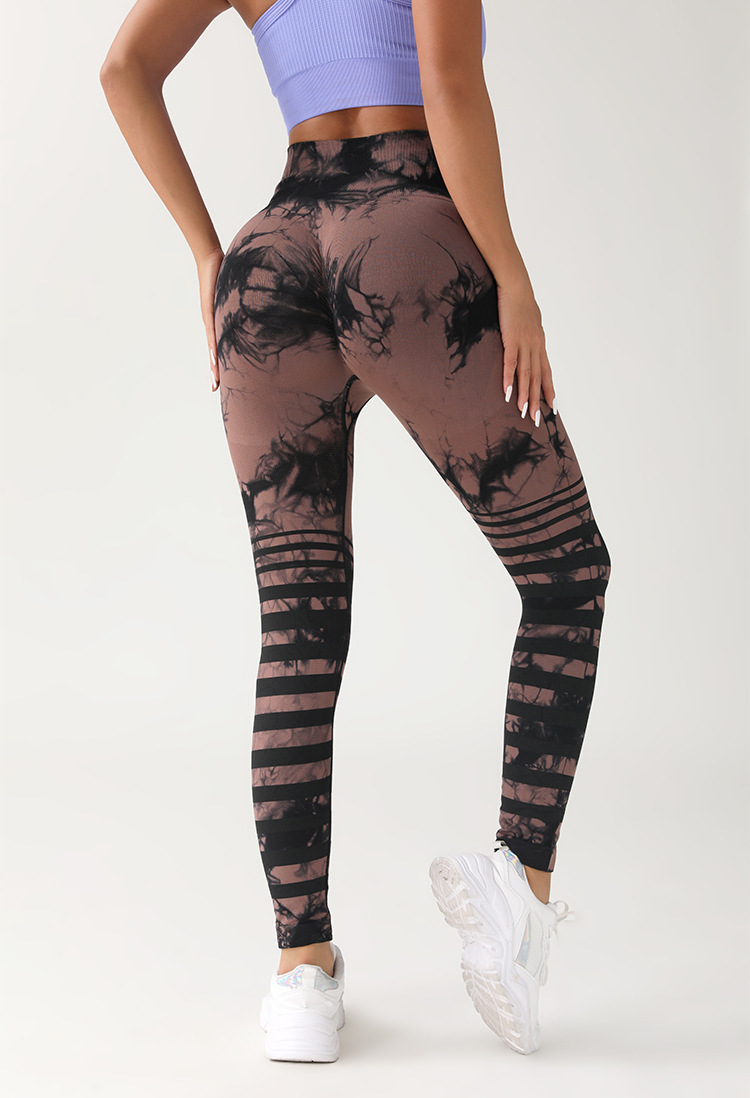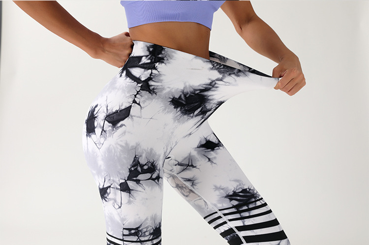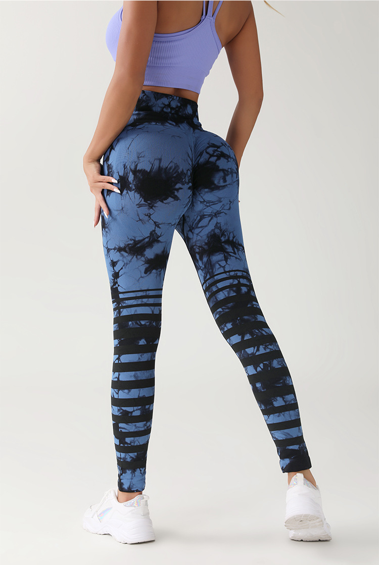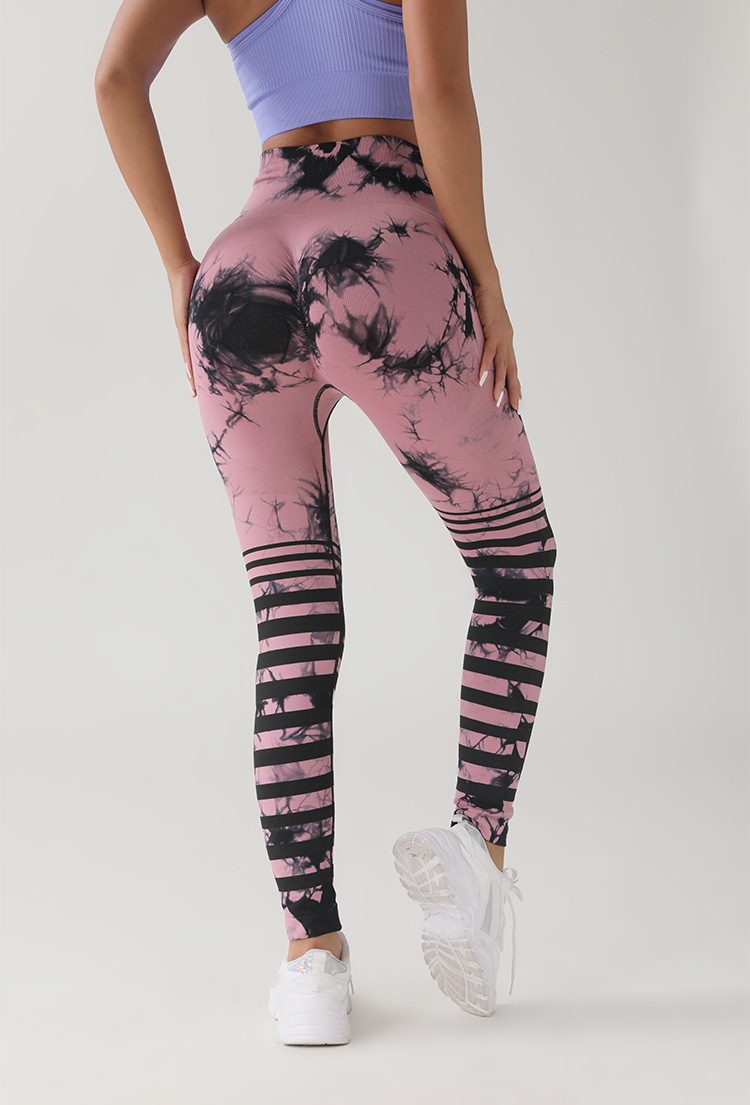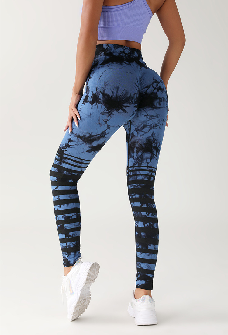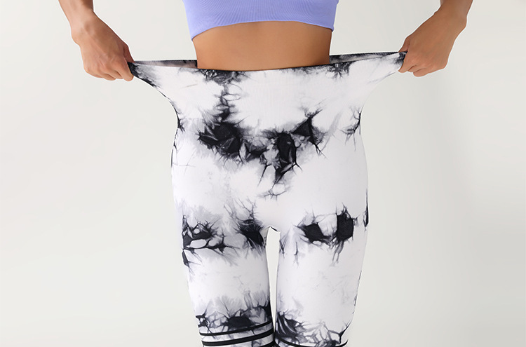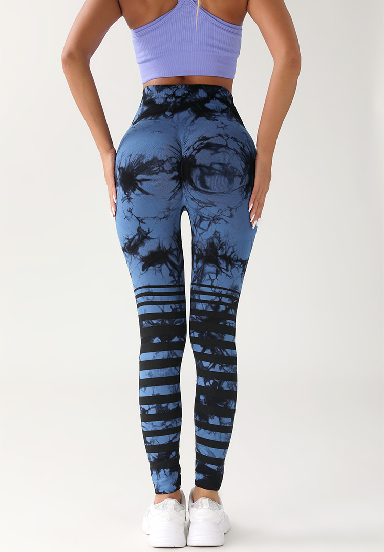 Euro Trendy Pantalones de yoga con levantamiento de glúteos y cintura alta sin costuras con efecto tie-dye