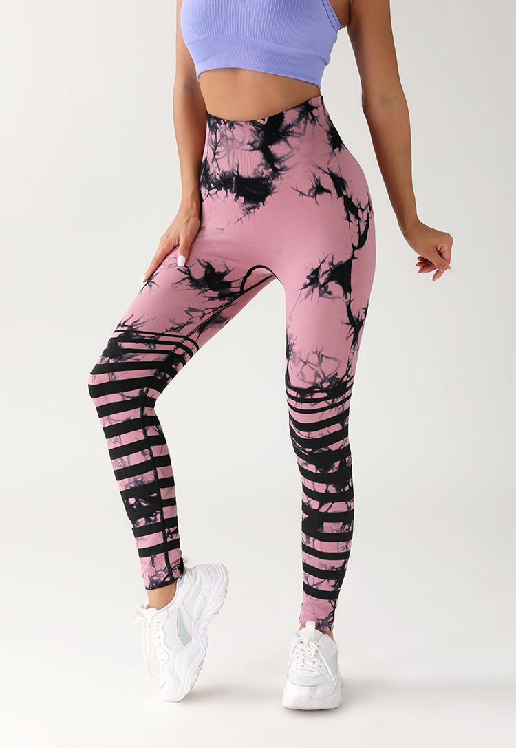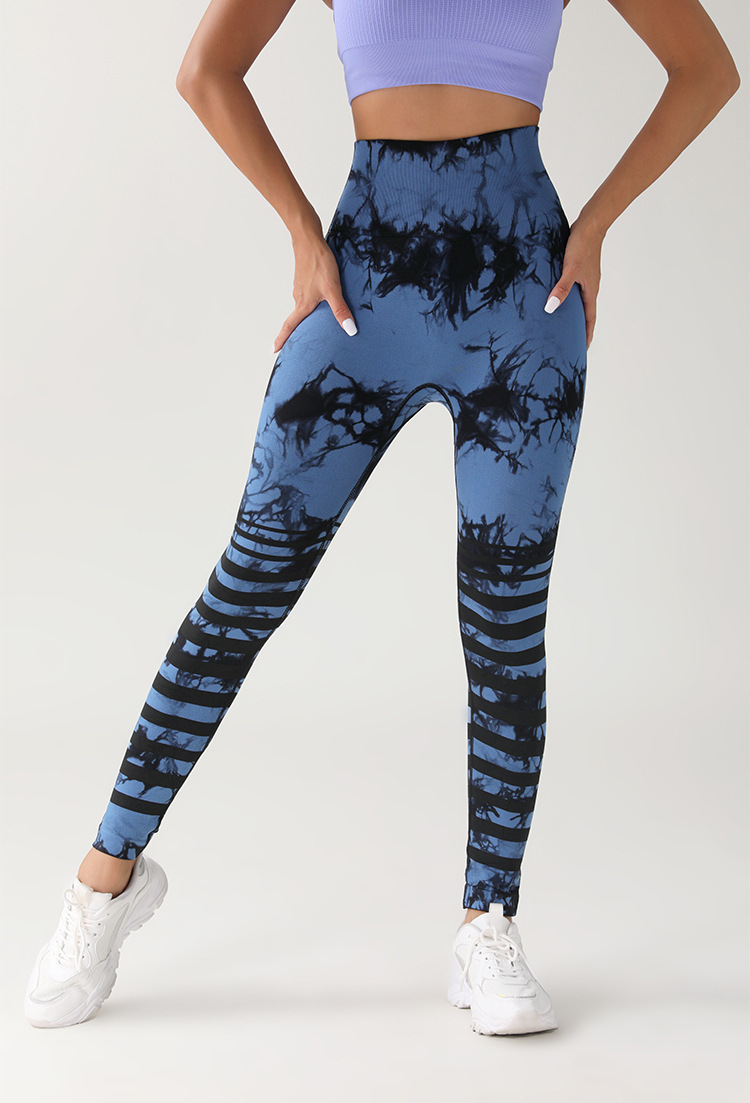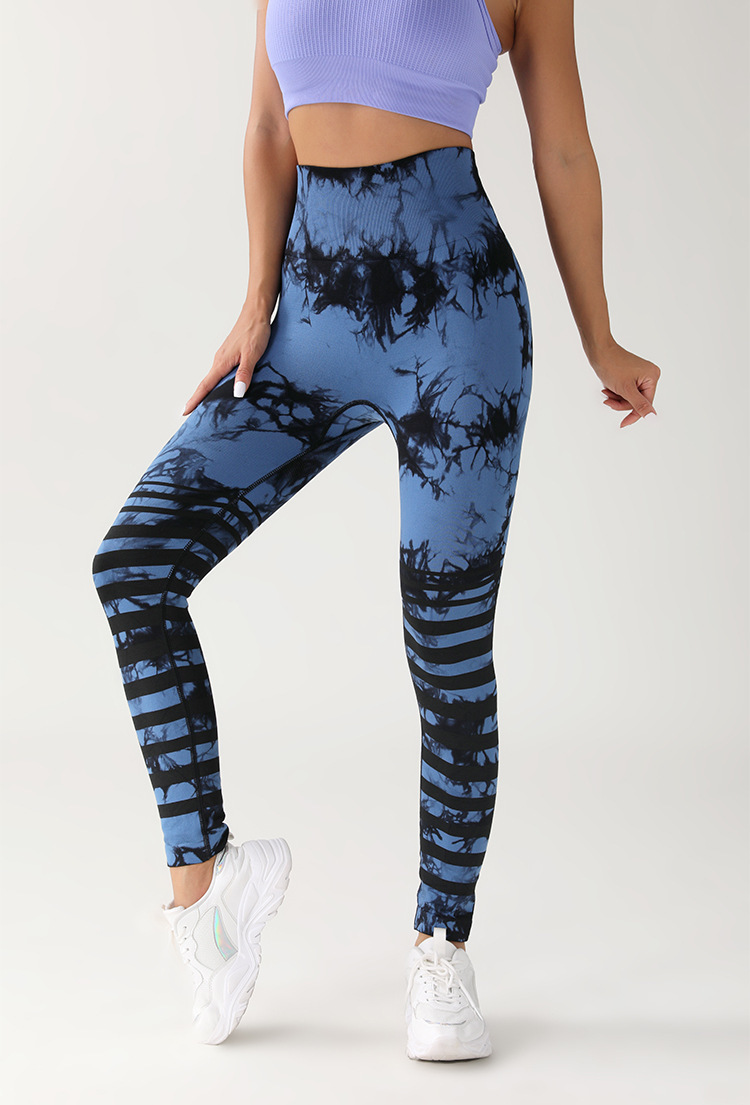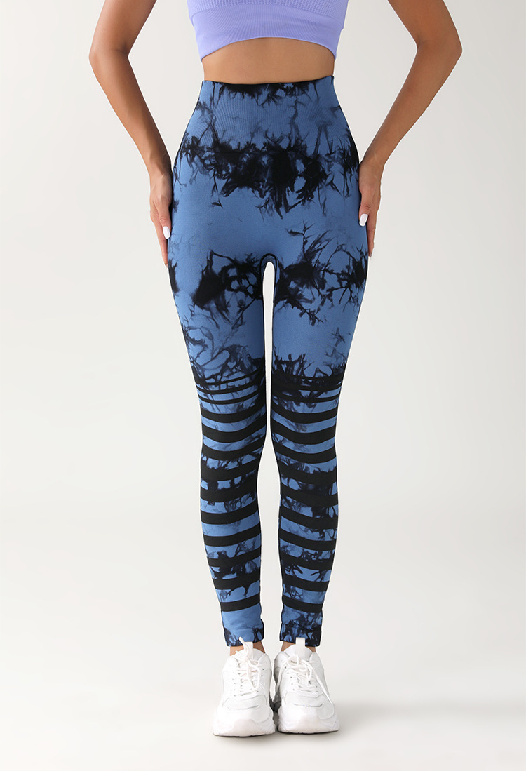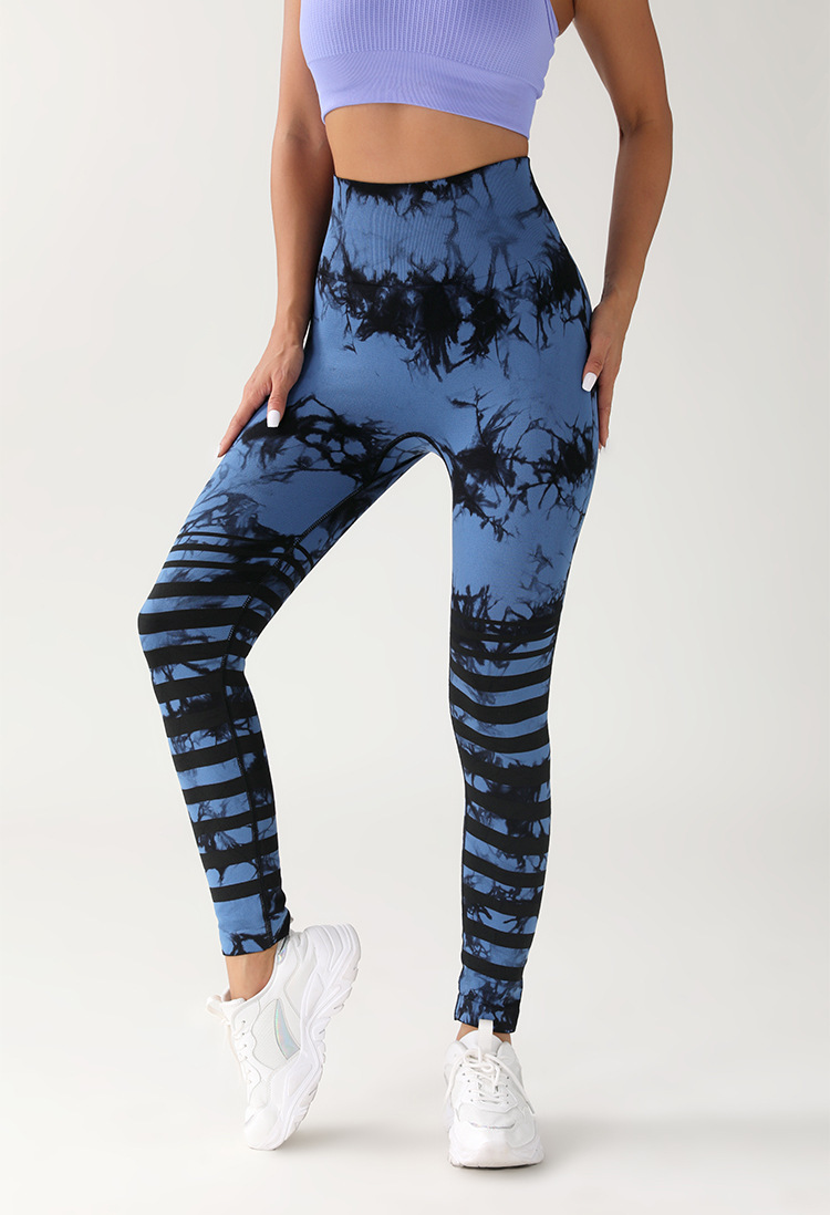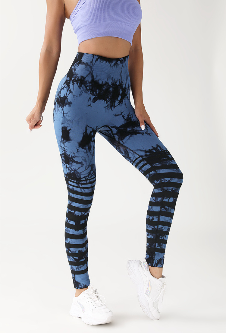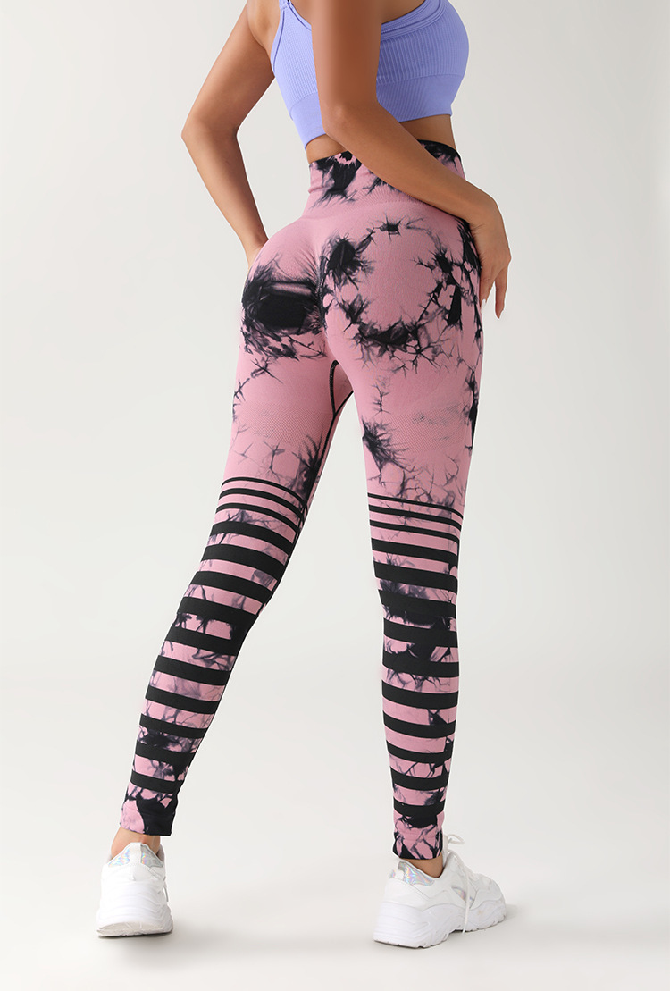 Euro Trendy Pantalones de yoga con levantamiento de glúteos y cintura alta sin costuras con efecto tie-dye