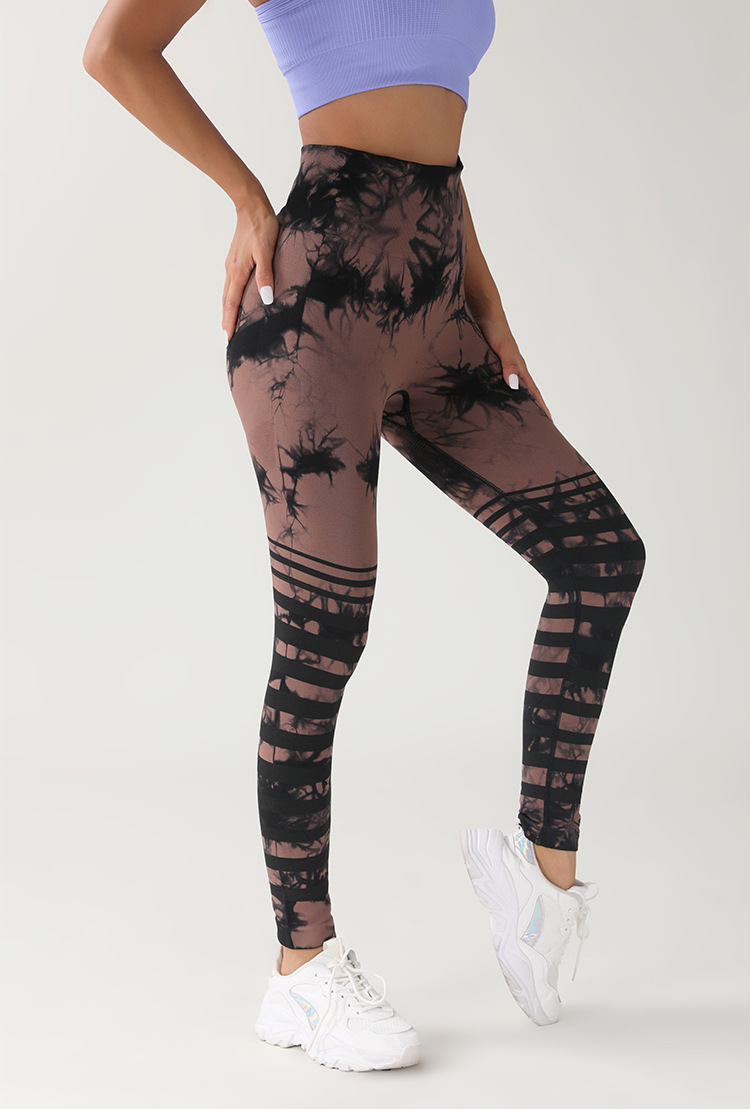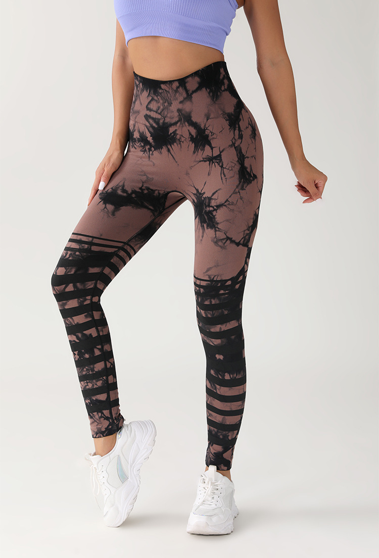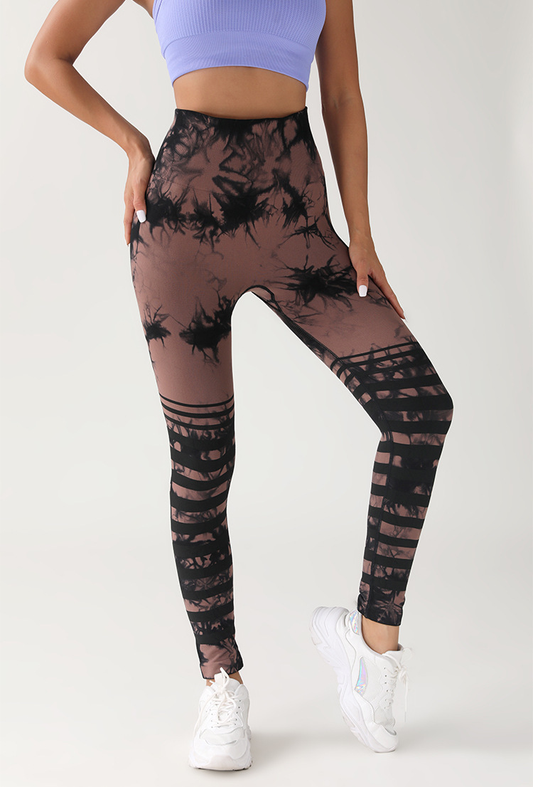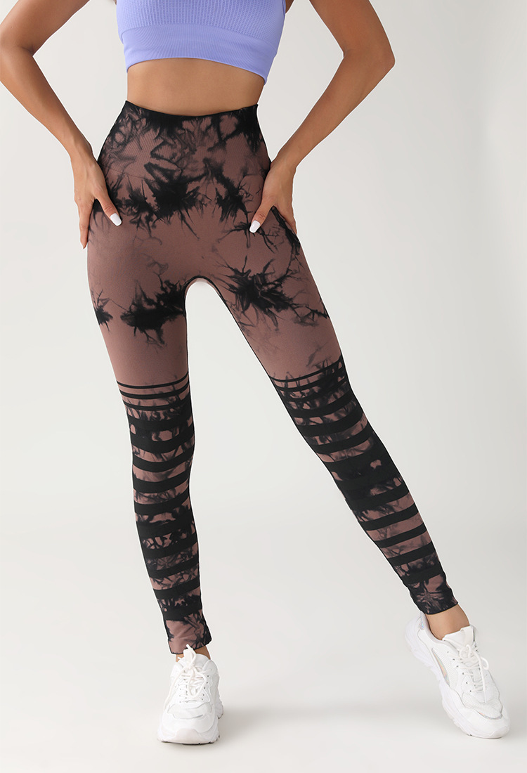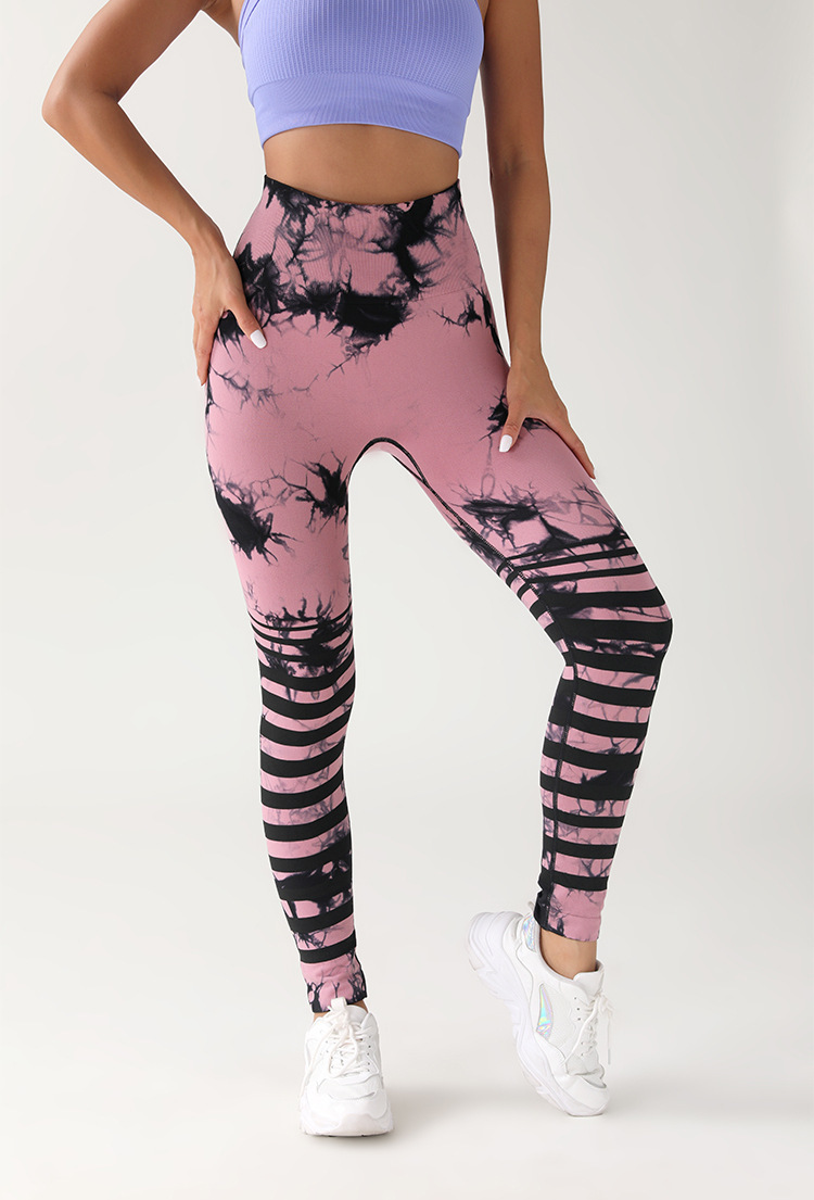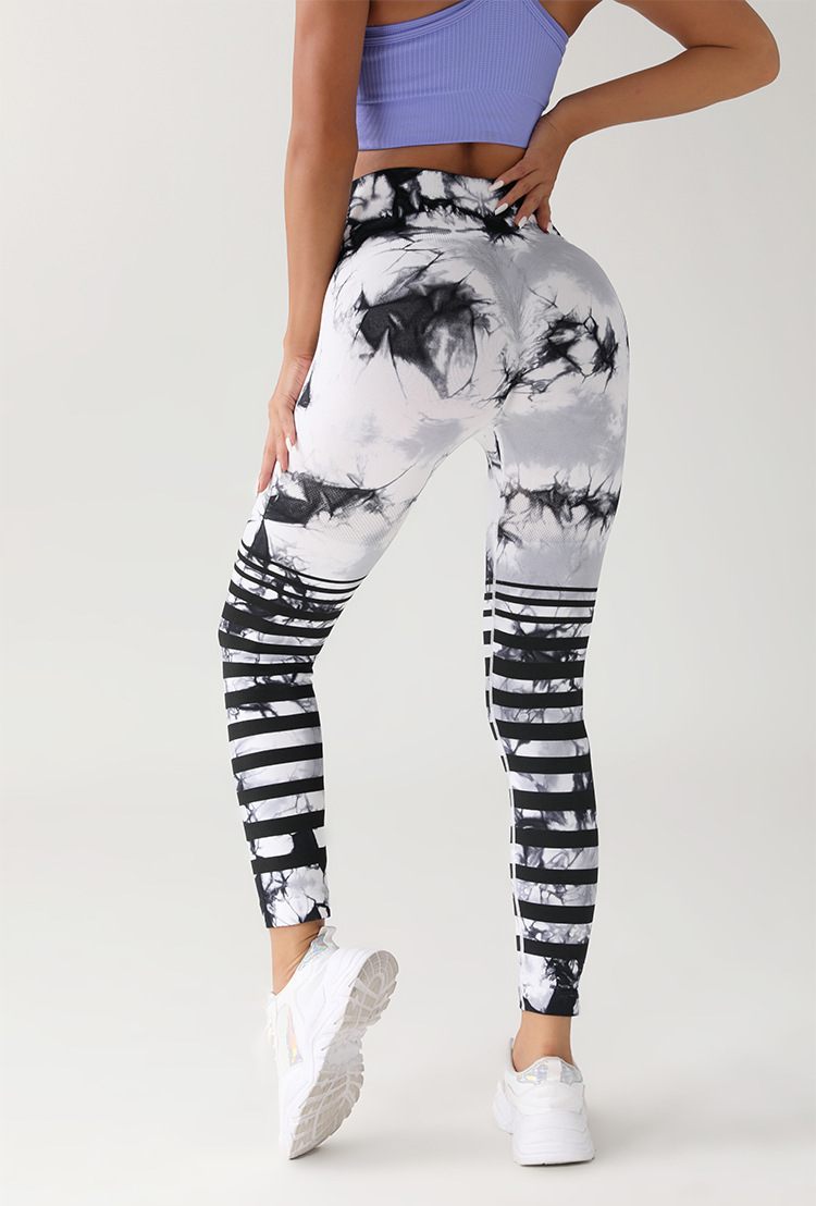 Euro Trendy Pantalones de yoga con levantamiento de glúteos y cintura alta sin costuras con efecto tie-dye