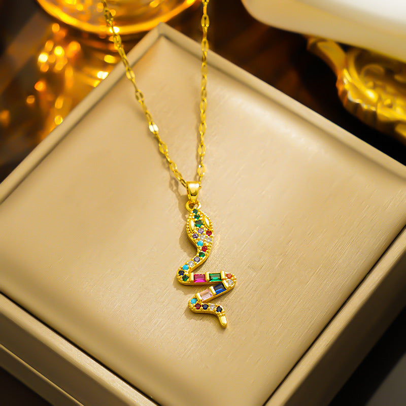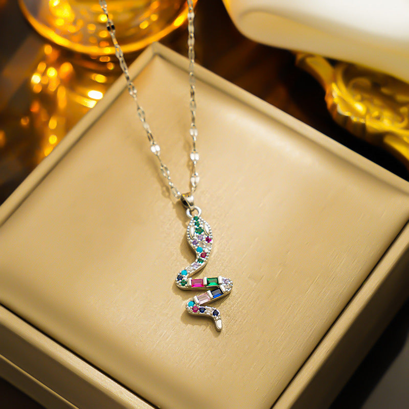 Collar de serpiente animal de moda con colgante de corazón de circón al por mayor