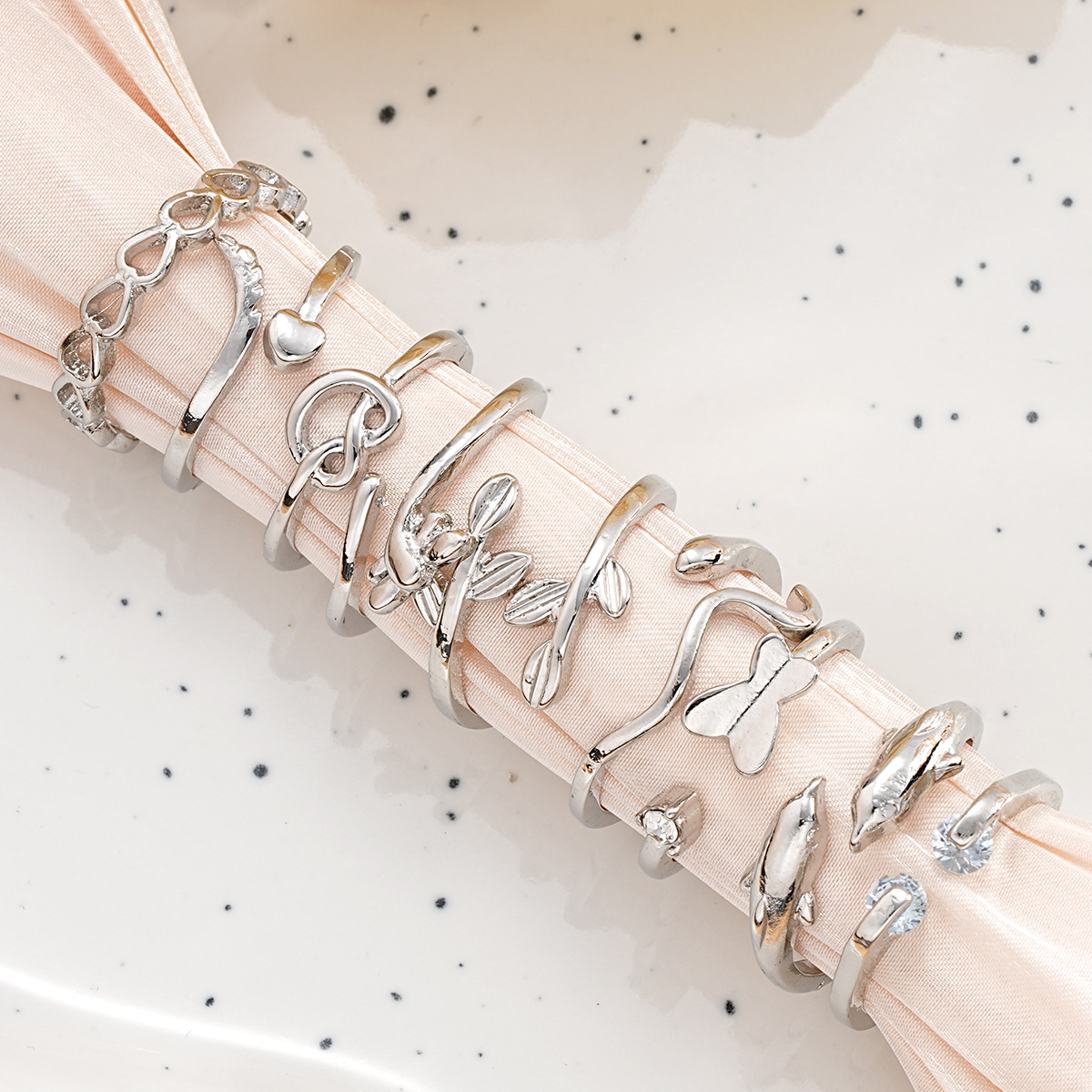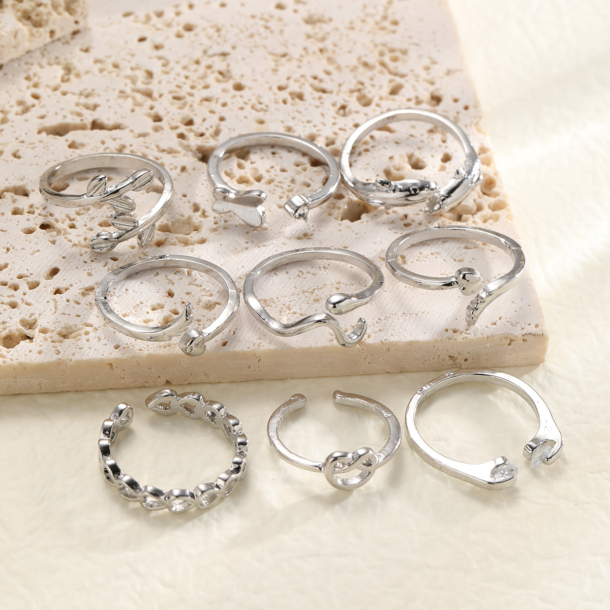 Juego de 9 anillos abiertos para el tobillo con forma de hoja de corazón
