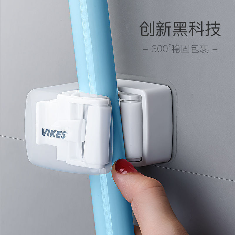 Soporte para fregona para el hogar, sin taladros, montaje en pared, con clip fijo