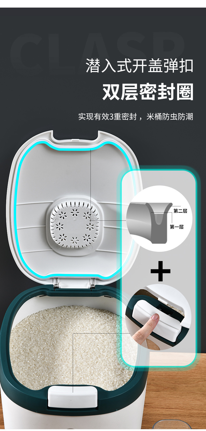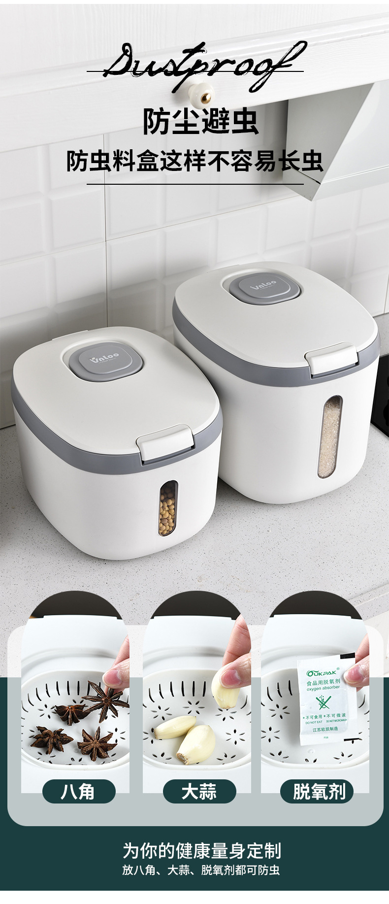 Contenedor de almacenamiento de arroz sellado para el hogar