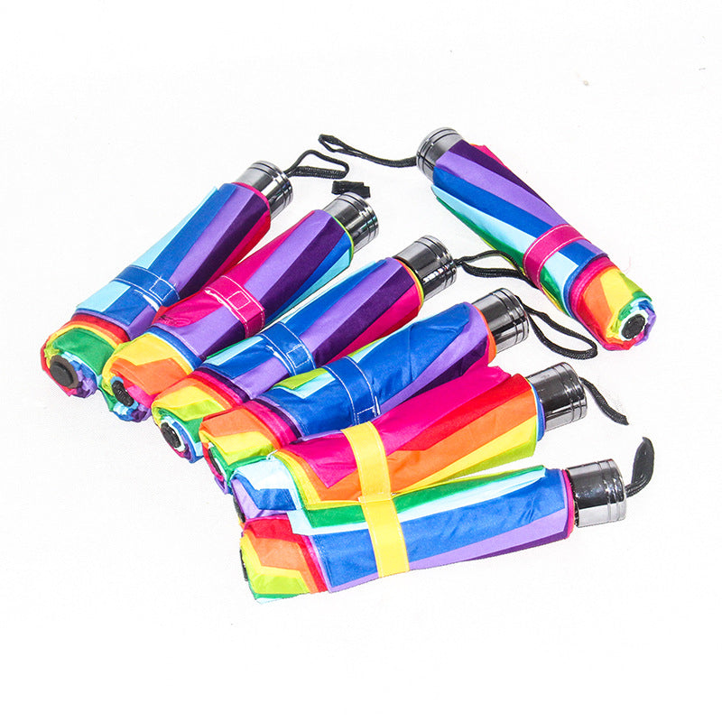 Paraguas de tela resistente a impactos Hongfu de 3 pliegues con arcoíris