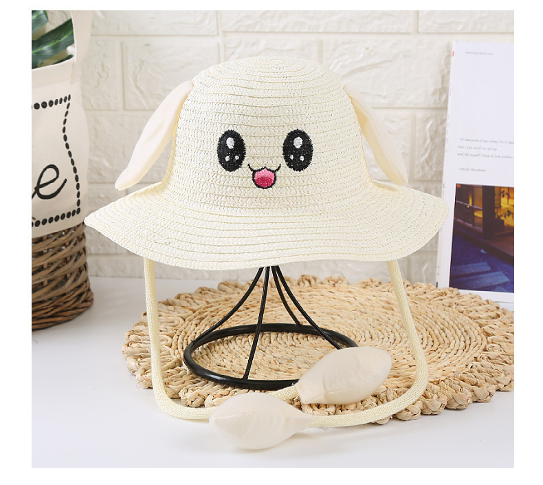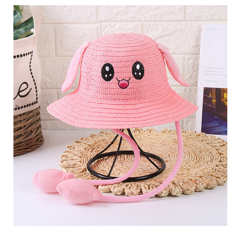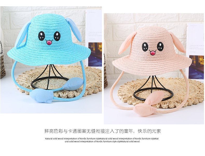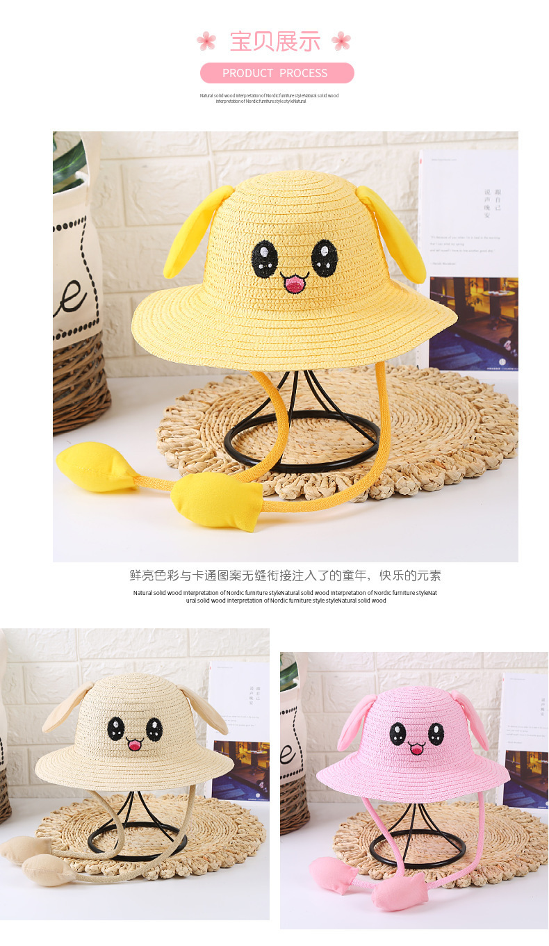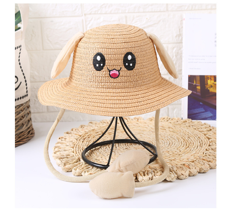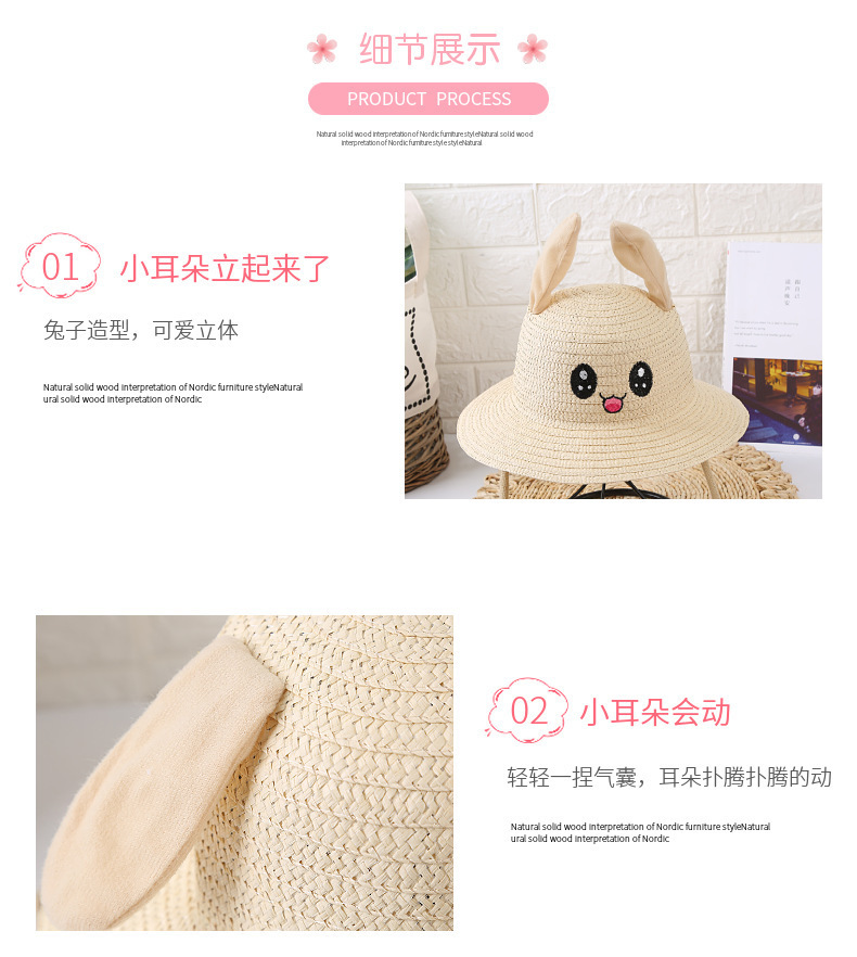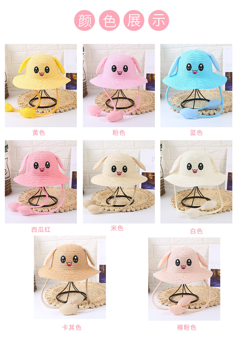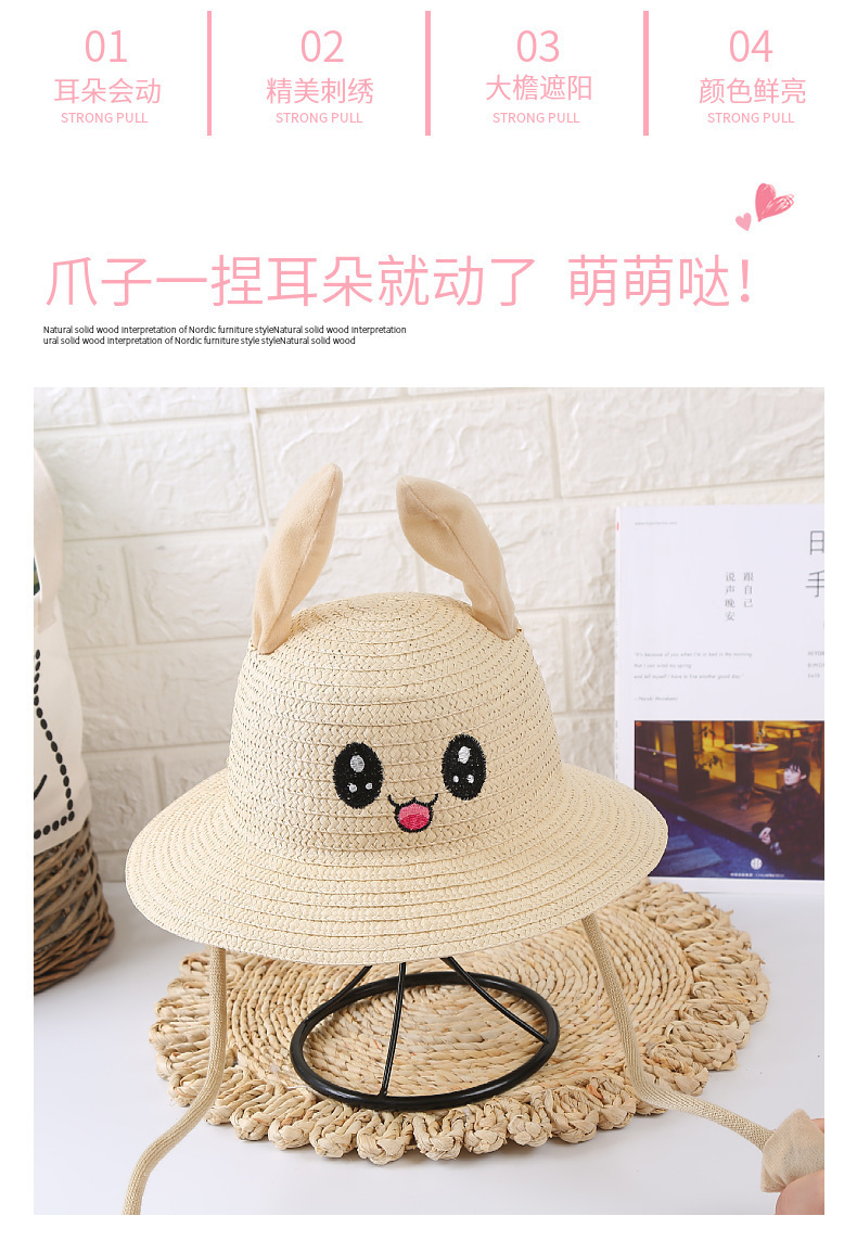 Gorro de paja con orejas de conejo para bebé, protección UV, bonito y divertido