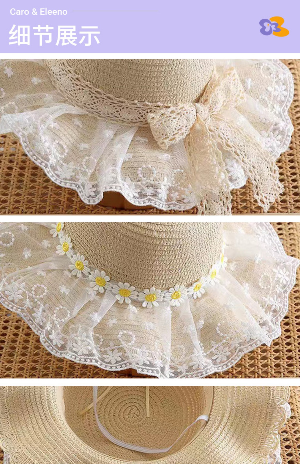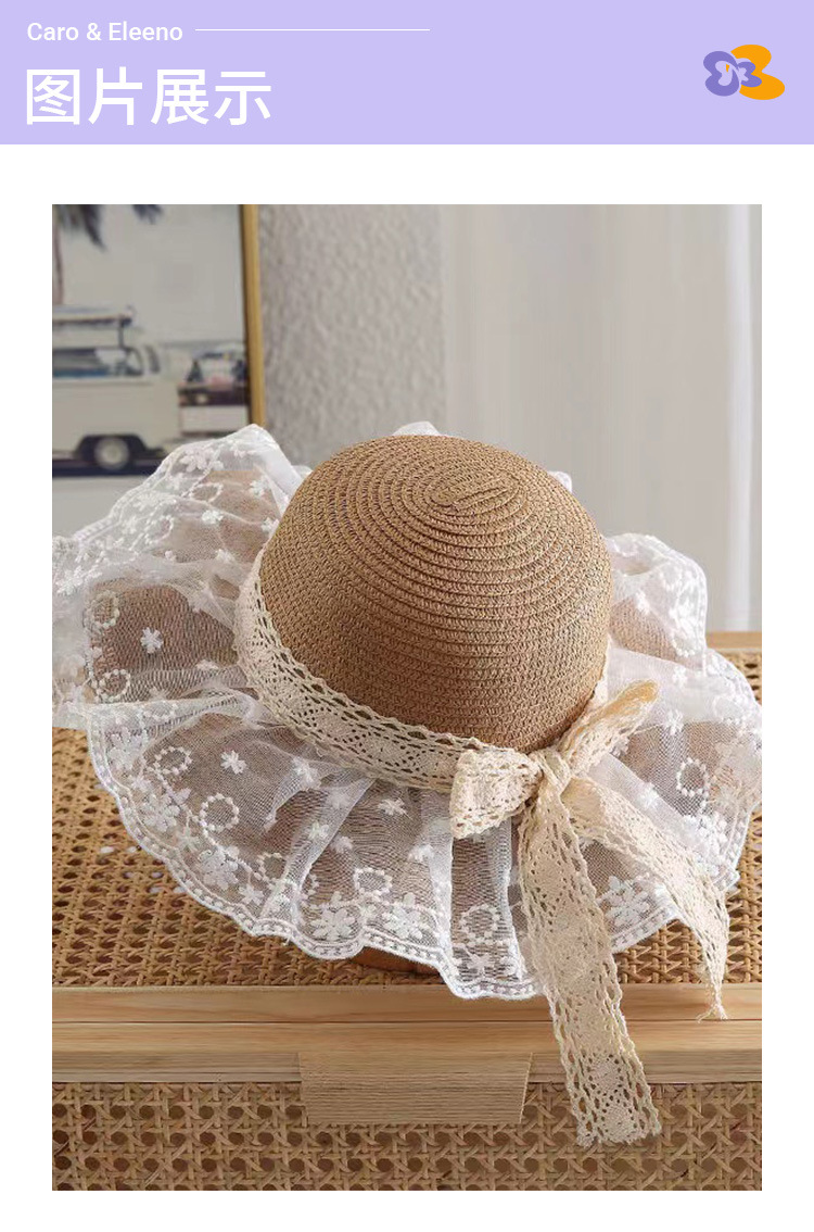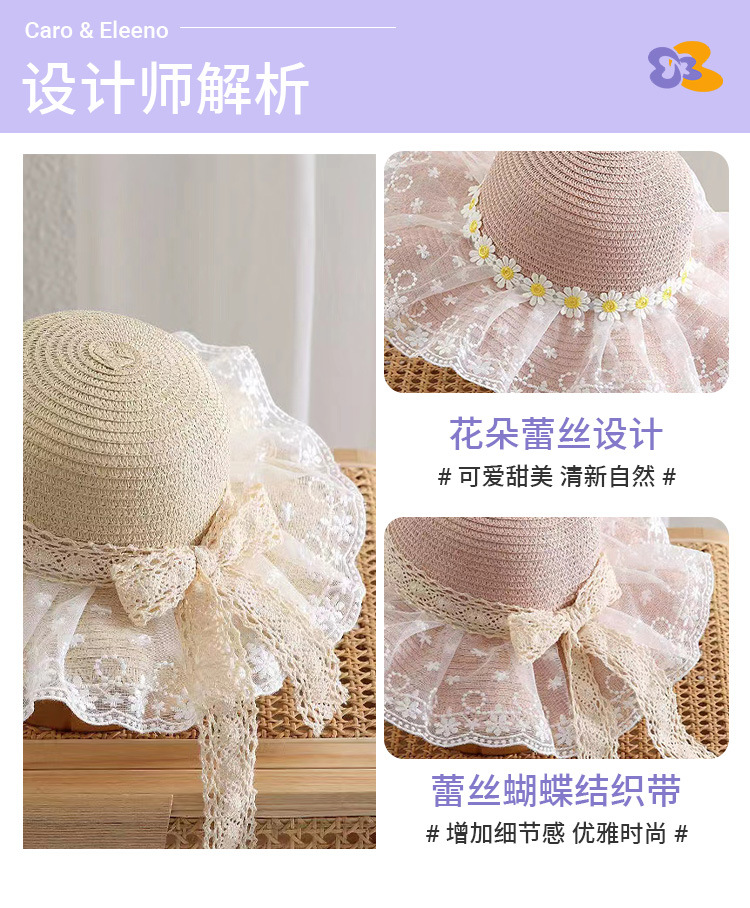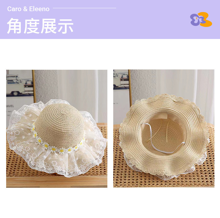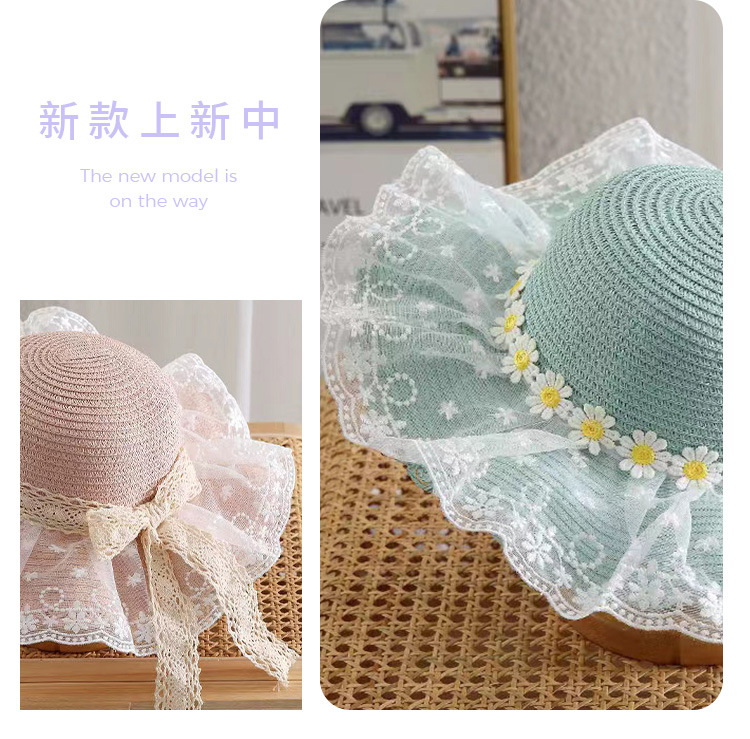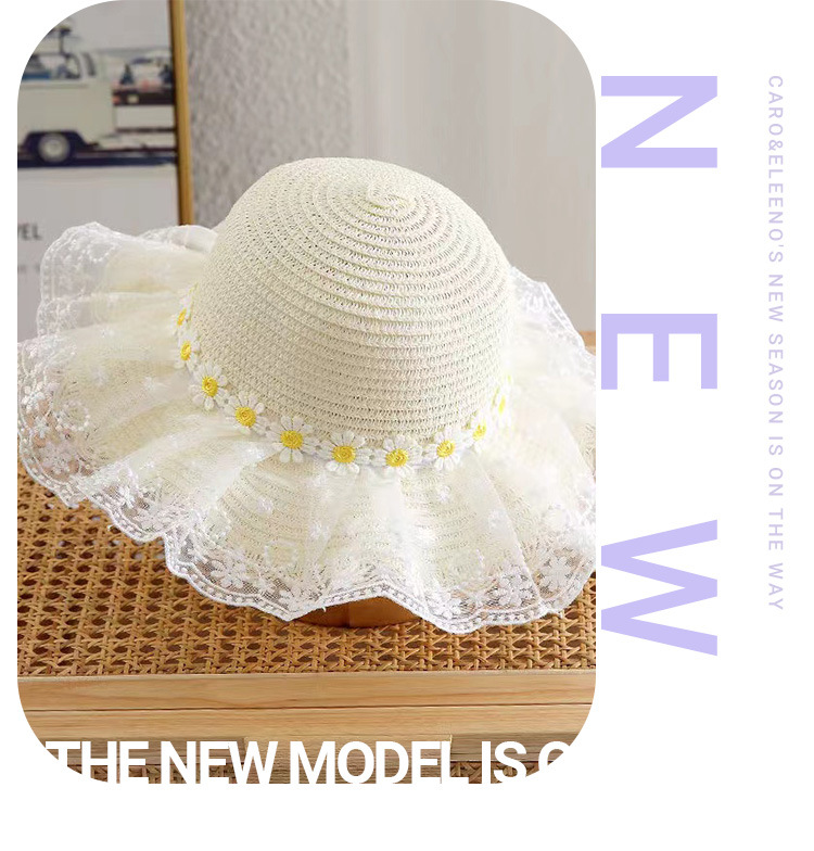 Sombrero de paja con encaje de margaritas para niños, fino y con protección UV