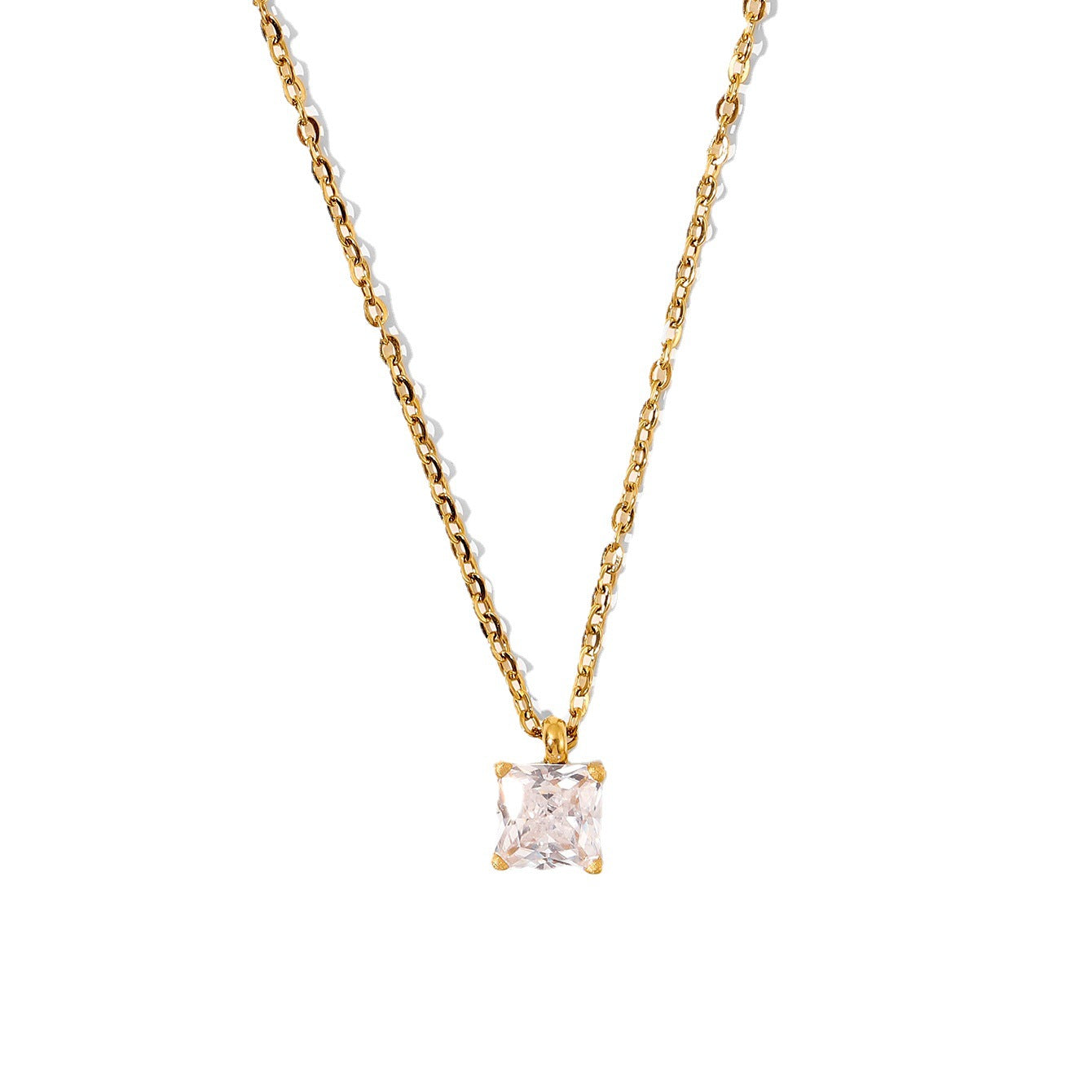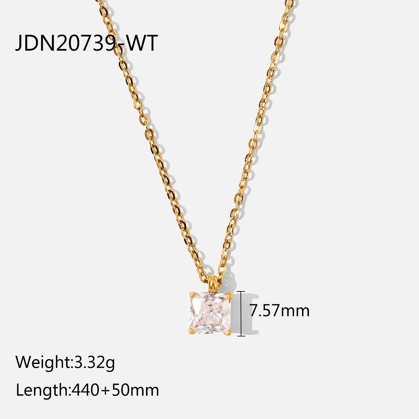Collar con colgante de circonita cuadrada blanca/rosa/verde