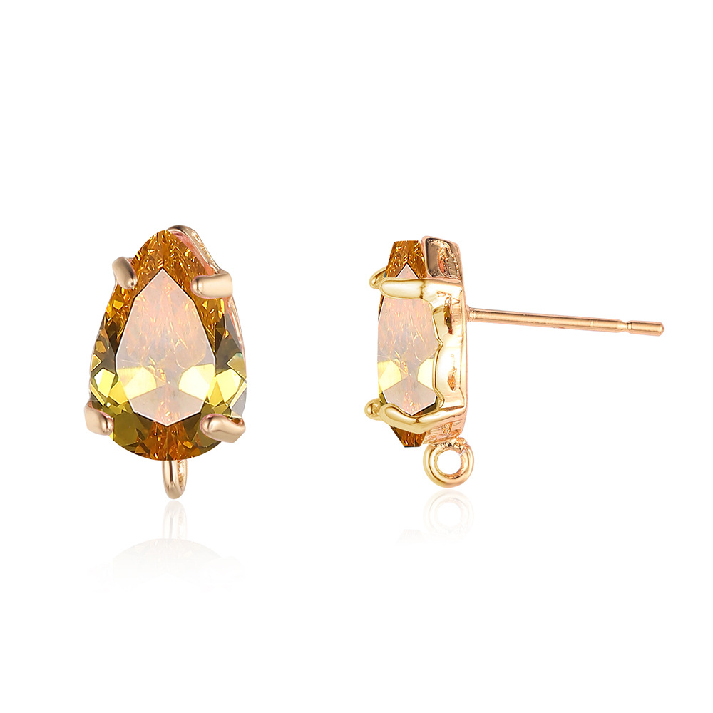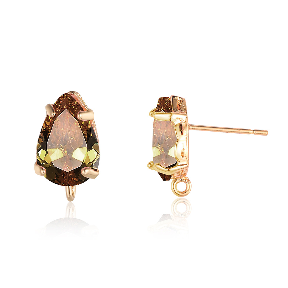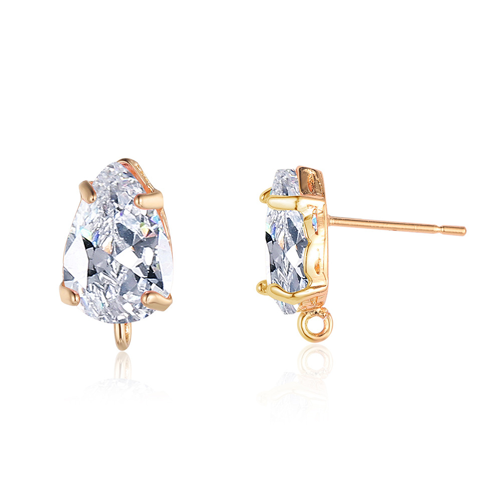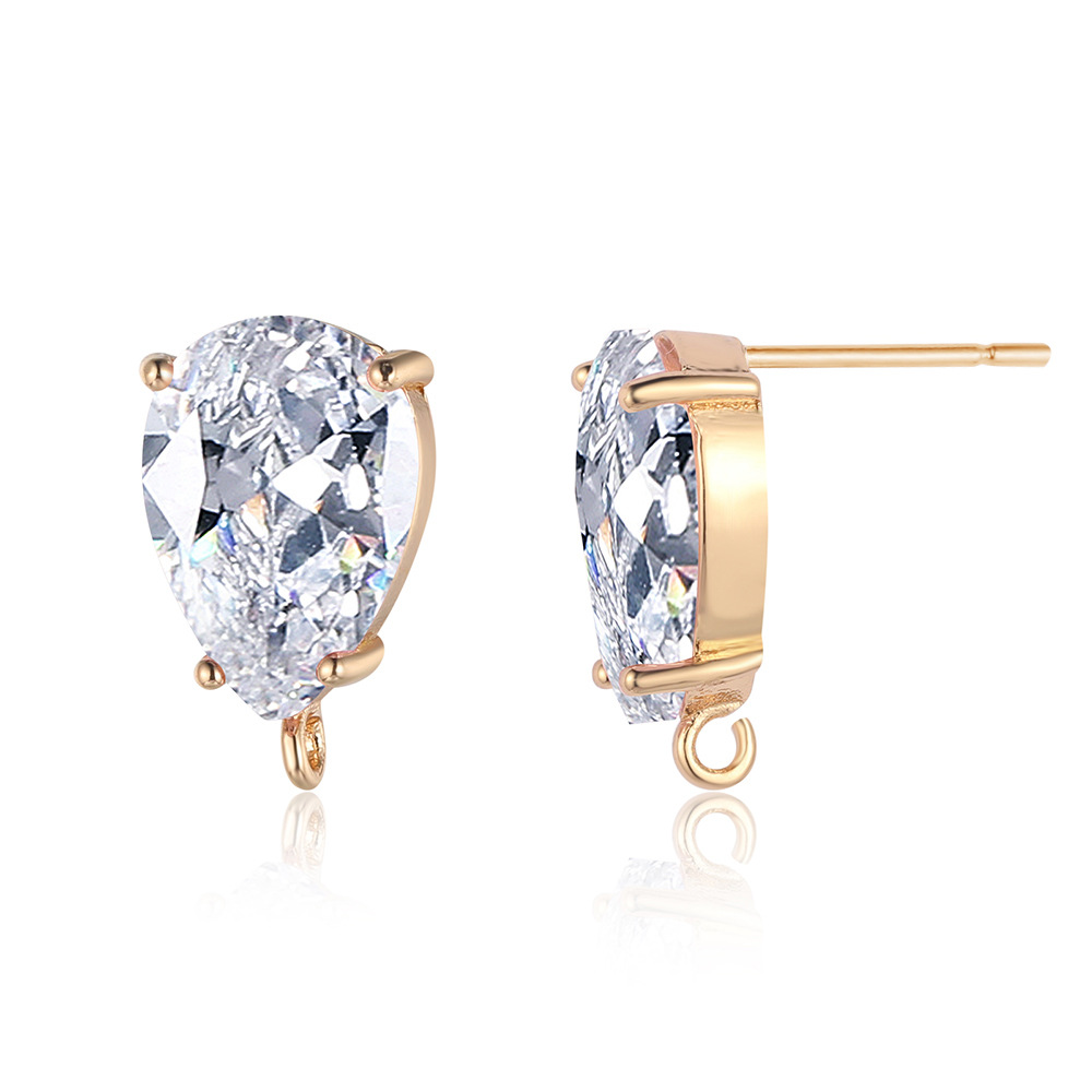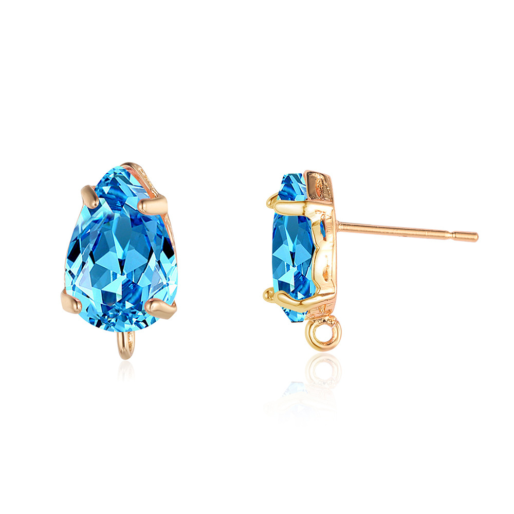 10 pcs/pack, drop-shaped brass crystal glass stud earrings.