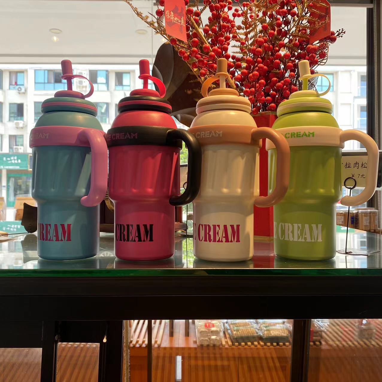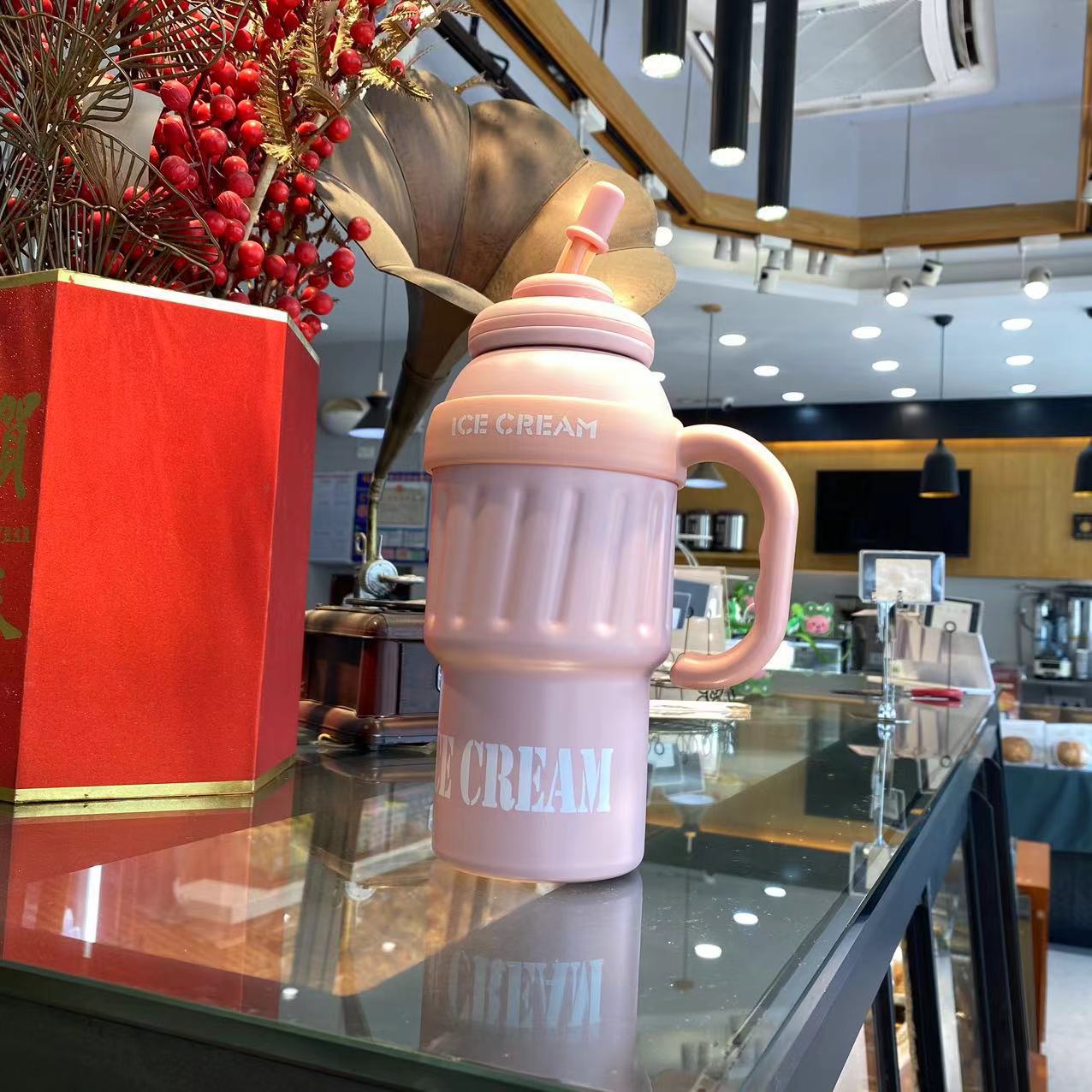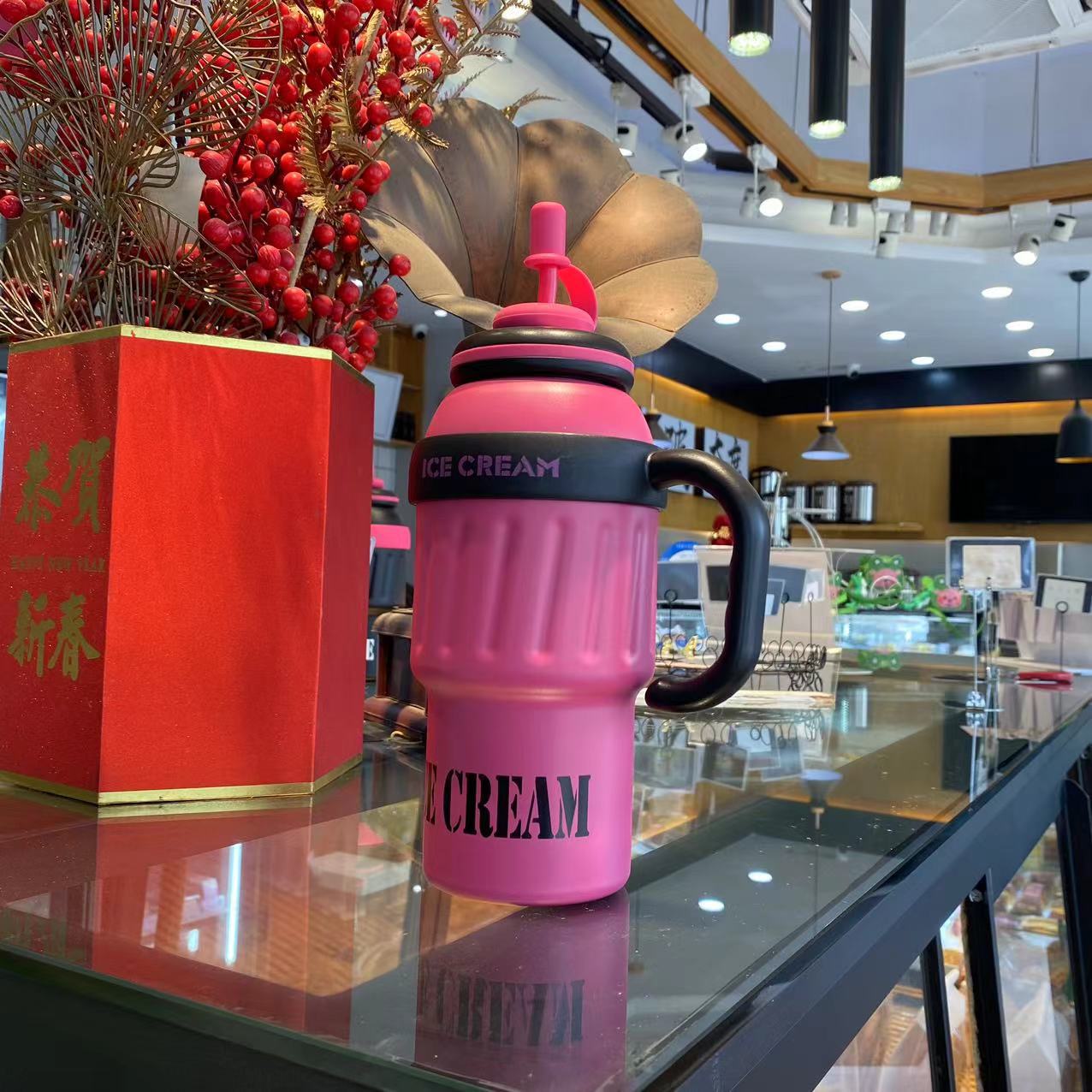 1000ml Giant Insulated Cup, Ice-Breaker Cup with Handle and Straw
