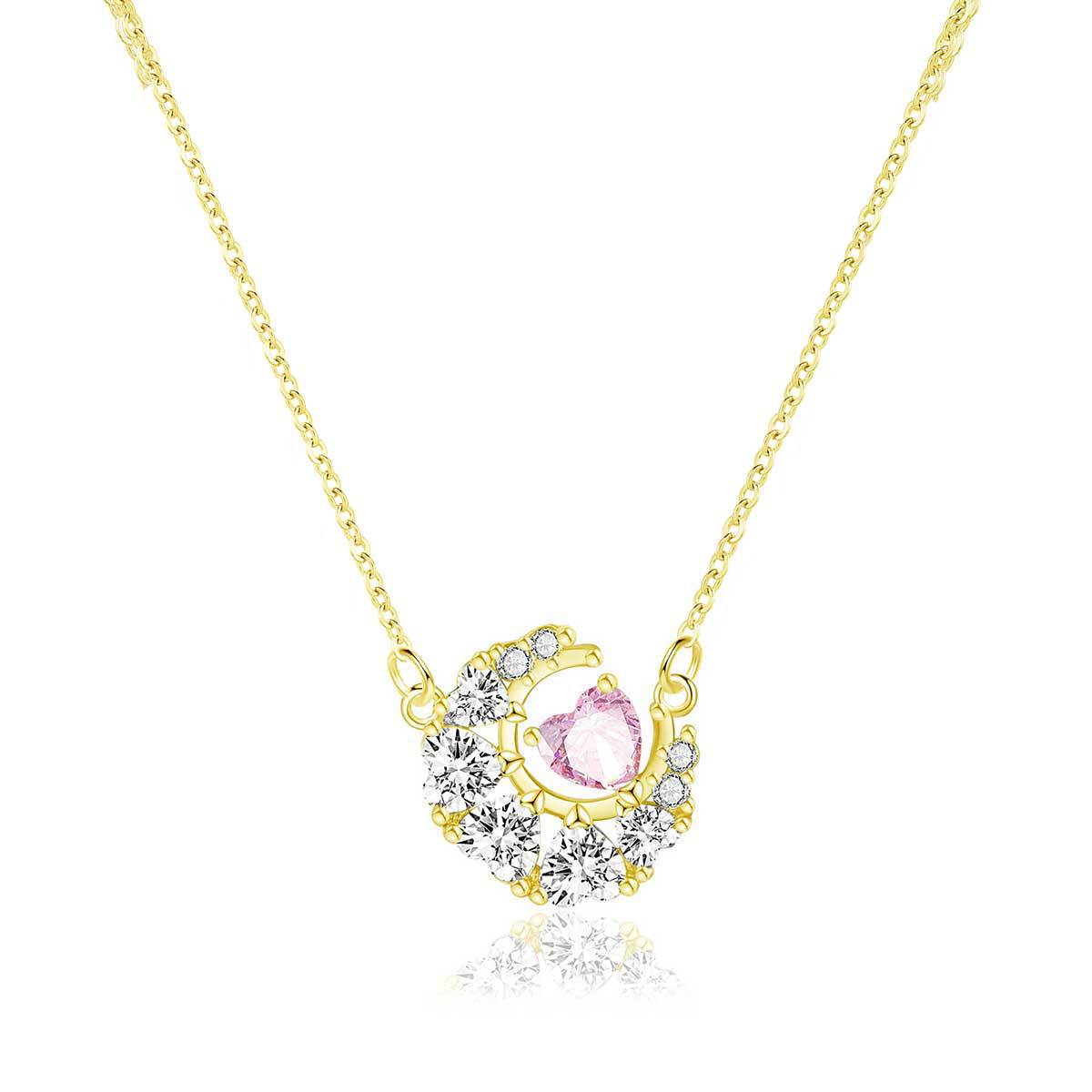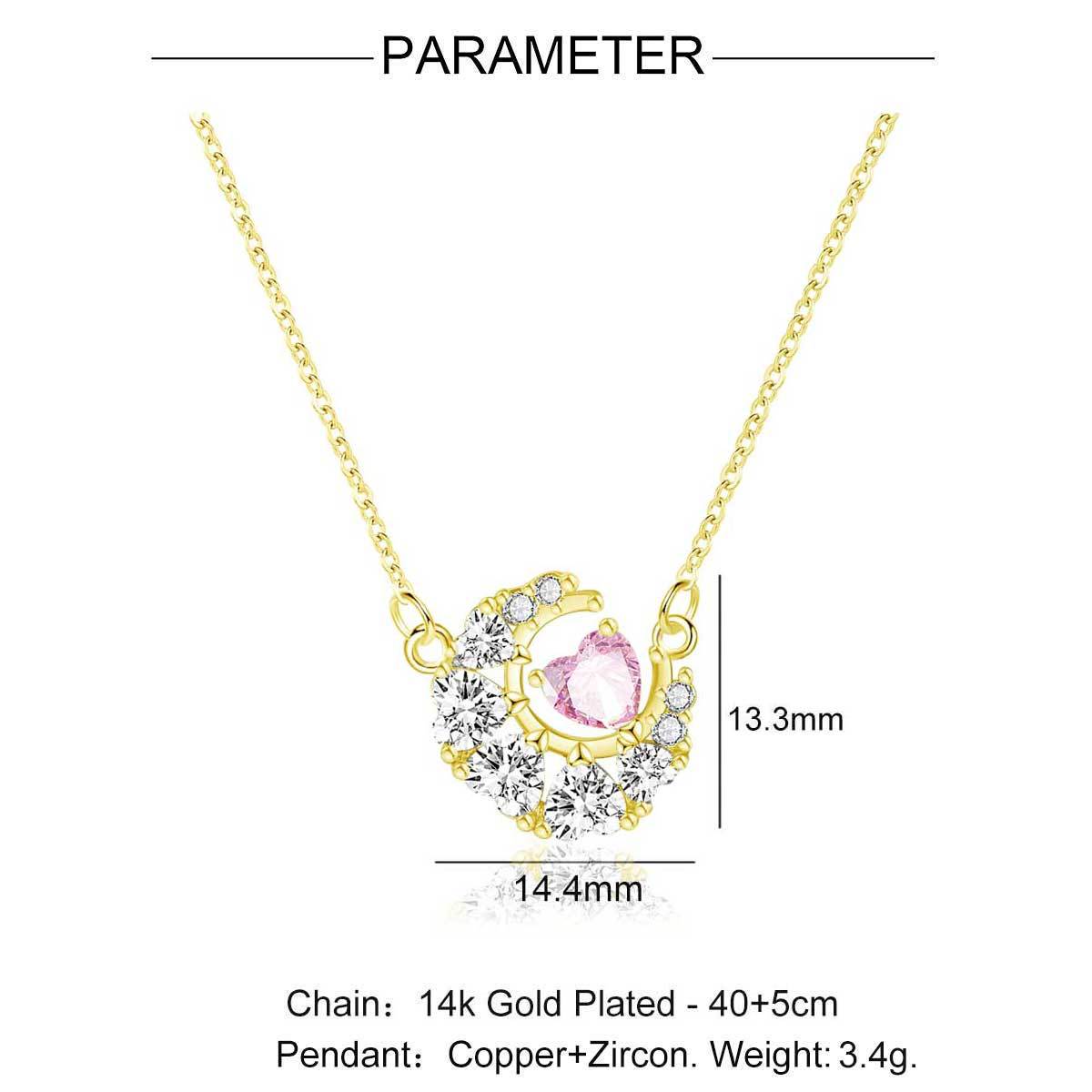 14k gold heart moon necklace women's copper inlaid with 5A zircon
