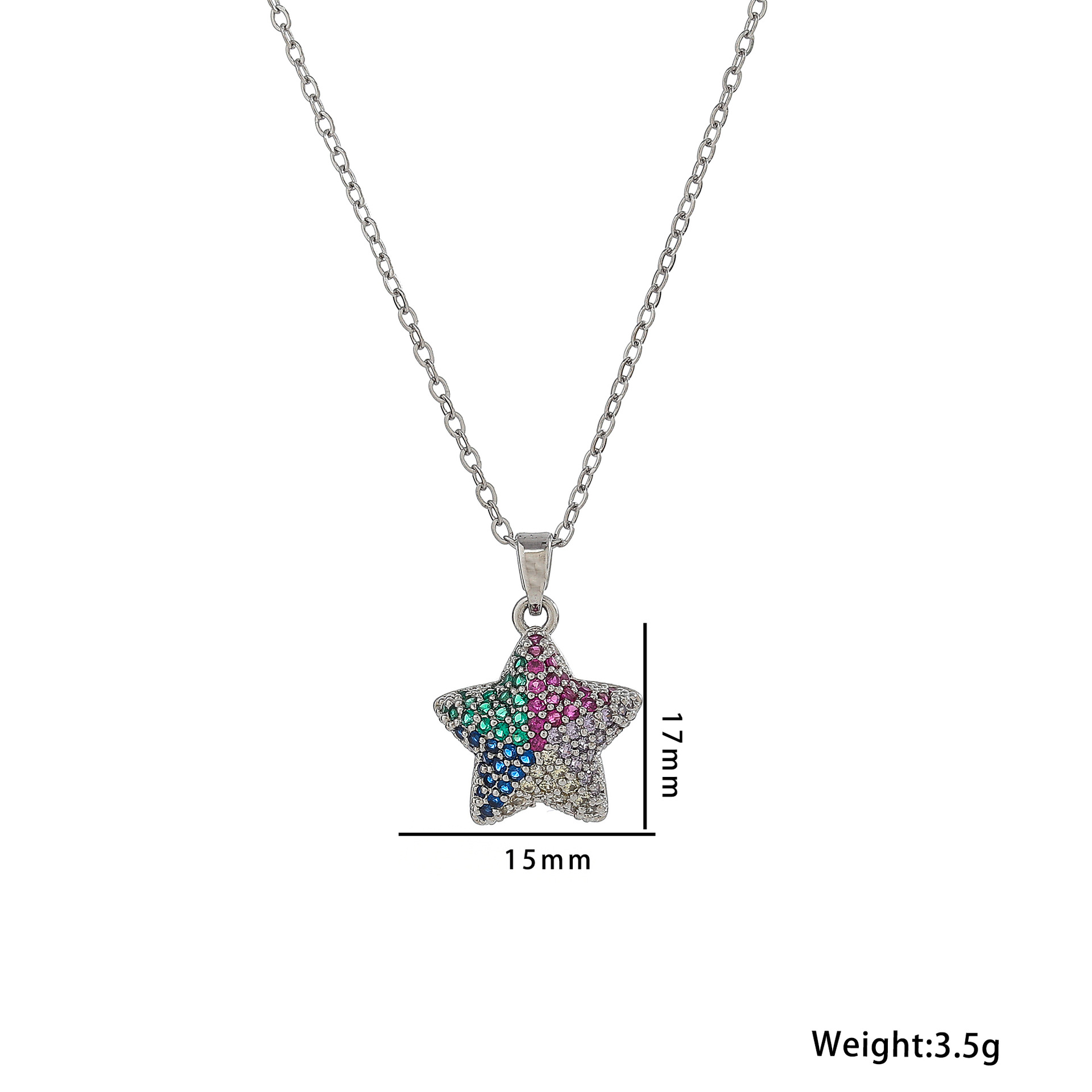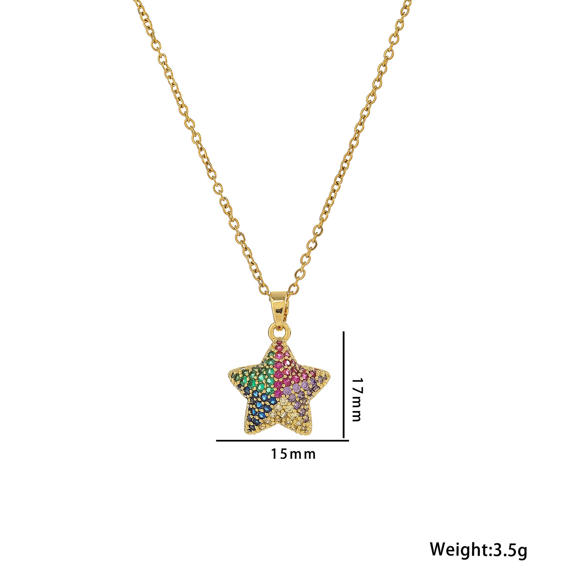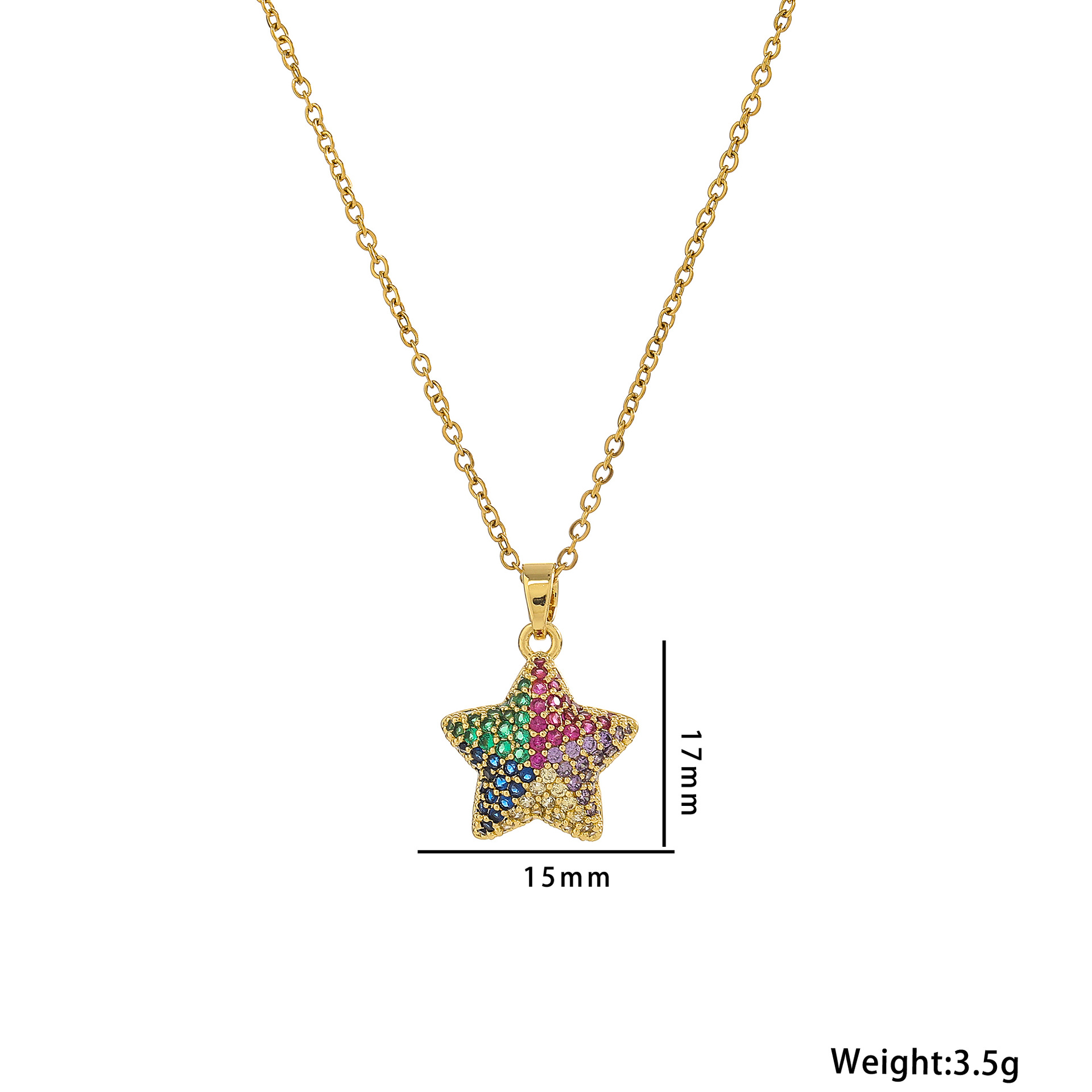 18K Gold Plated Star Pendant Necklace with Zirconia, Trendy Cross-Border Item