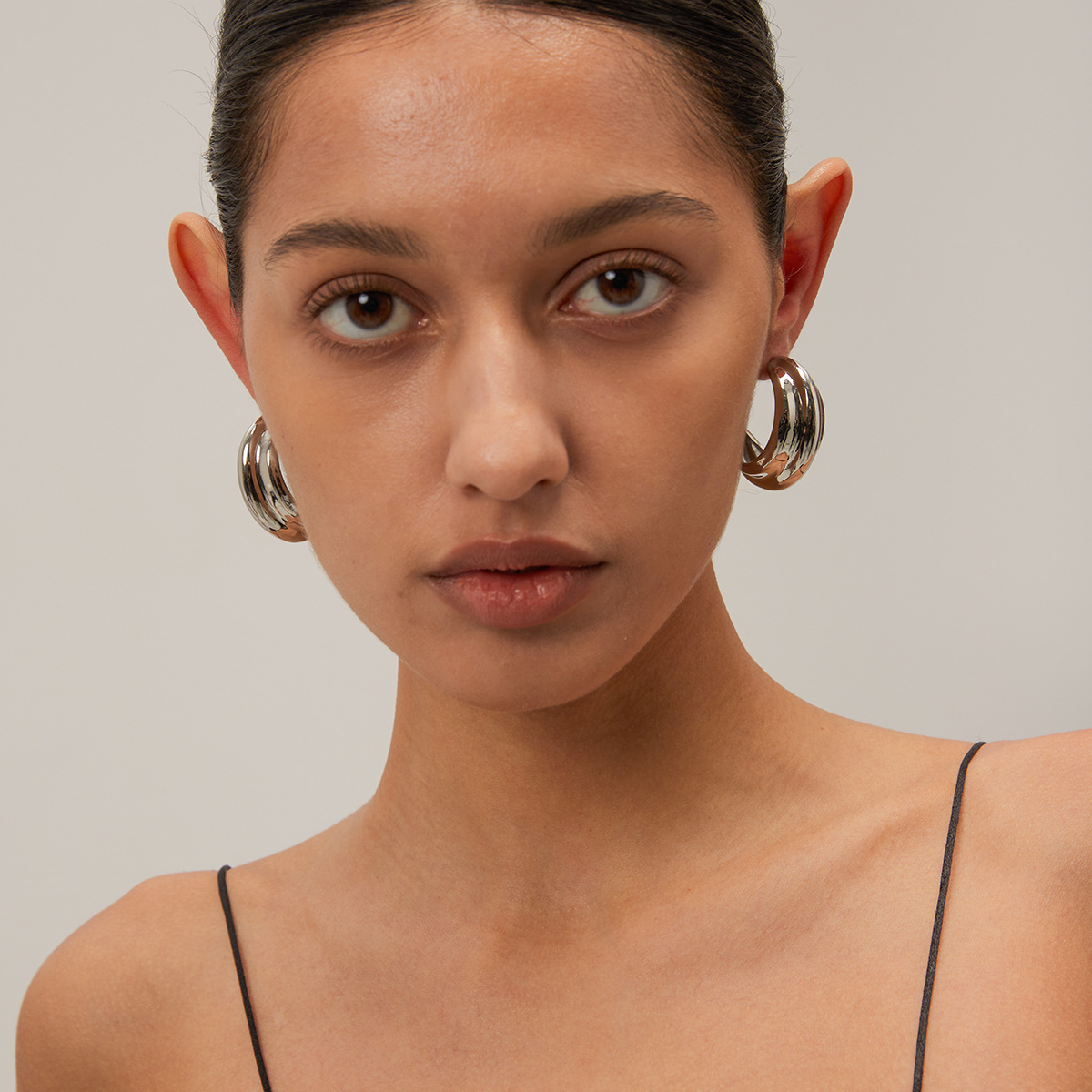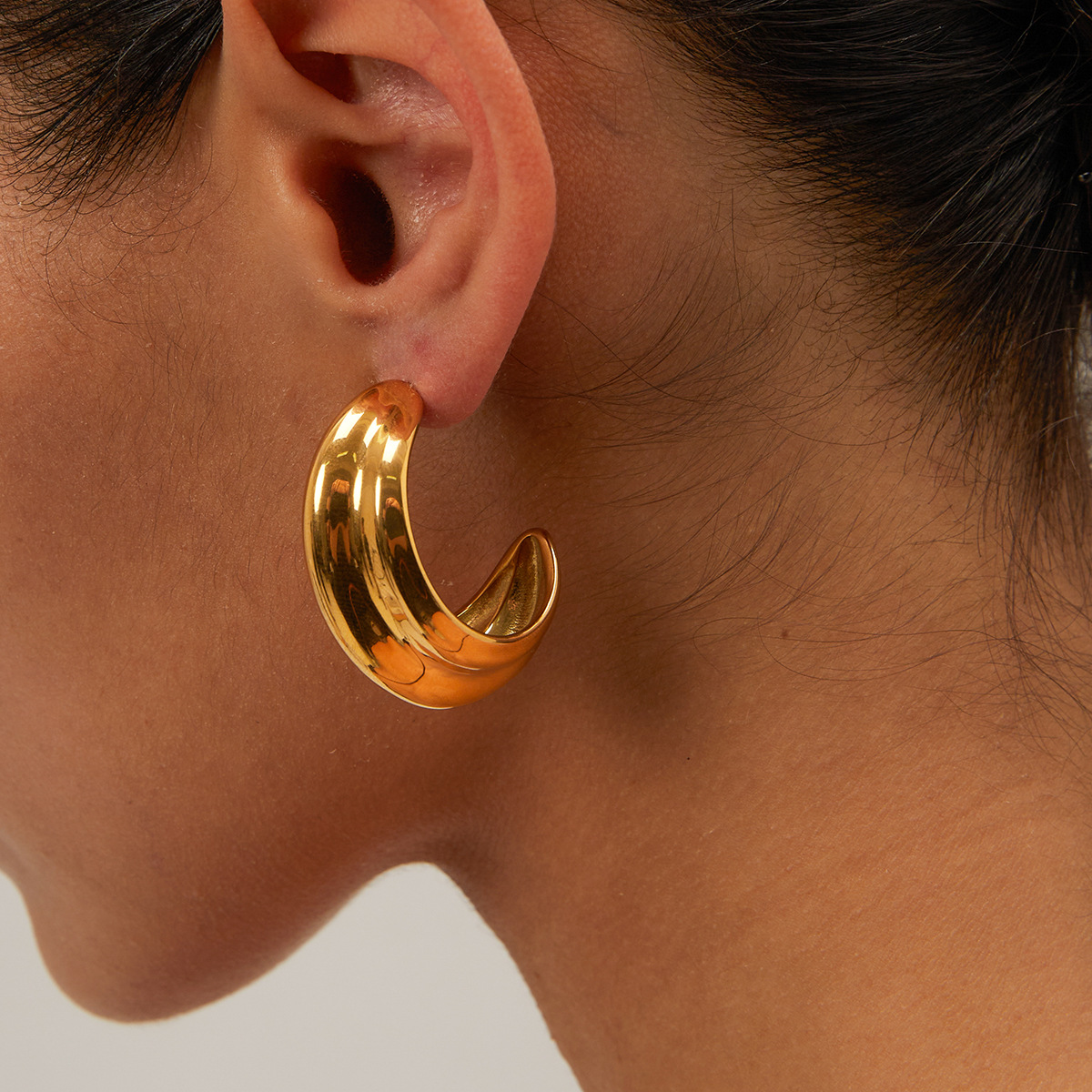 18k gold stainless steel C-shaped earrings