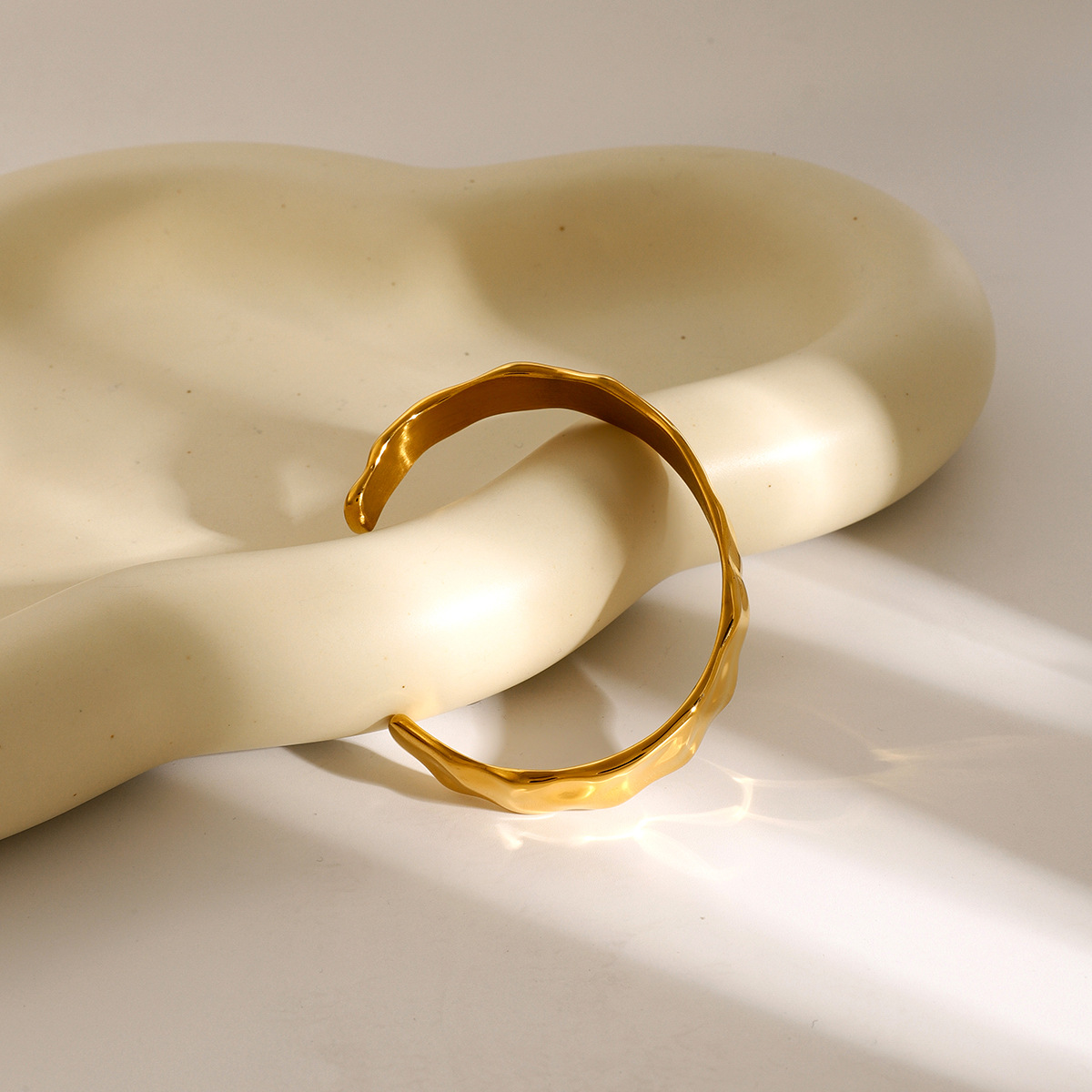 18k gold stainless steel wide hammered bracelet