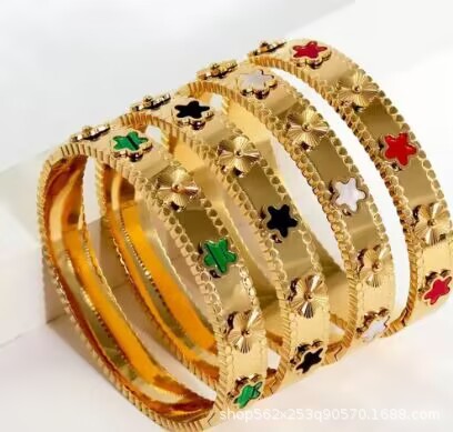 18K Gold Waterproof Stainless Steel Bracelet with Colorful Mother-of-Pearl