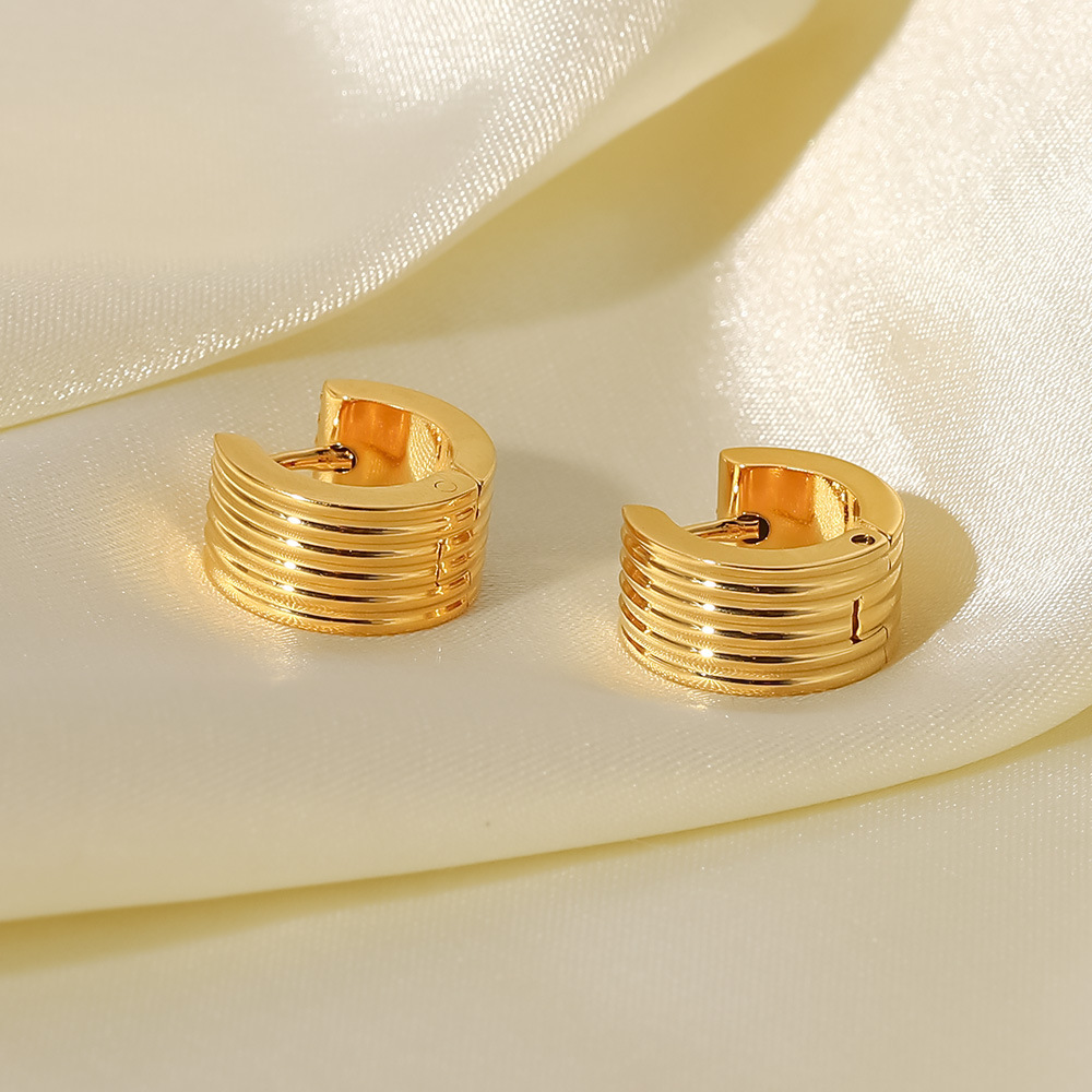 18K Gold Wide Ribbed Stainless Steel Stud Earrings