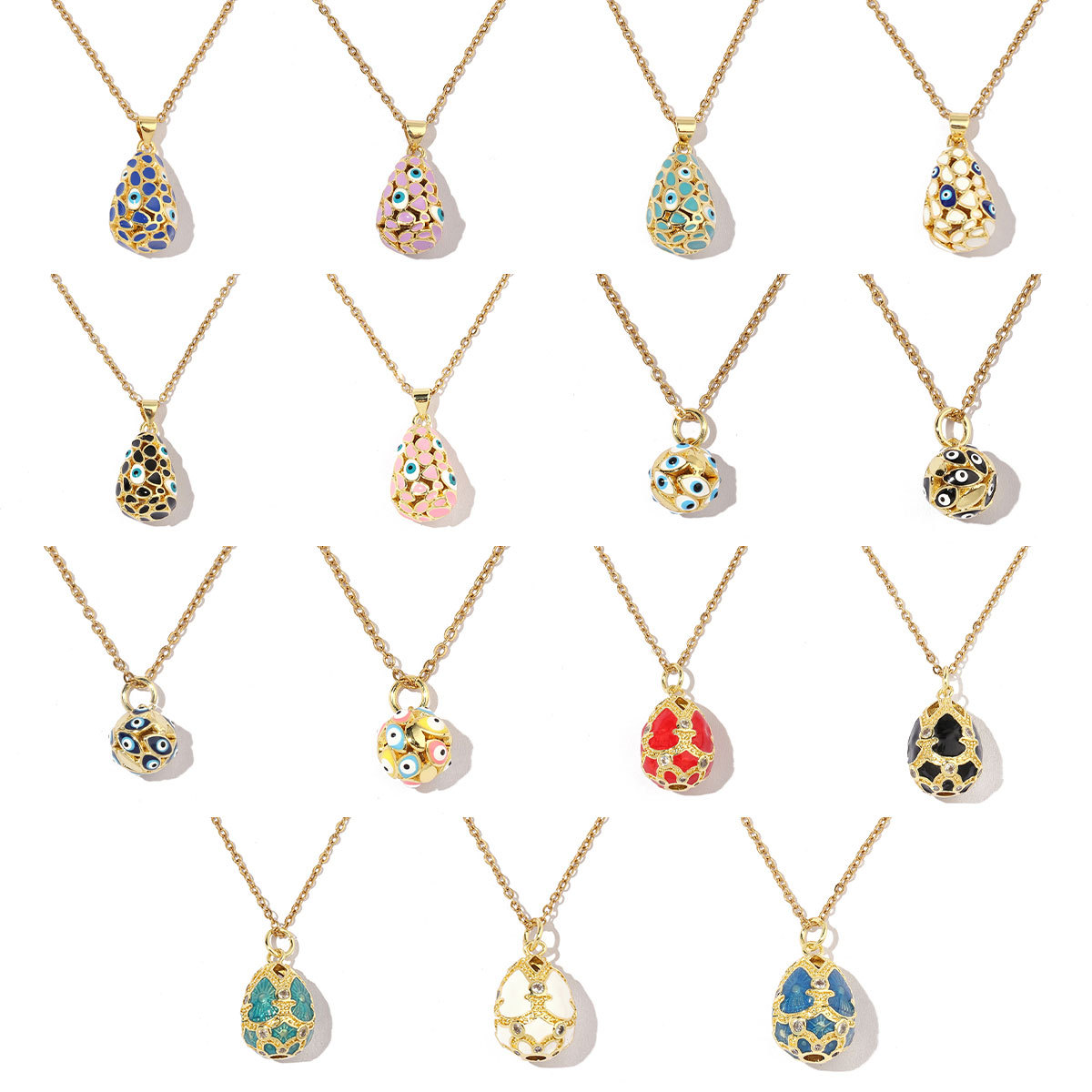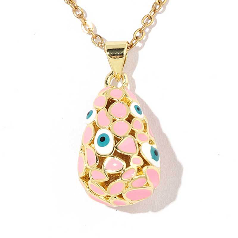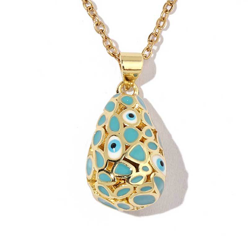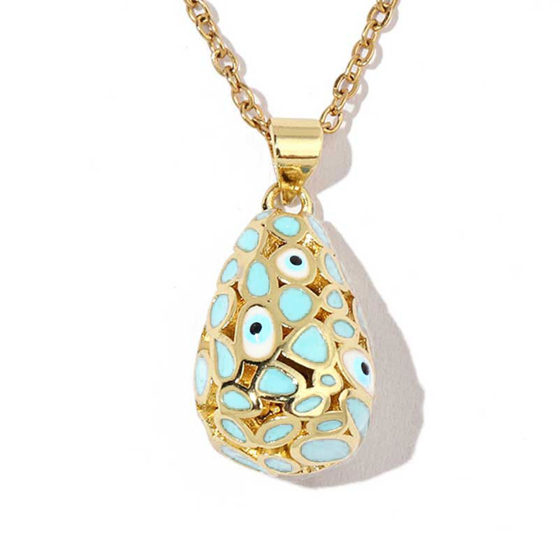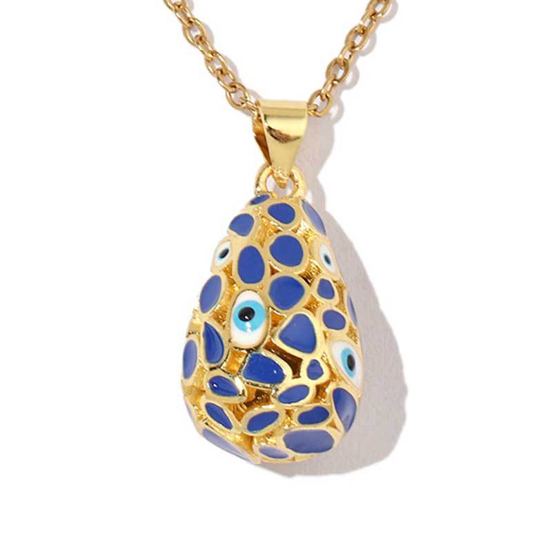 18K real gold color-preserving copper zircon water drop eye pendant.