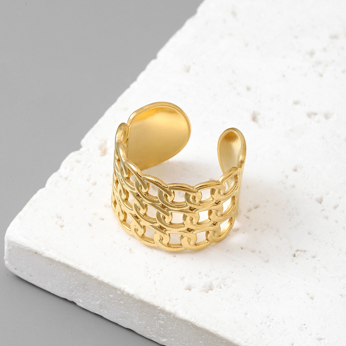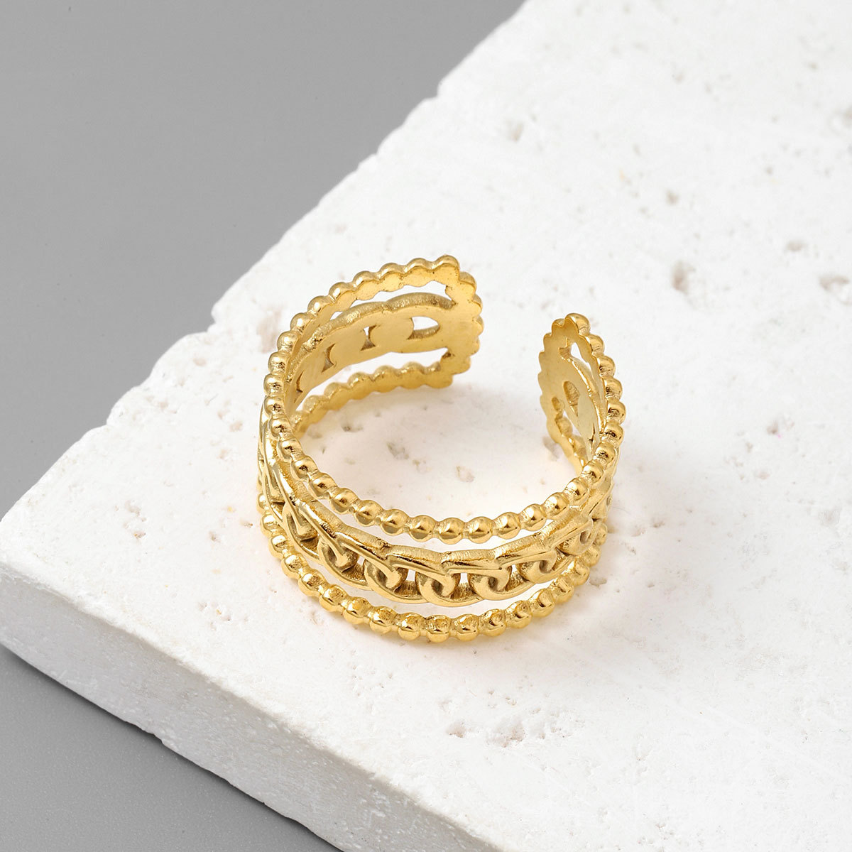 18K real gold titanium steel ring