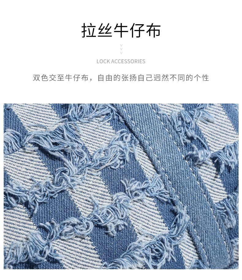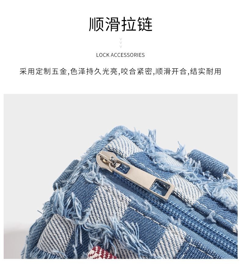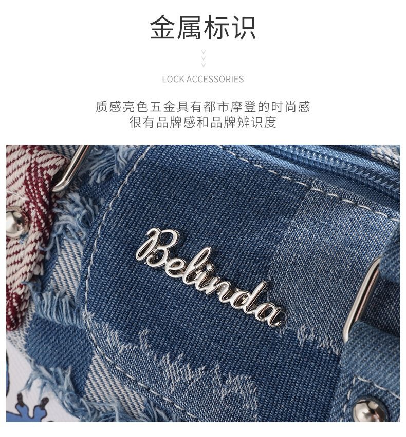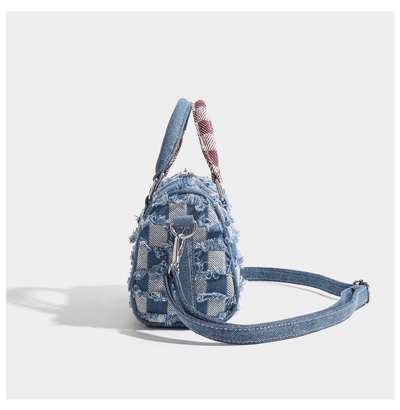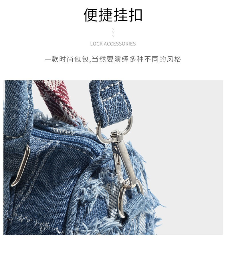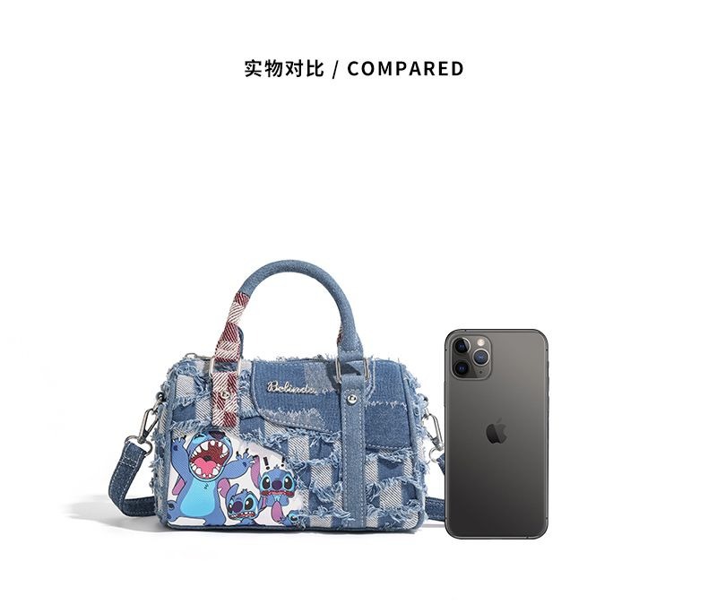 2024新款小众卡通史迪仔牛仔布破洞拼接斜挎手提女包枕头包水桶包