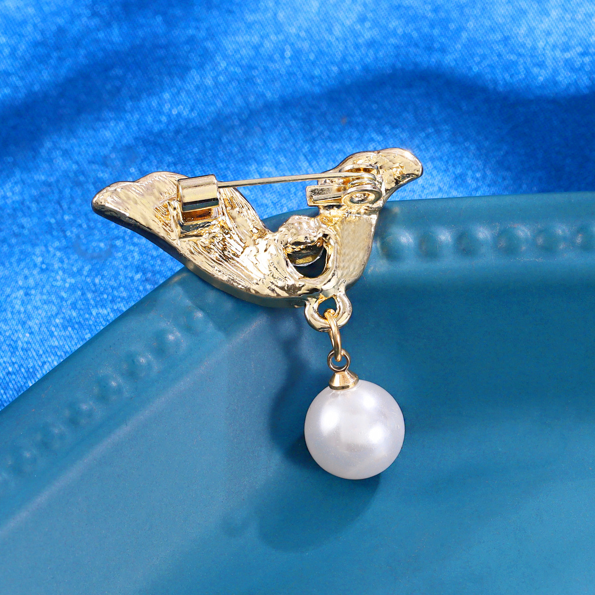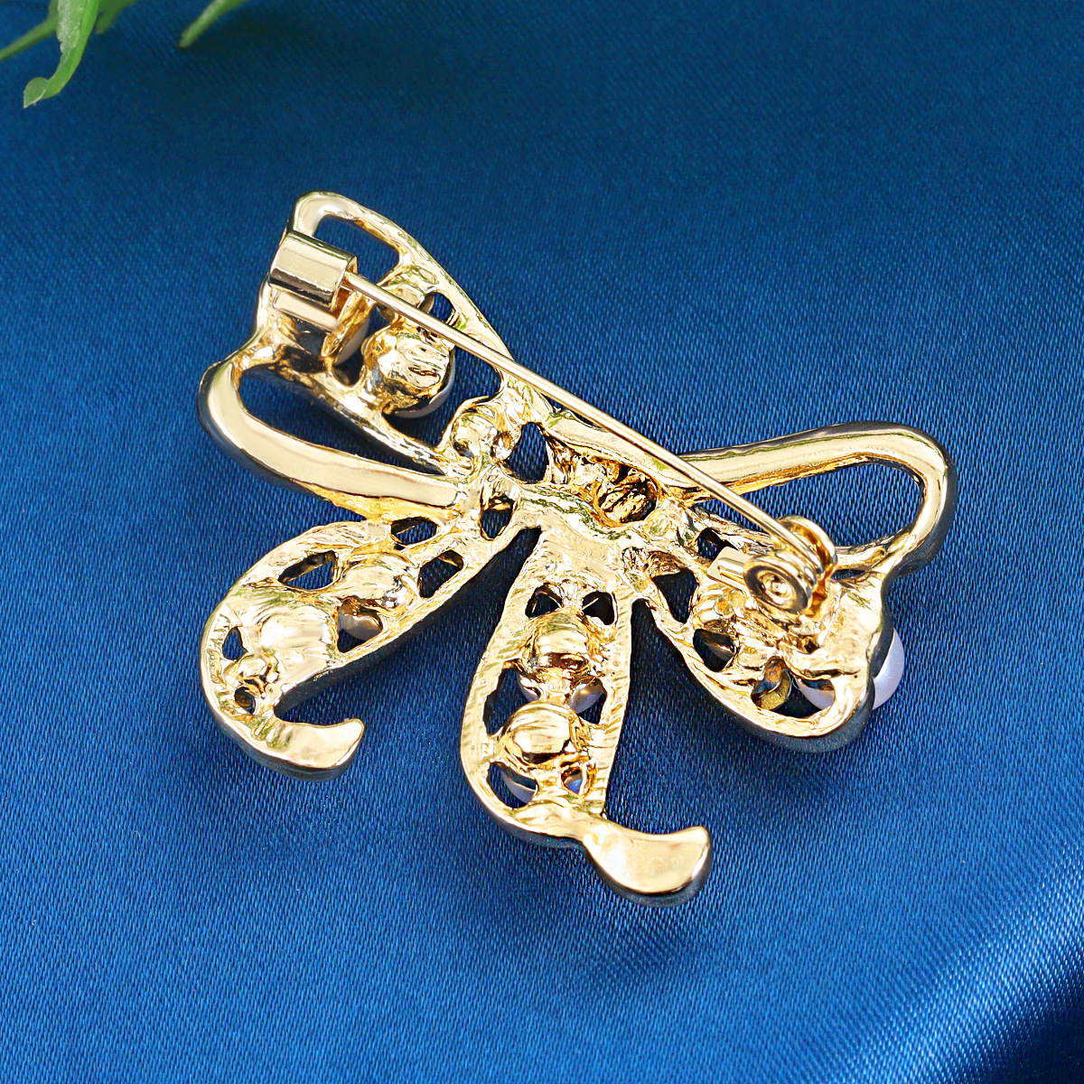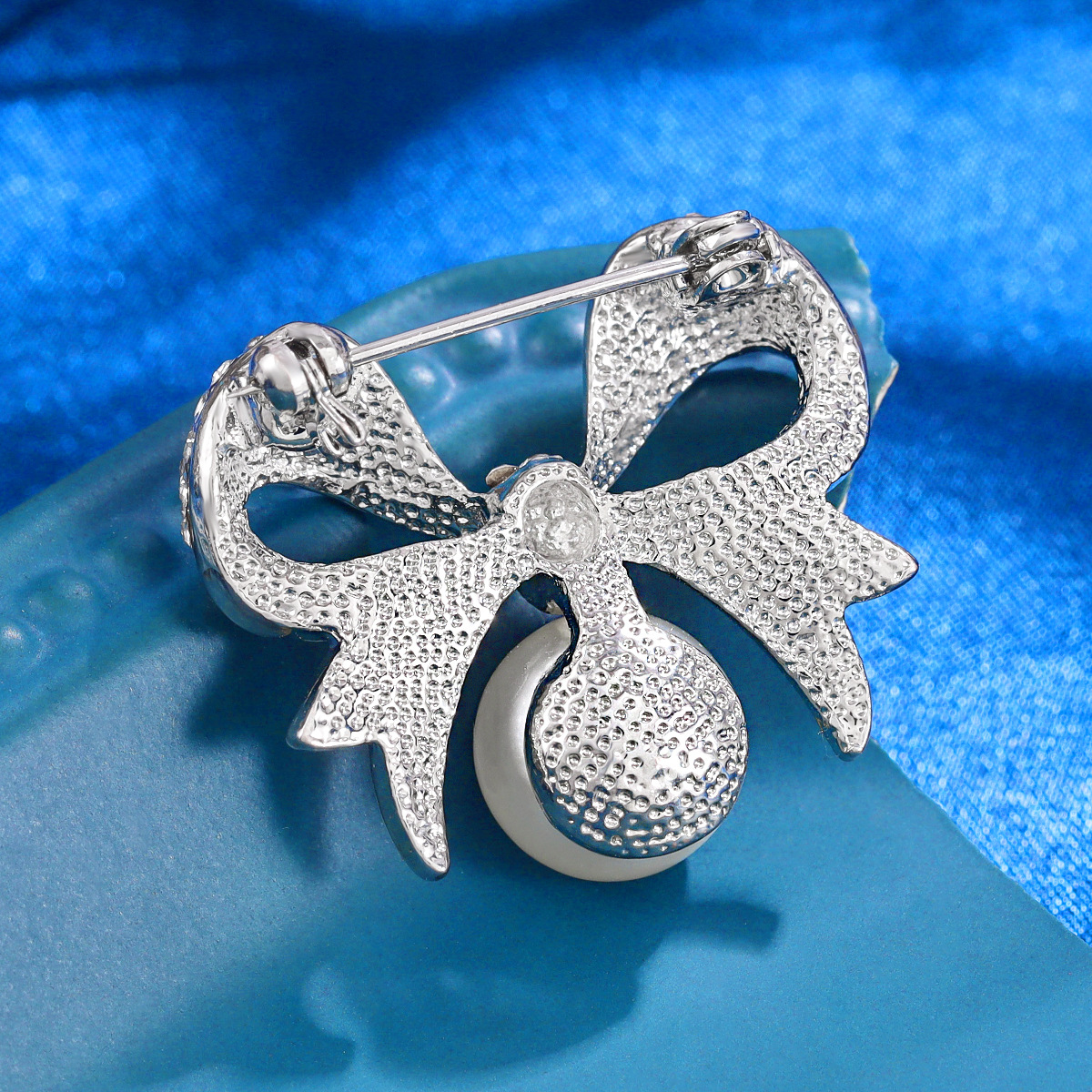 Bow pearl brooch
