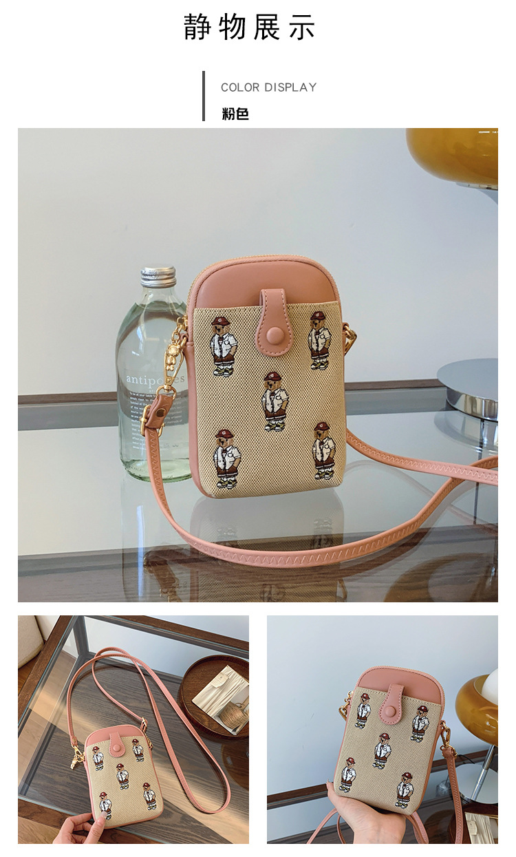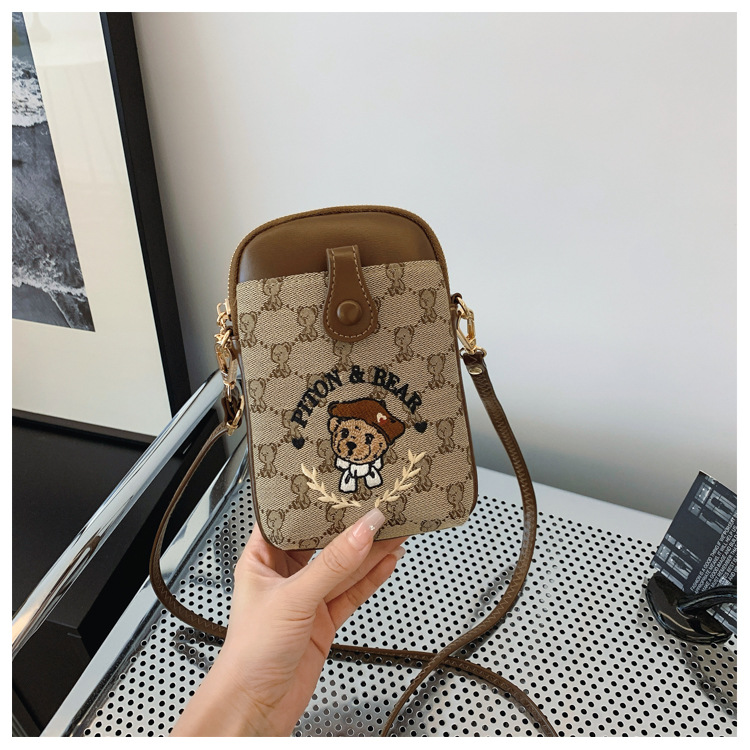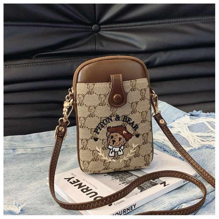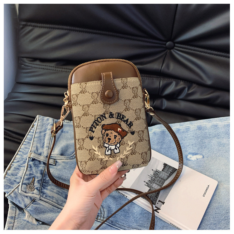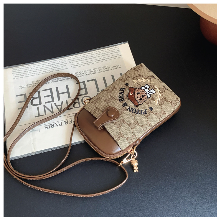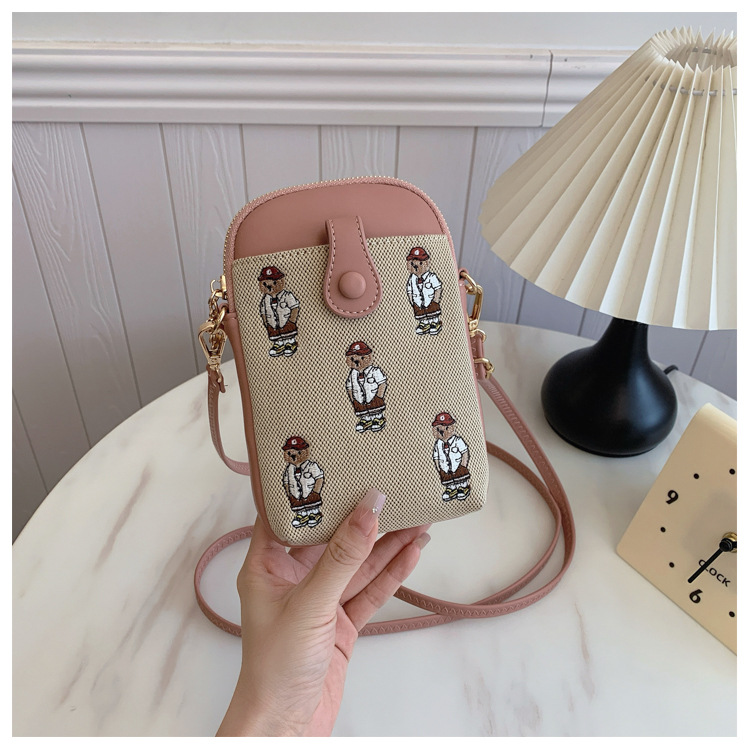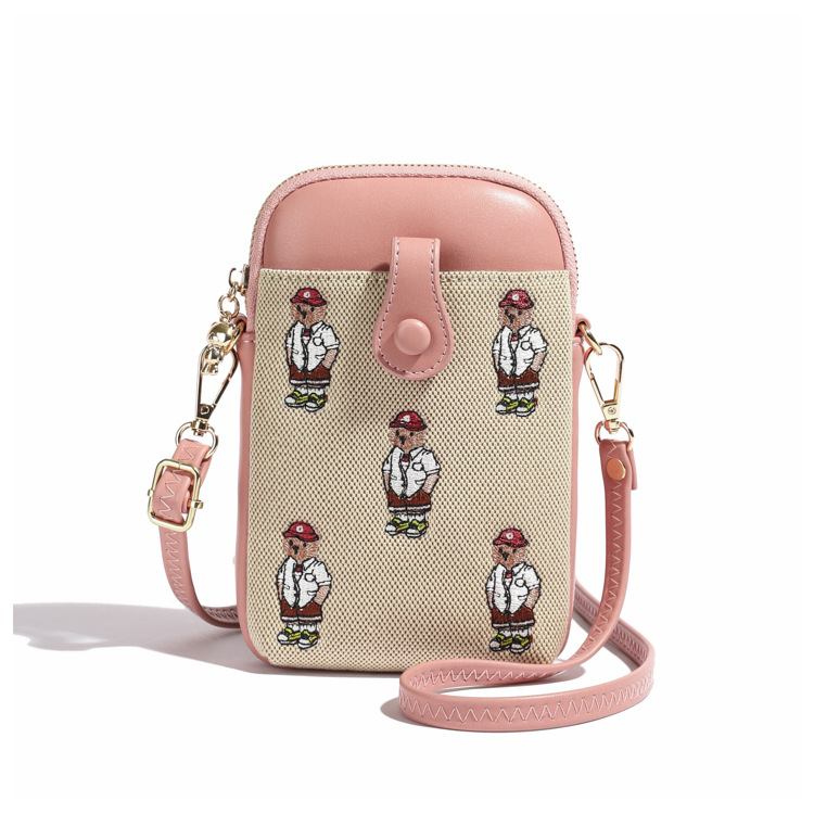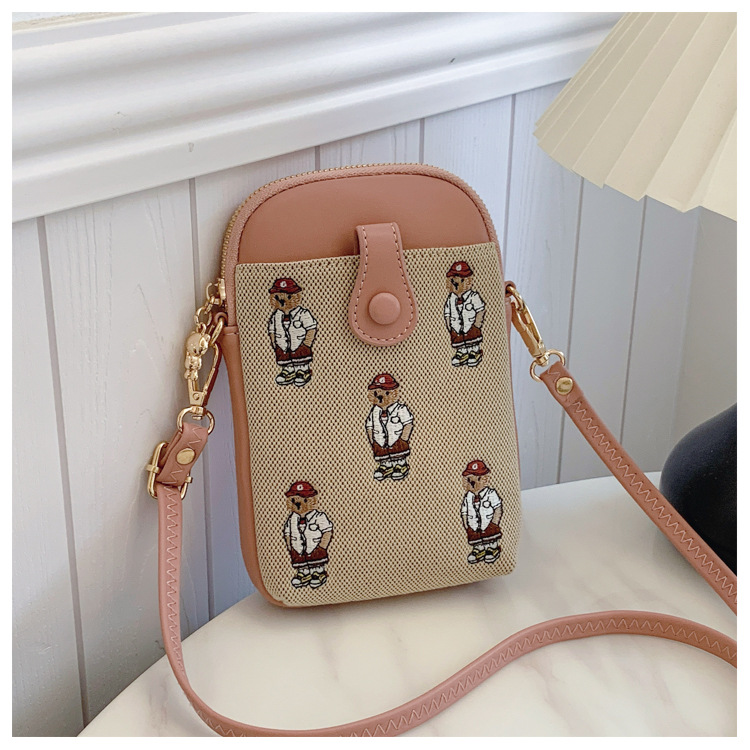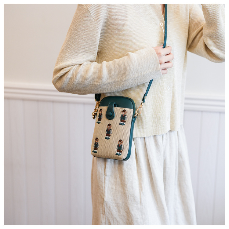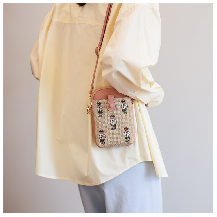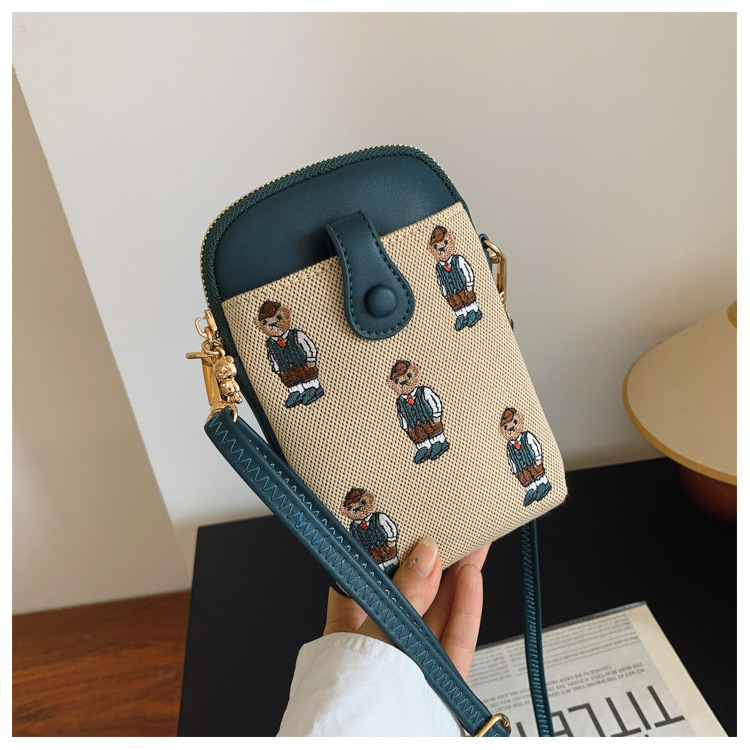 Bear embroidered canvas mobile phone bag