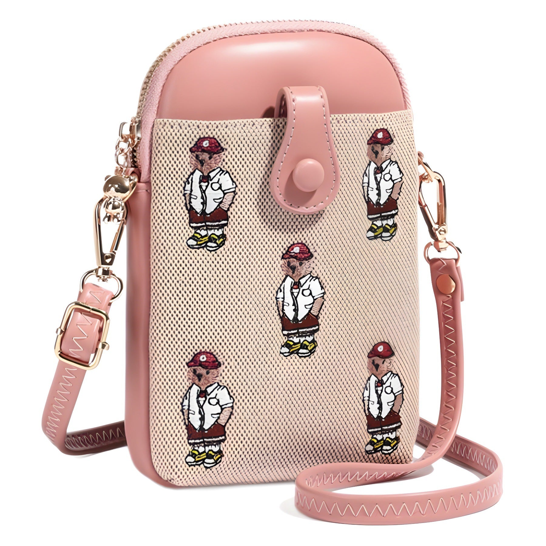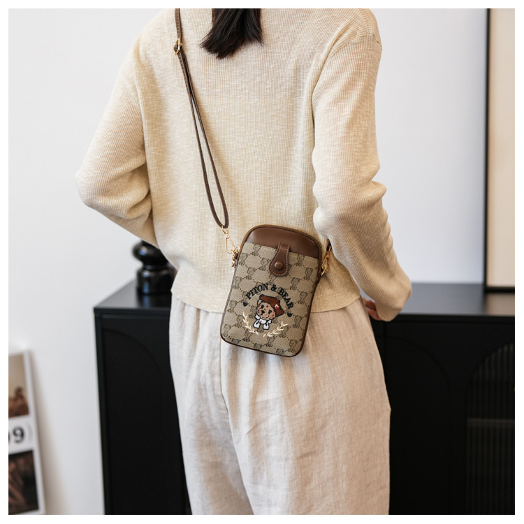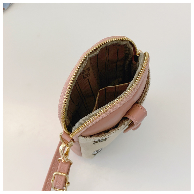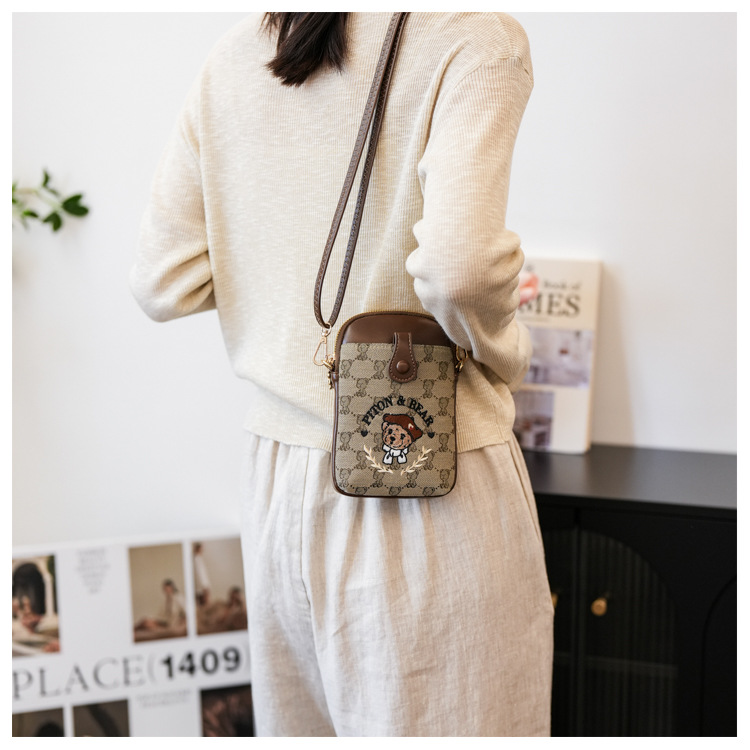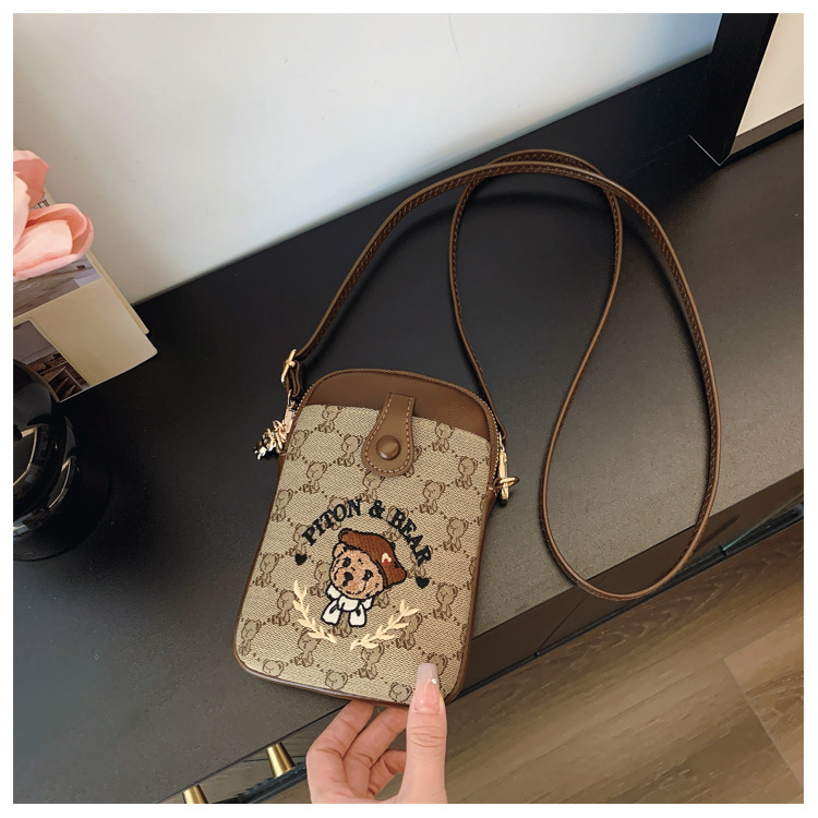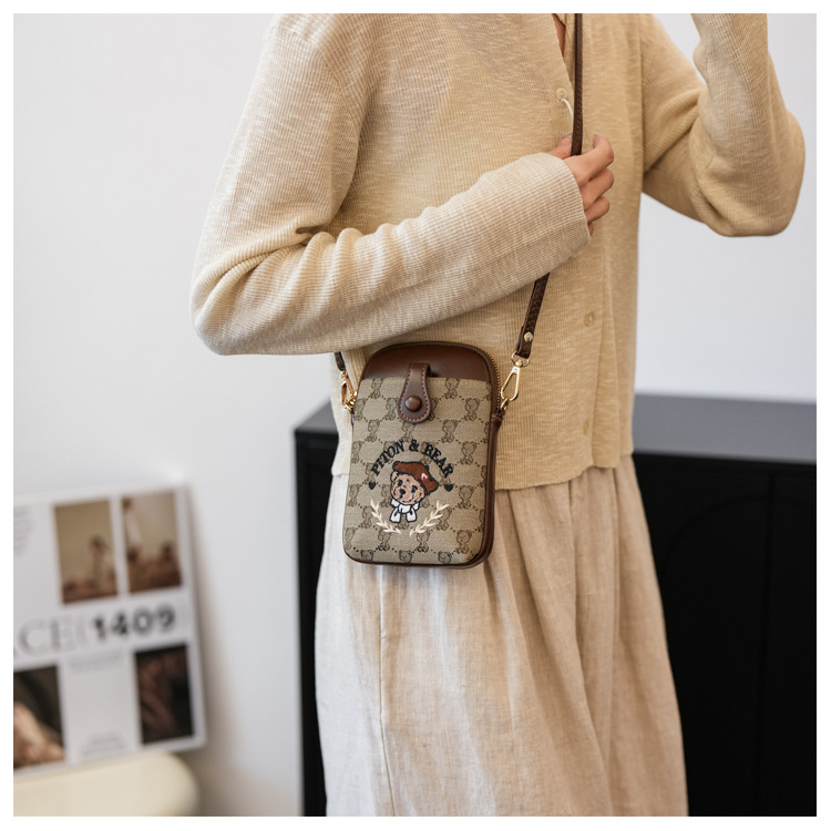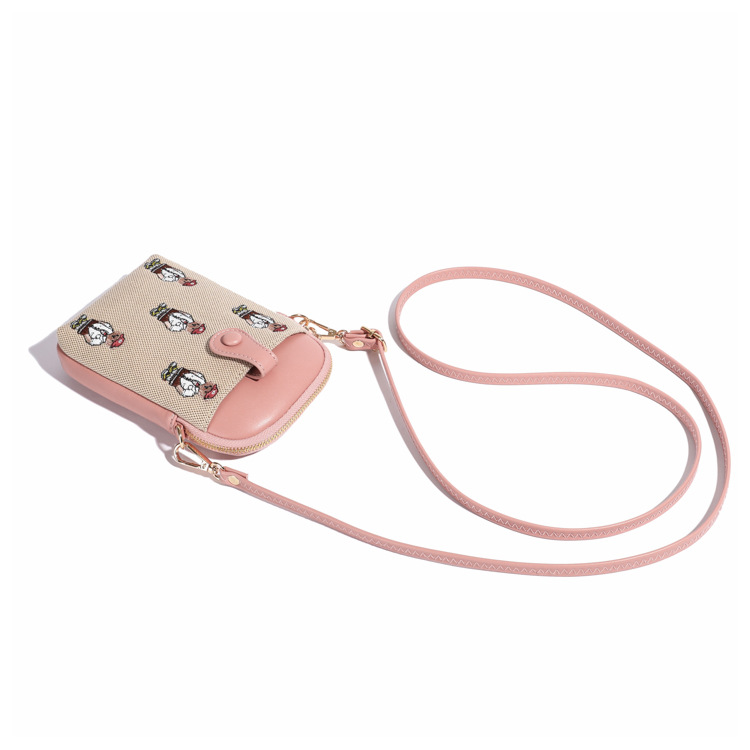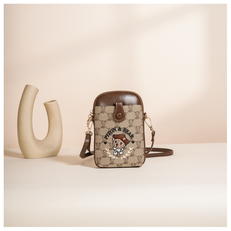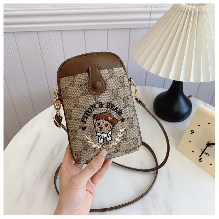 Bear embroidered canvas mobile phone bag
