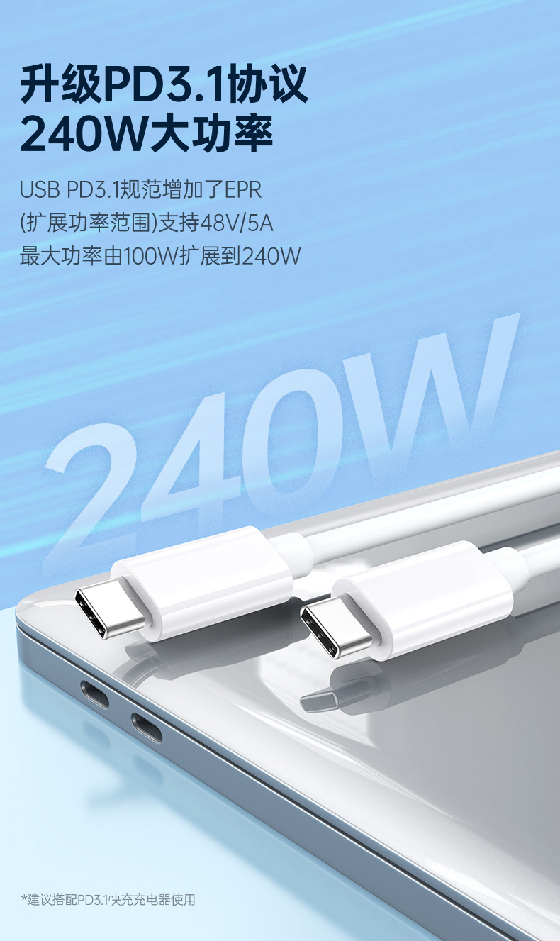 240W Dual Type-C Fast Charge Cable for Apple Honor Tablet Laptop