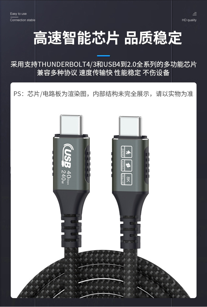 240W USB4 Type-C Bidirectional High-Speed Cable 8K Display