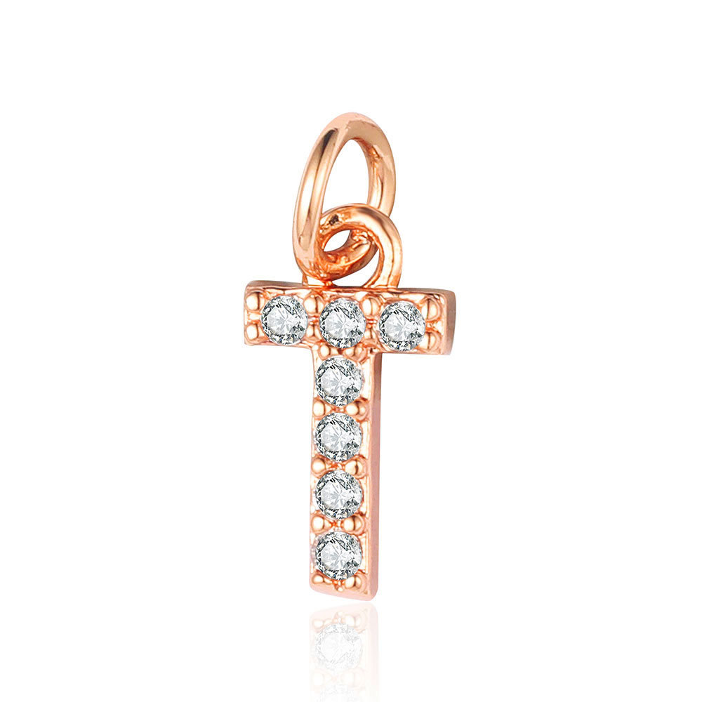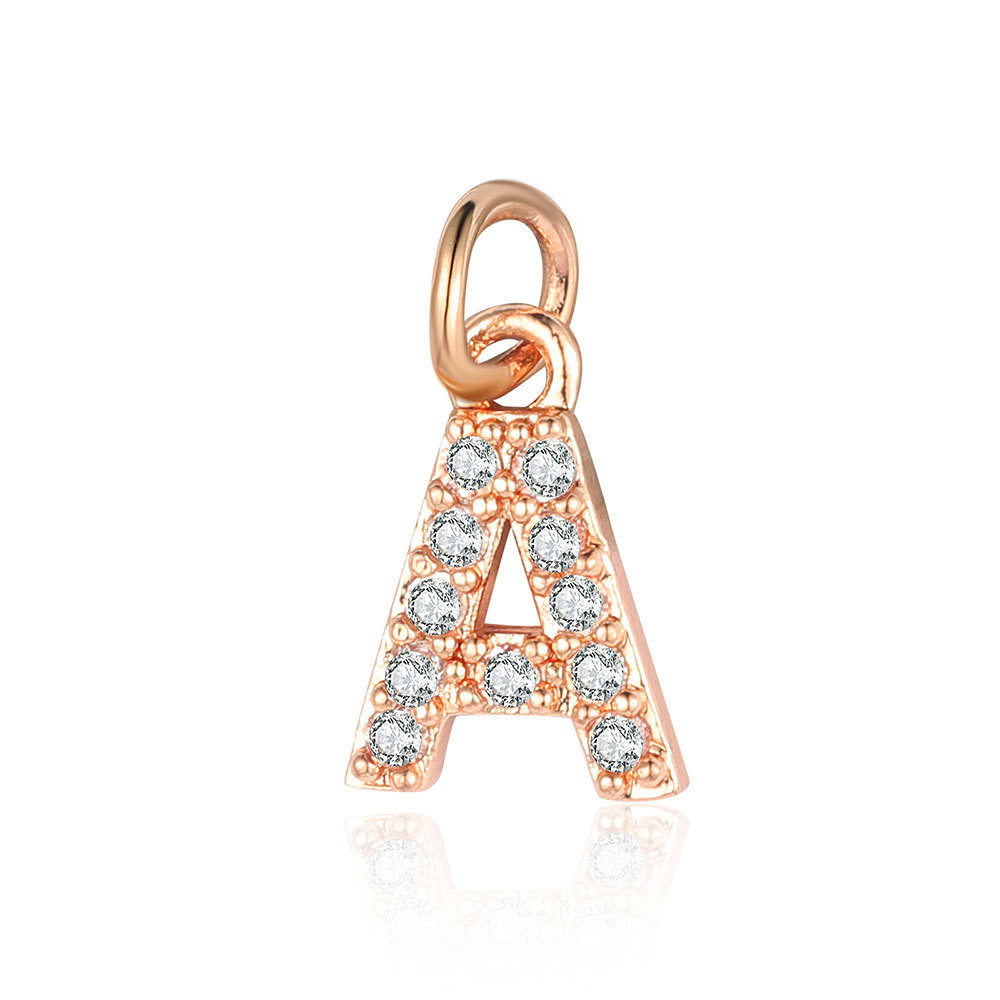 26 rose gold English letter copper zircon pendants.