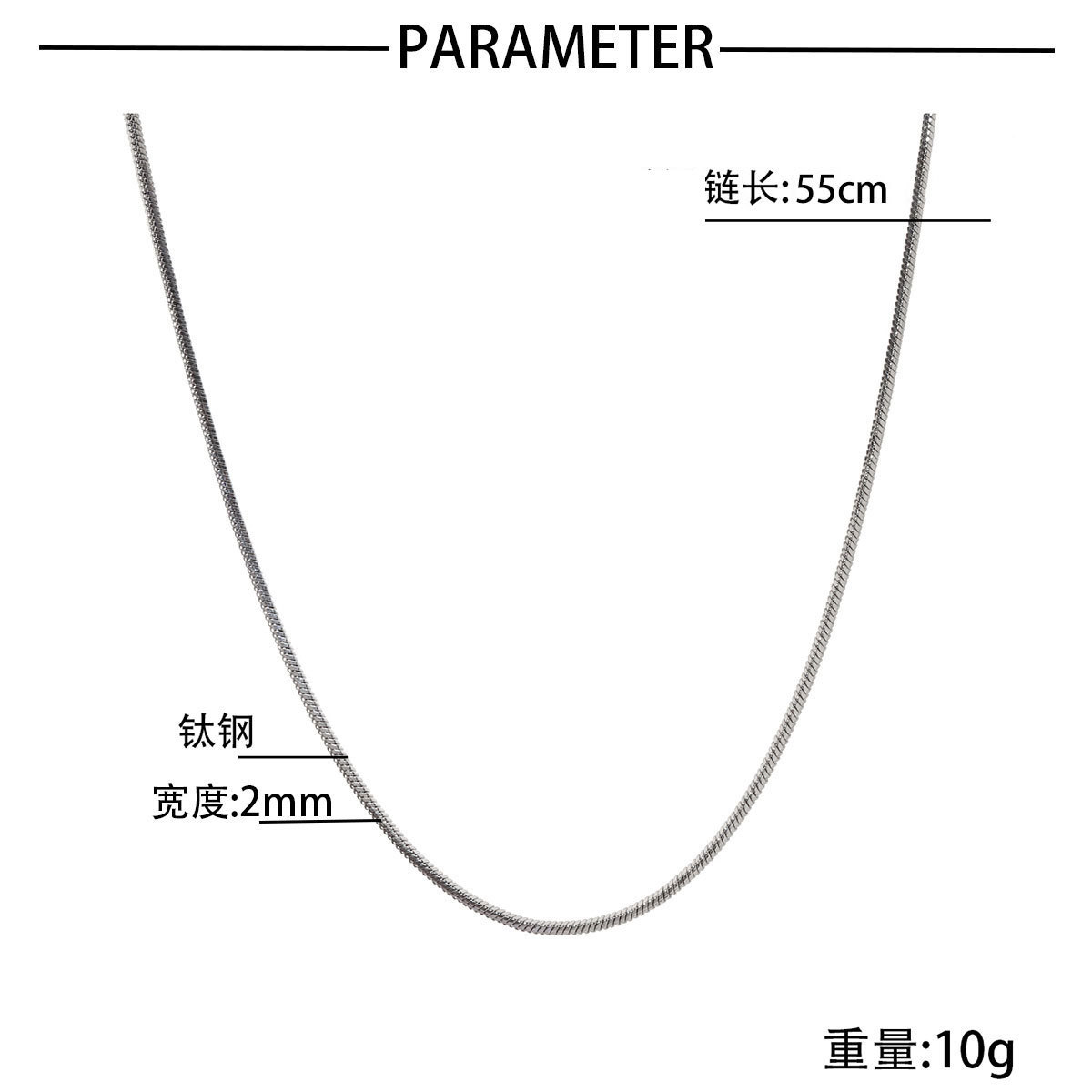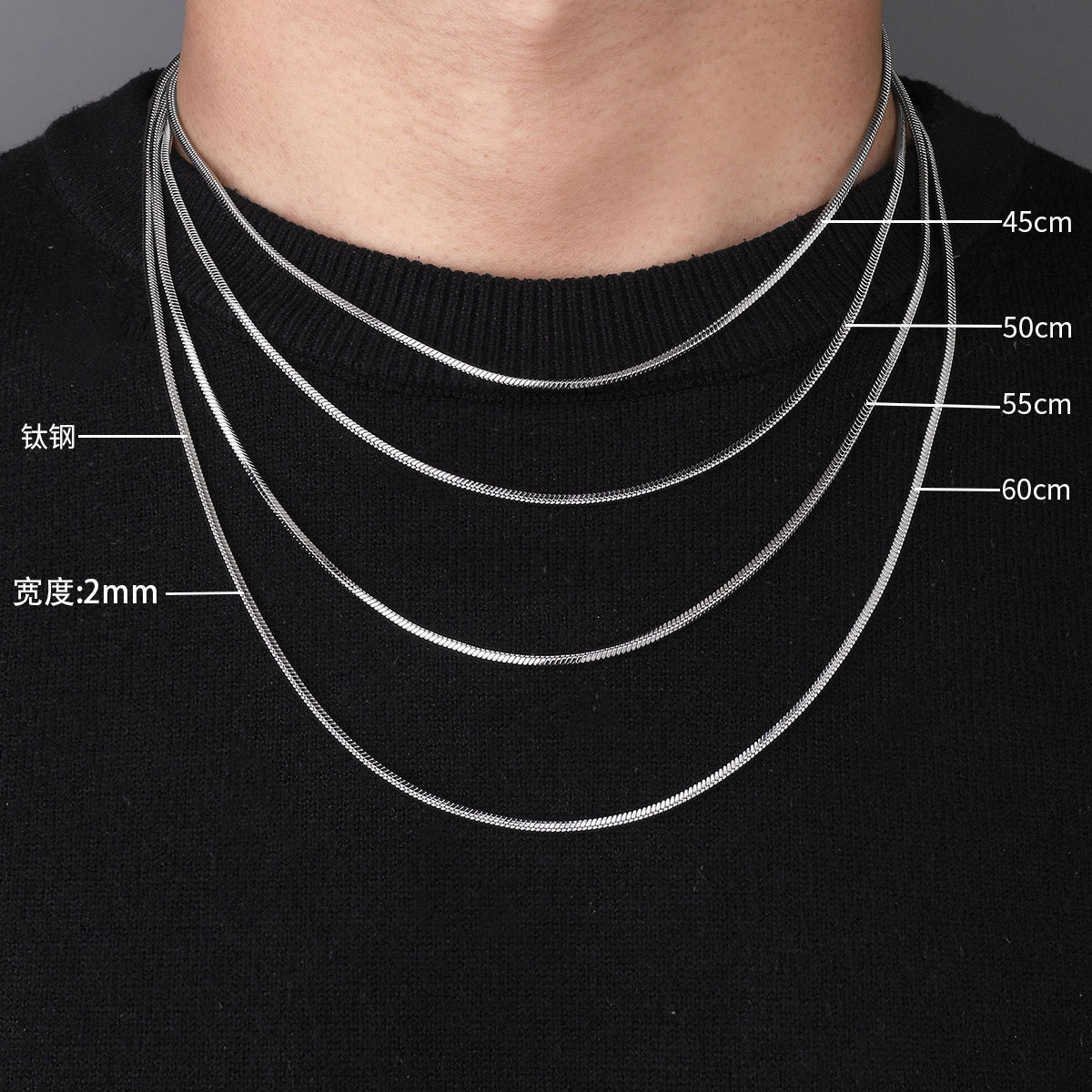2Mm personalized titanium steel square snake chain Cuban chain