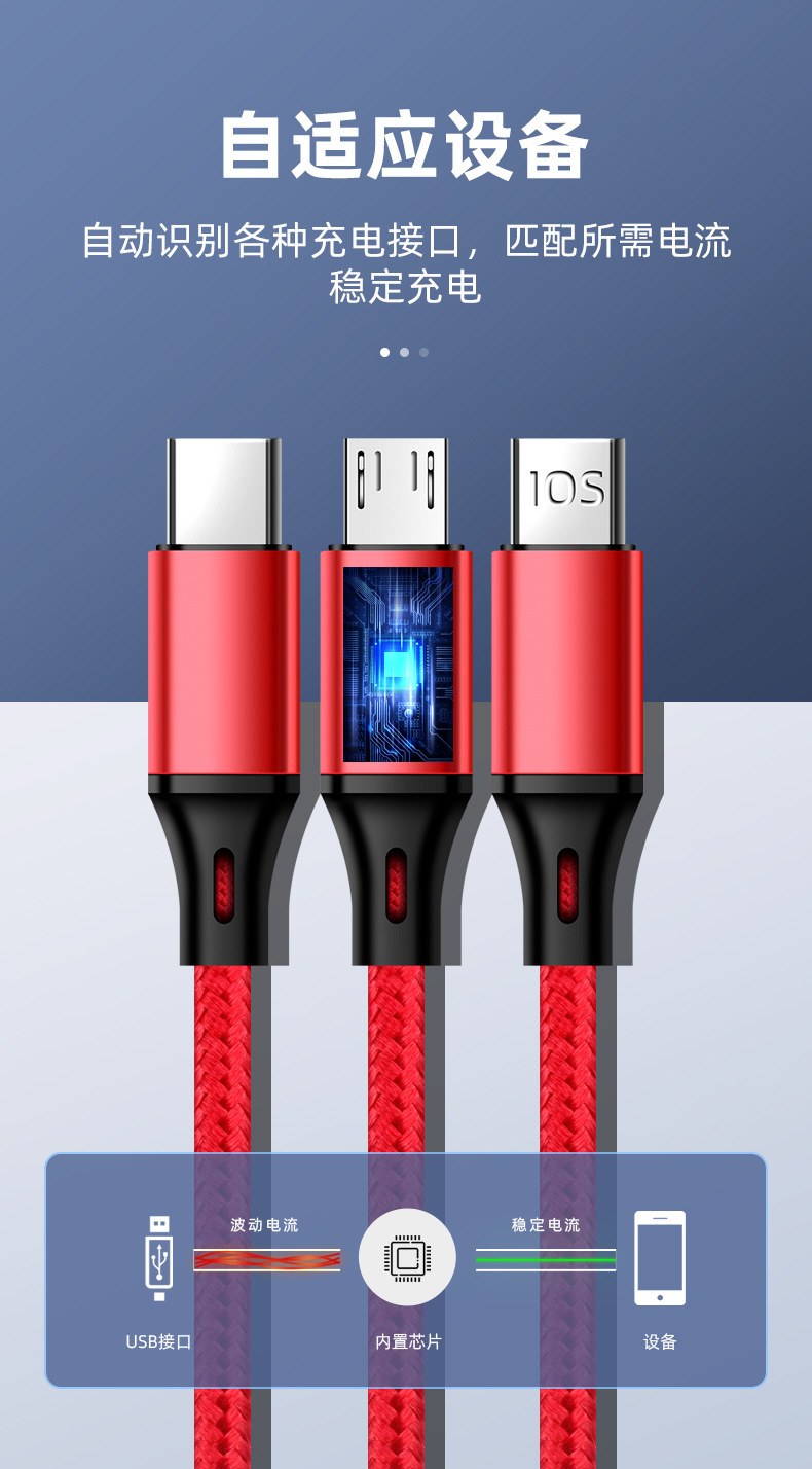 3-in-1 Fast Charging Cable Apple Android Huawei Xiaomi Car Charger