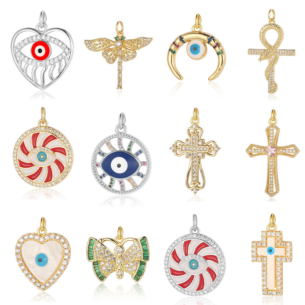 3 pcs/pack, crescent eye copper zircon dragonfly pendant.