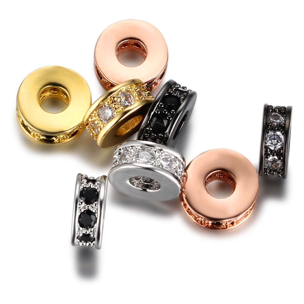 3 unids/pack cuentas espaciadoras de circonita de cobre