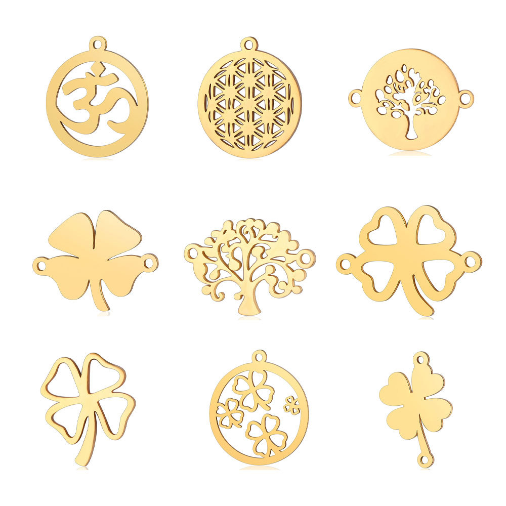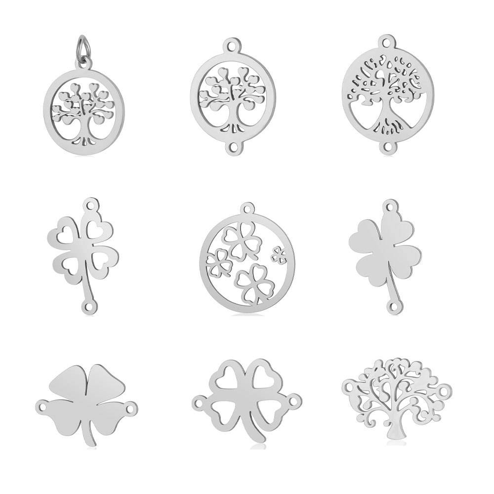 5 pcs/pack Four Leaf Clover Tree of Life Transfer Titanium Steel Pendant