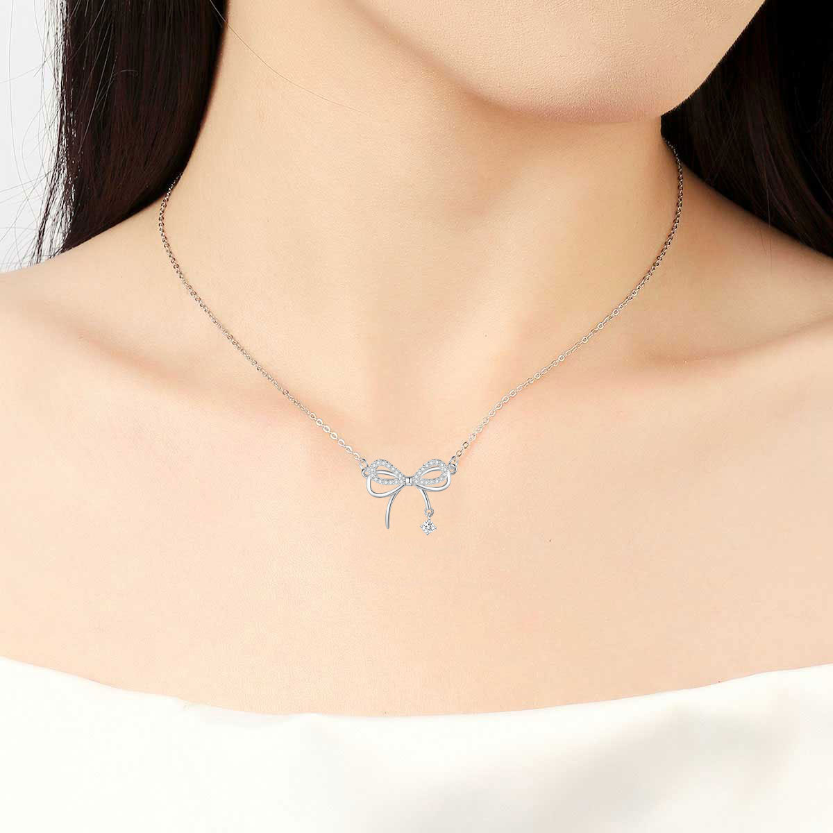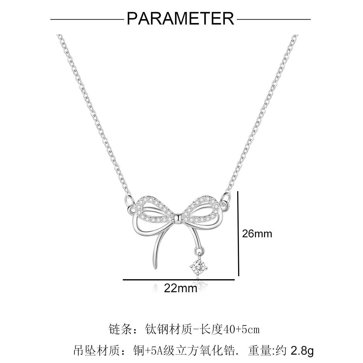5A zircon copper smart bow pendant necklace
