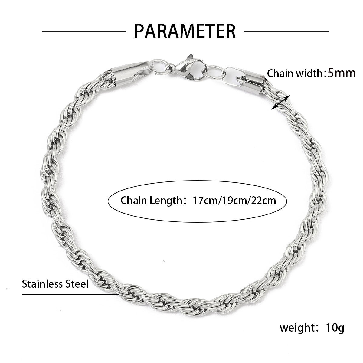 5Mm Titanium Steel Twist Bracelet Hip Hop Cuban Chain